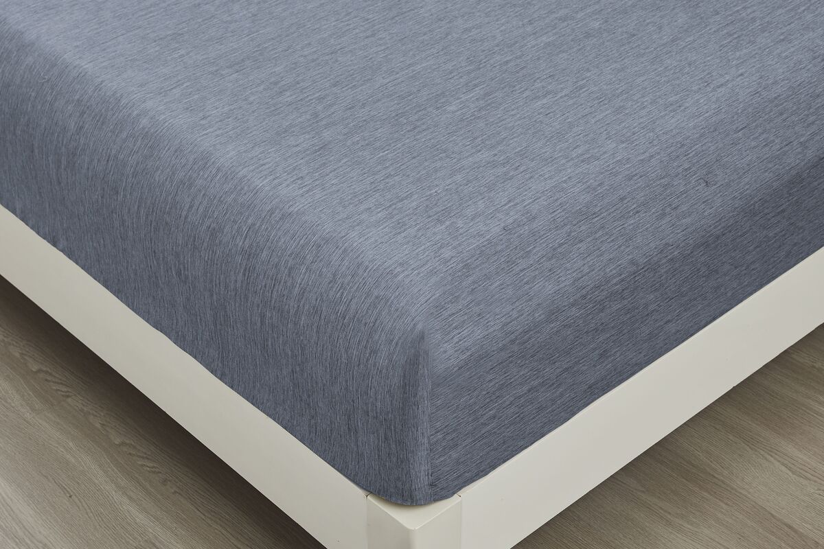 Простыня на резинке Страйп Меланж с высотой борта 25 см. - индиго