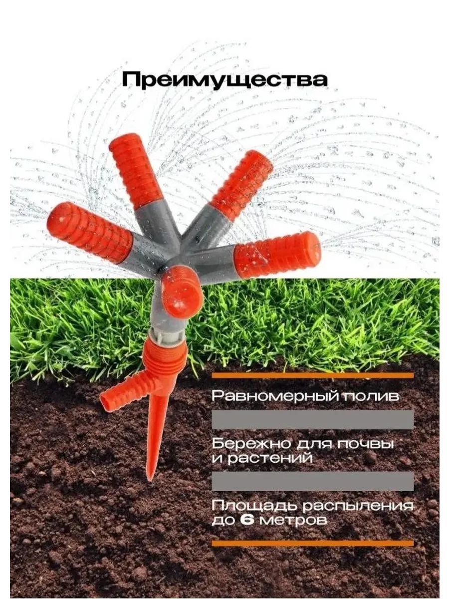 Представляем нашу садовую поливалку – идеальный помощник для эффективного и удобного полива вашего огорода! Этот вращающийся разбрызгиватель воды с легкостью покрывает все необходимые площади, обеспечивая равномерное увлажнение растений. Благодаря своей крутильной конструкции, поливалка равномерно распределяет воду, создавая эффект дождя, что идеально подходит как для овощей, так и для цветов и газона. Эта система полива огорода оснащена качественными материалами, обеспечивающими долговечность и надежность. Садовый разбрызгиватель для воды легко устанавливается и позволяет гибко регулировать интенсивность полива, чтобы растения получали именно то количество влаги, которое им необходимо. Поливалка вертушка разбрызгиватель для огорода способствует экономии времени и водных ресурсов, обеспечивая аккуратный и эффективный полив без лишних усилий. Подарите своим растениям комфорт и здоровье с нашим качественным дождевателем – залог обильного урожая и пышного цветения!