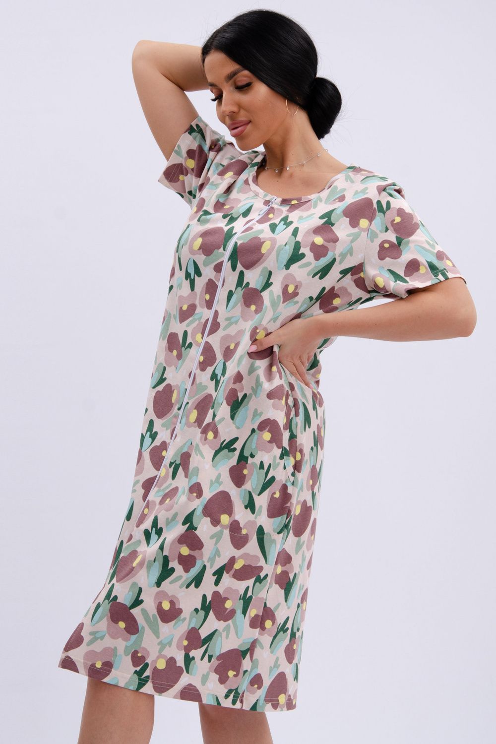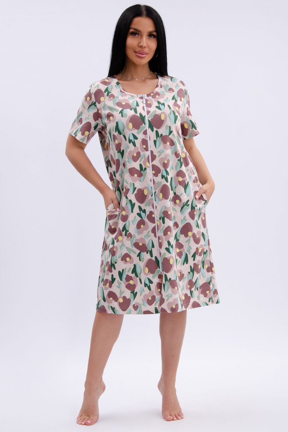 Женский халатик на молнии – самая распространенная и универсальная одежда для домашнего отдыха и хозяйственных хлопот. После трудного рабочего дня, приходя домой, первым делом хочется переодеться. И данная модель это идеальный вариант среди представительниц прекрасной половины человечества. Модель выполнена из 100% хлопчатобумажной ткани.