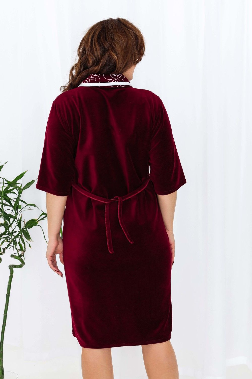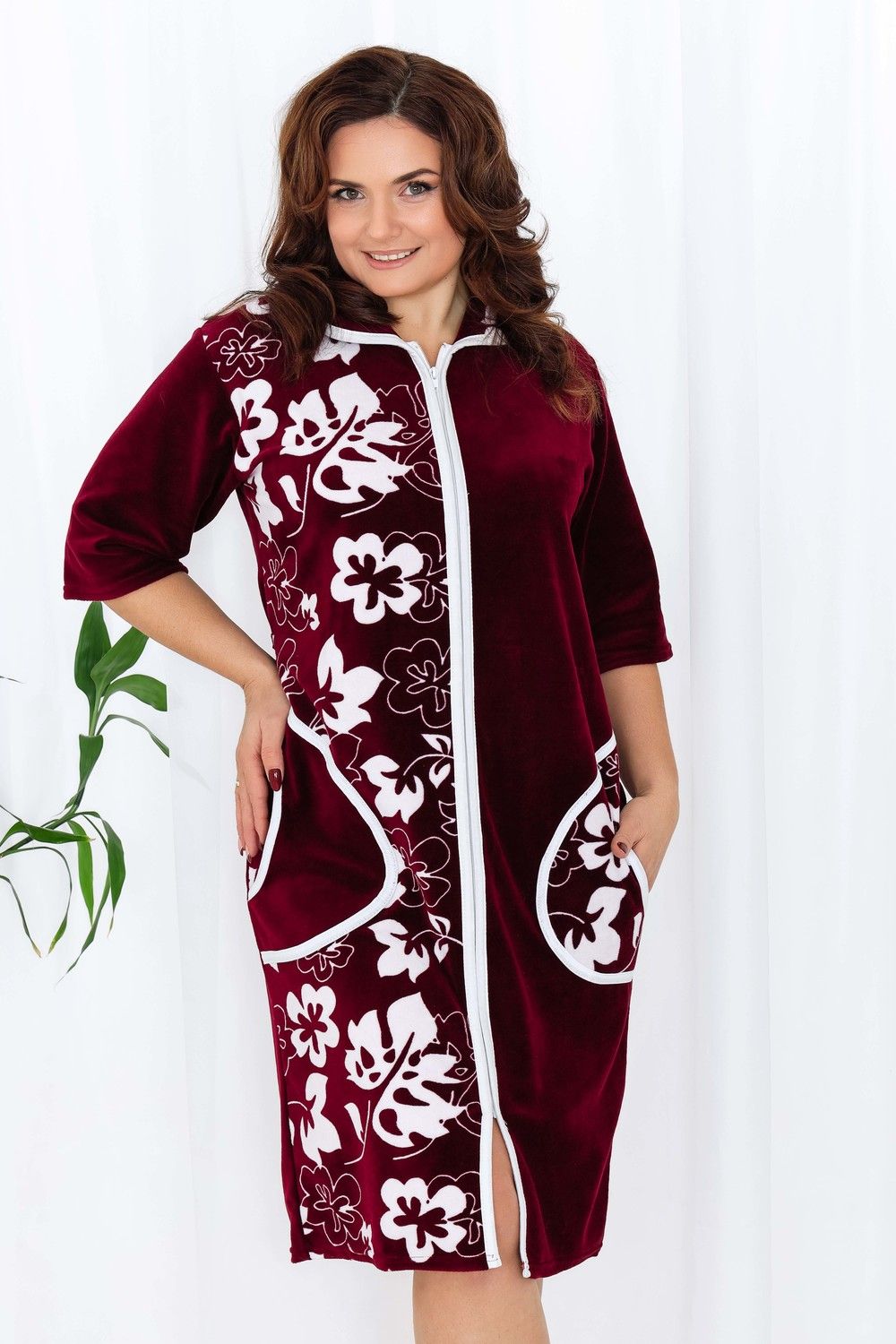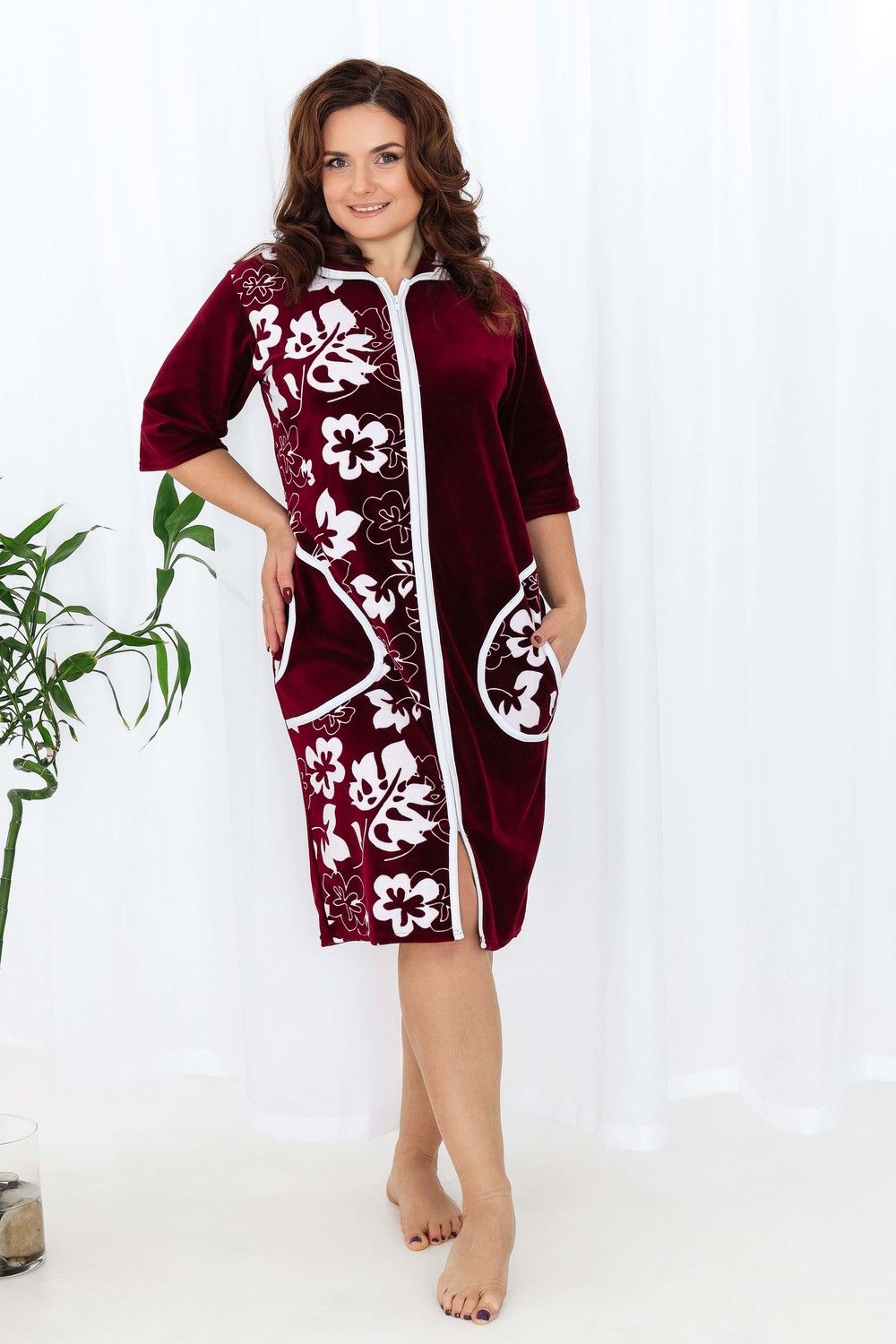 Халат домашний женский на молнии. Рукав короткий, длина ниже колена, в боковых швах два полупояса, воротник круглый. Размерный ряд имеет большие размеры.