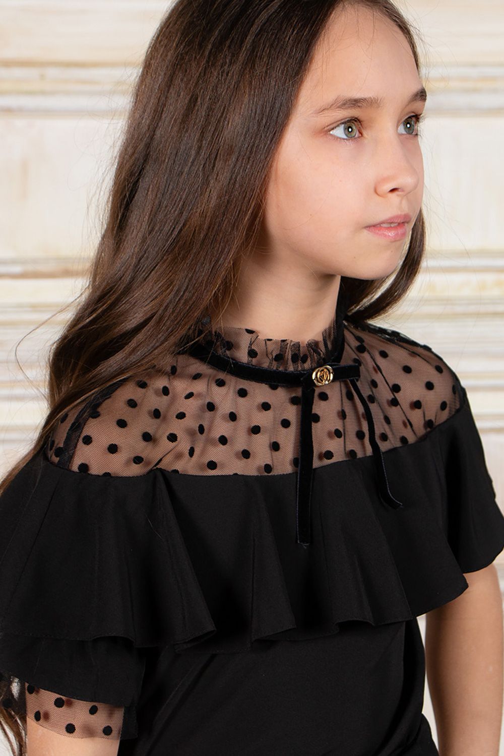 Верх выполнен из фатина в бархатистый горошек (флок). Грудь, спина и плечи обрамлены пышным воланом. Удобная застежка молния на спине. Прекрасный вариант для создания изысканного образа.