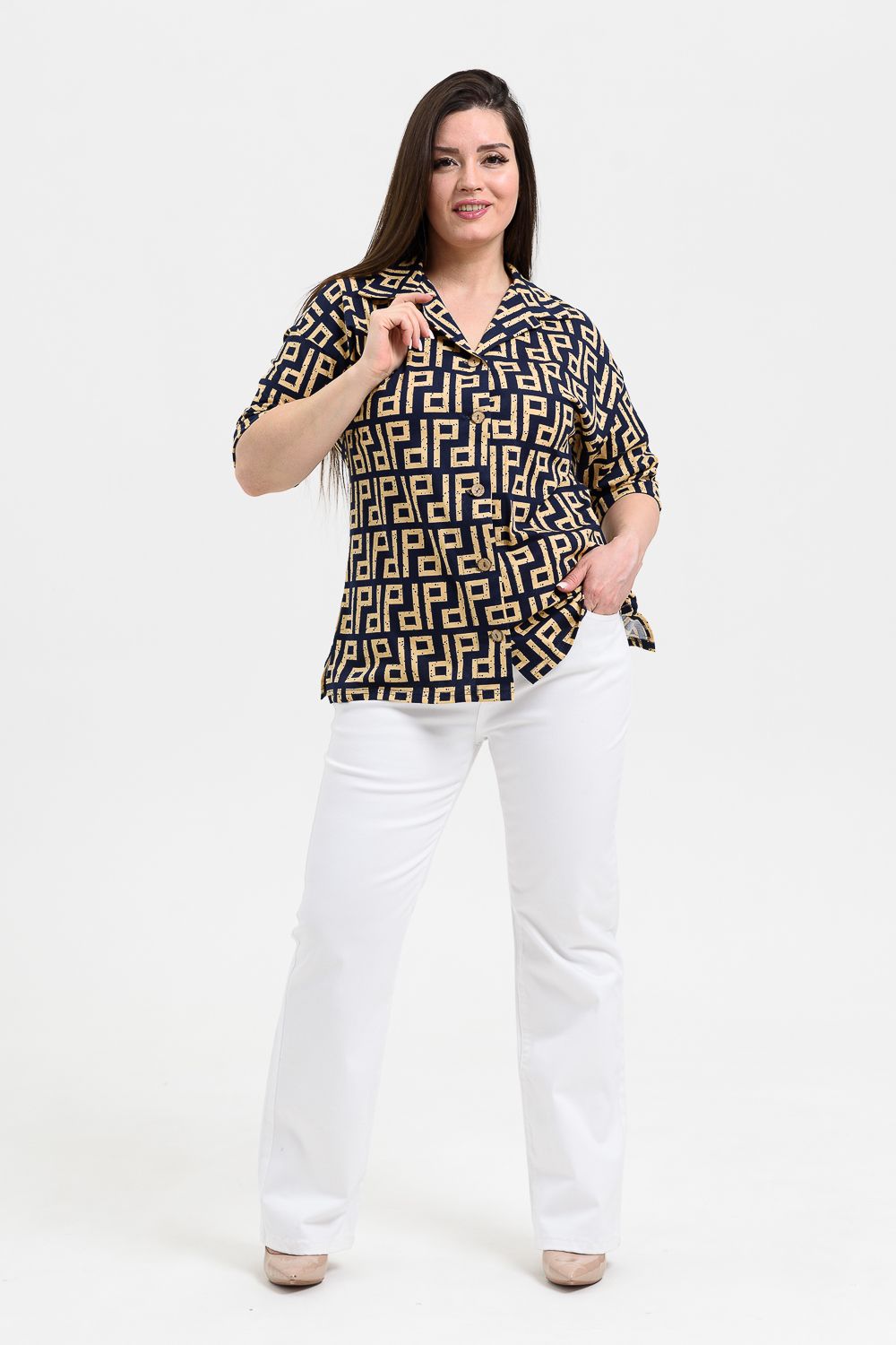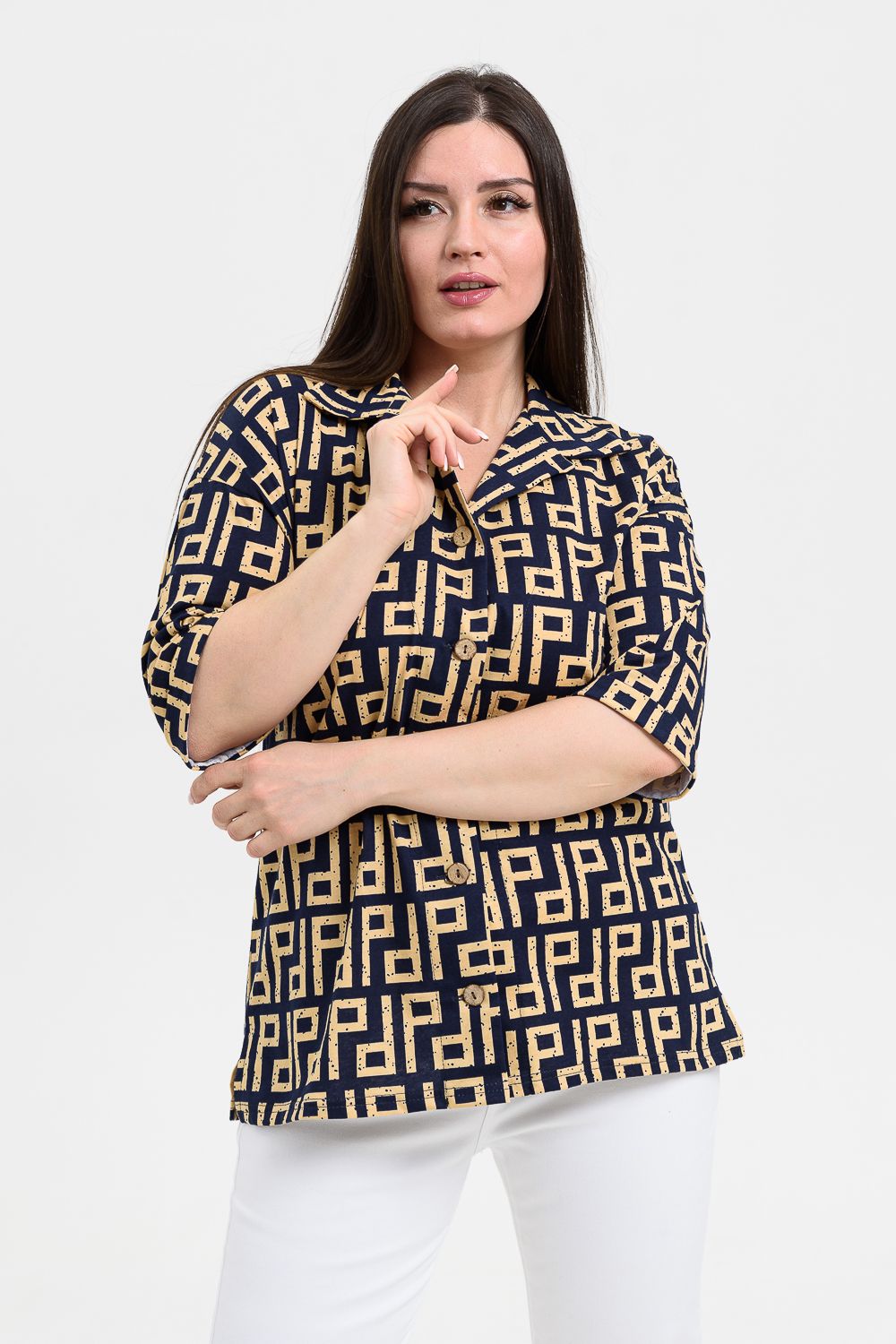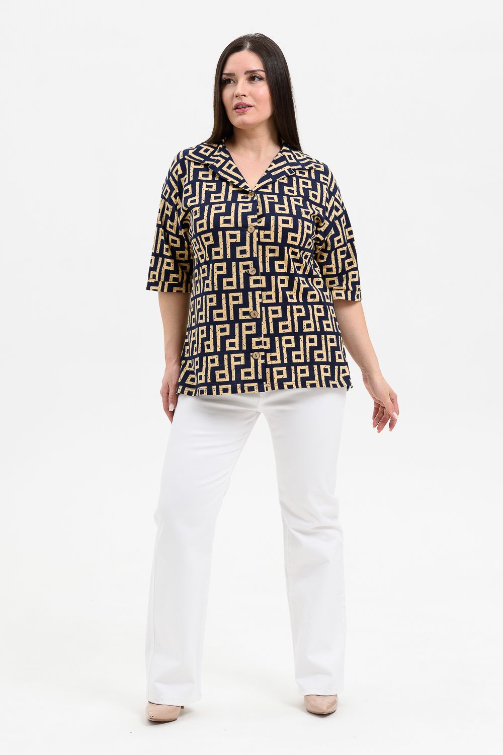 Рубашка-блузка из лёгкого мягкого трикотажного полотна прямого силуэта, на пуговицах, отложной воротник втачной рукав с манжетами, застёжка на пуговицах. Изделие хорошо сочетается с брюками, юбками, бриджами.
