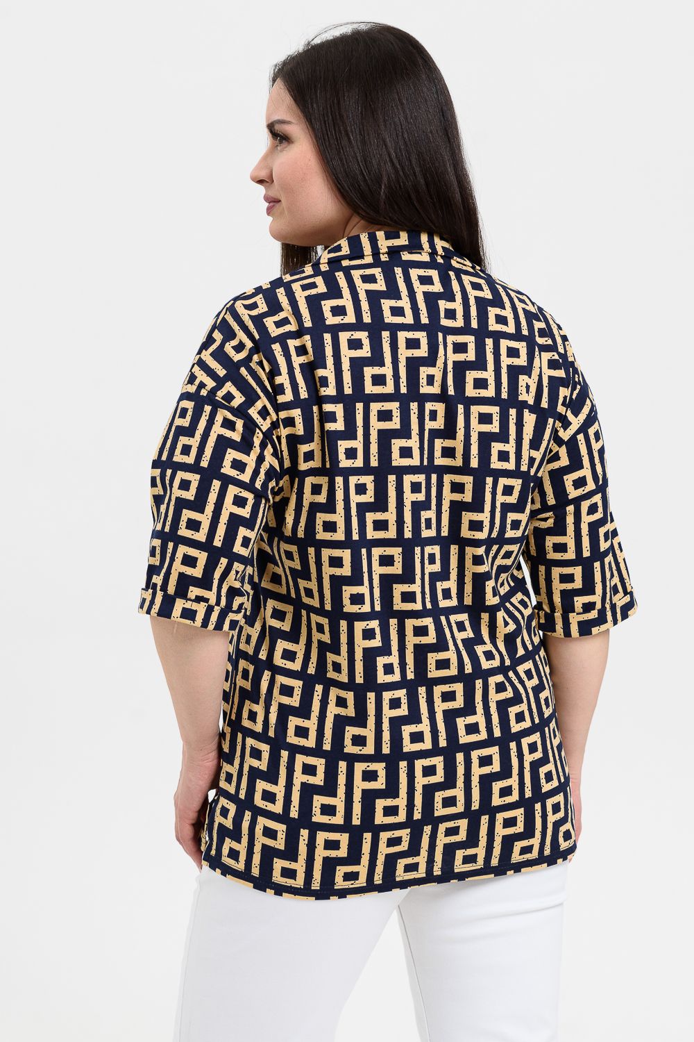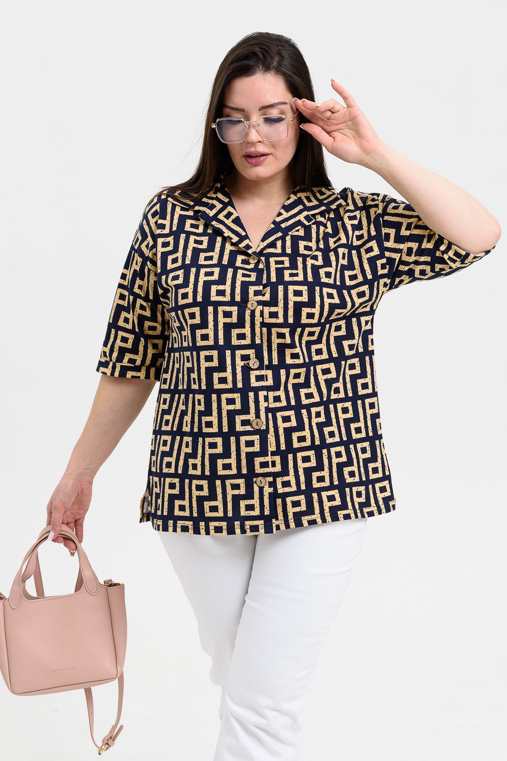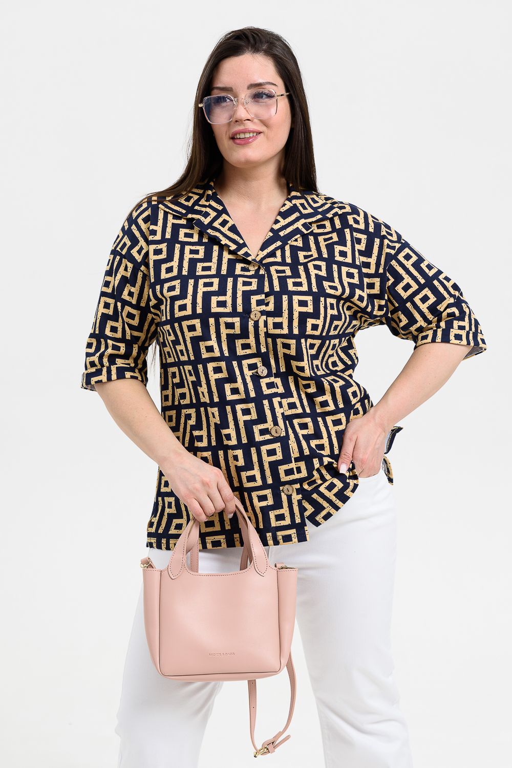 Рубашка-блузка из лёгкого мягкого трикотажного полотна прямого силуэта, на пуговицах, отложной воротник втачной рукав с манжетами, застёжка на пуговицах. Изделие хорошо сочетается с брюками, юбками, бриджами.