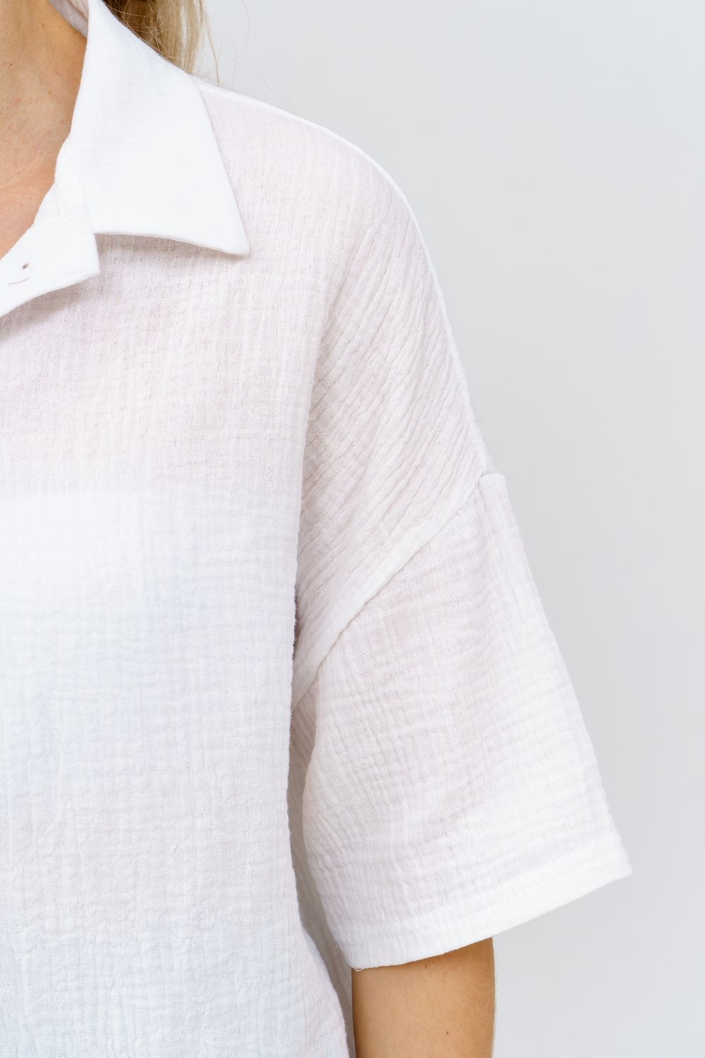 Модная рубашка в стиле oversize выполнена из воздушного и приятного к телу 2-х слойного жатого муслина. Это одна из самых модных и популярных моделей сезона. Рубашка имеет слегка удлинённую спинку, спущенную линию плечевого шва, укороченный рукав, классический рубашечный воротник и планку на пуговках. А модные цвета этого лета и нежнейшая ткань добавляют законченность деталям и определяют "must have" сезона. За счёт свободного фасона рубашку можно носить с любым типом фигуры, отлично подойдёт для беременных женщин, а также кормящих мам. Женская хлопковая рубашка идеальна как для лета, так и для прохладного вечера. С помощью такой рубашки Вы можете создать деловой образ или летний расслабленный. А также отправиться на праздник или вечеринку, в школу или на прогулку, на пляж или провести незабываемый вечер дома. Модель такого плана идеально подойдёт и в качестве подарка для себя и своих любимых! Стирать муслиновые вещи нужно только в теплой воде при температуре не выше 40°С. У нас Вы также можете приобрести целый костюм из такого материала- модель 36761 рубашка и шорты и создать свой неповторимый образ!