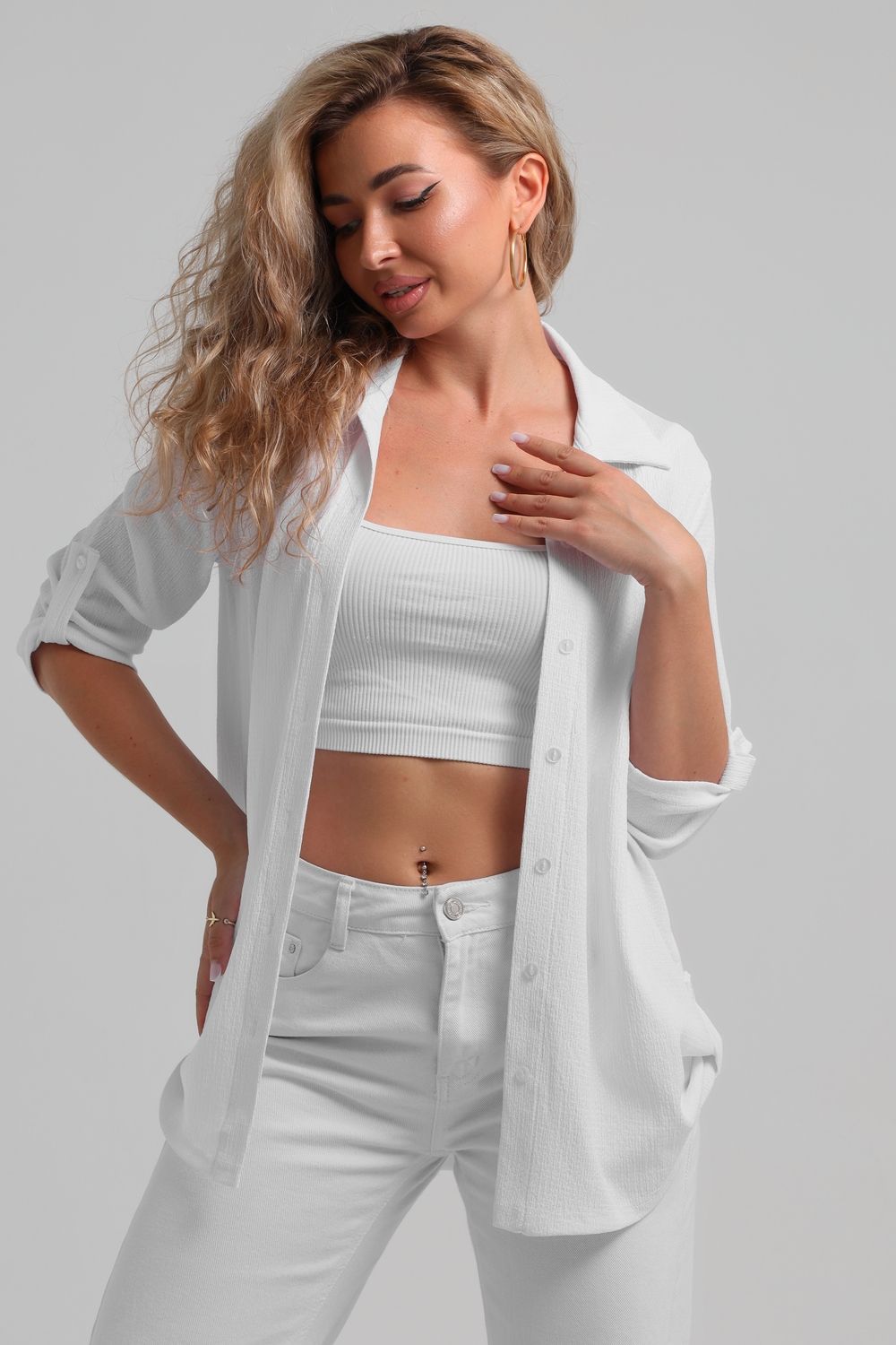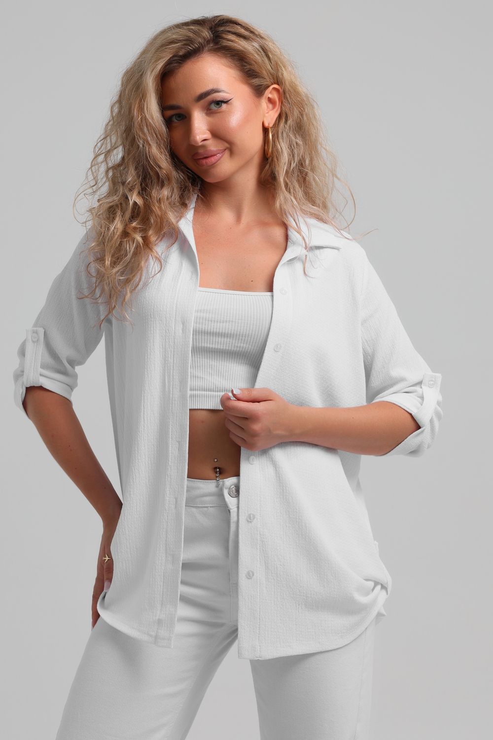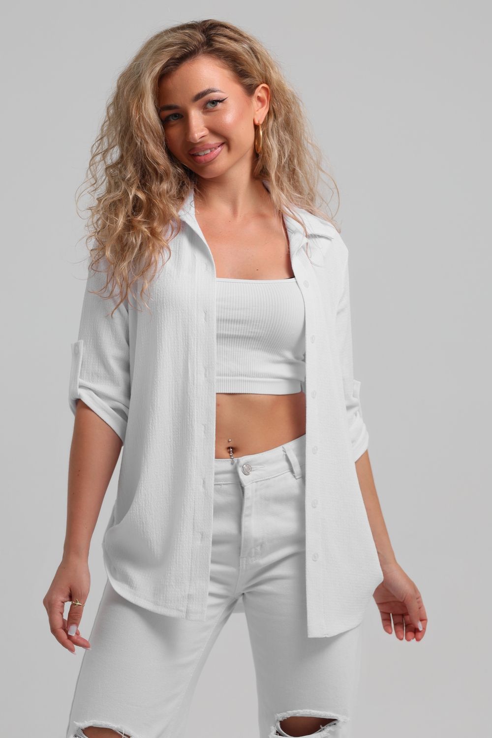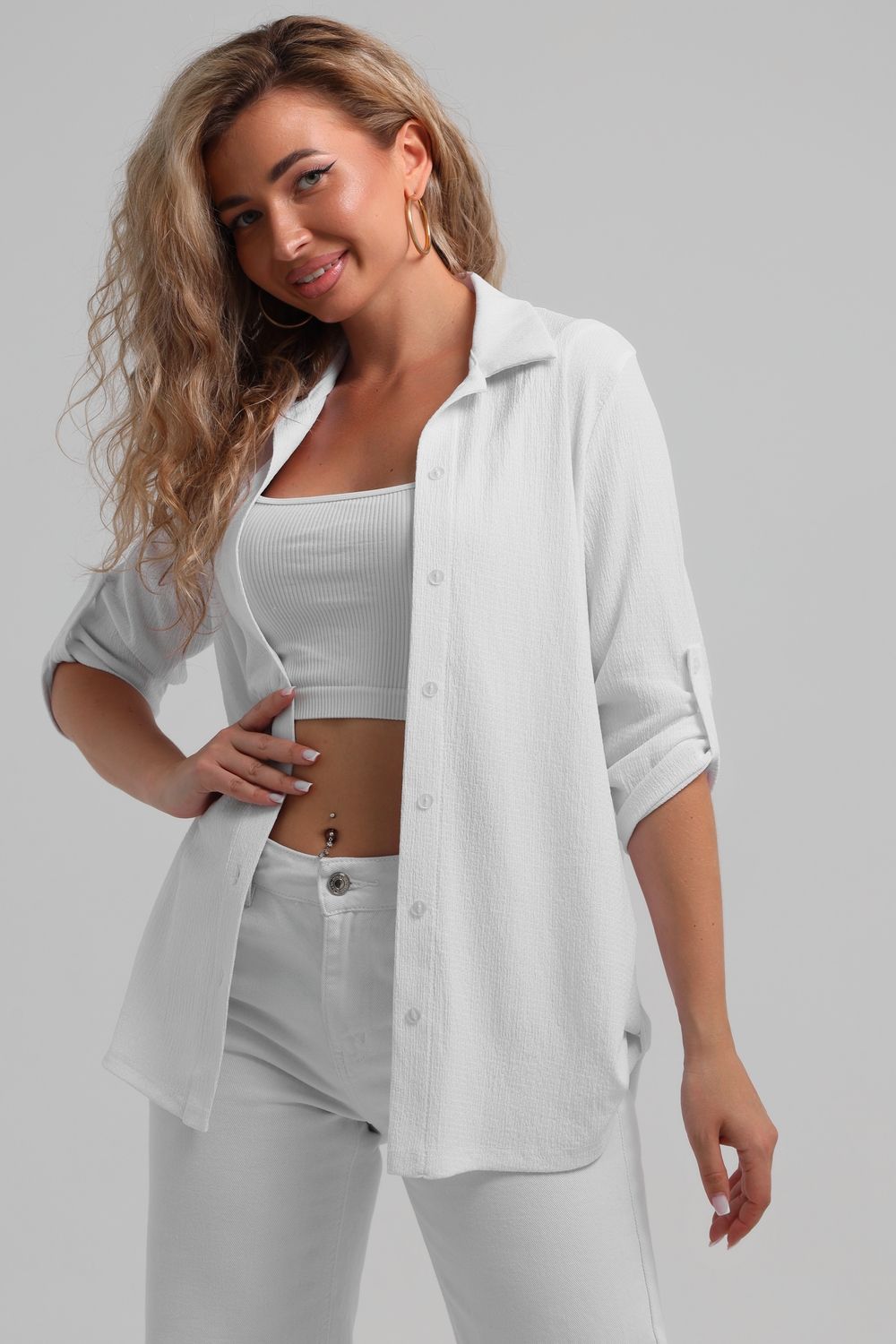 Модная рубашка в стиле oversize выполнена из лёгкого и приятного к телу материала - жатка. Это одна из самых модных и популярных моделей сезона. Рубашка имеет слегка удлинённую спинку, рукав 3/4, классический рубашечный воротник и планку. А модные цвета этого лета добавляют законченность деталям и определяют "must have" сезона. За счёт свободного фасона рубашку можно носить с любым типом фигуры, отлично подойдёт для беременных женщин, а также кормящих мам. Женская рубашка идеальна как для лета, так и для прохладного вечера. С помощью такой рубашки Вы можете создать деловой образ или летний расслабленный. А также отправиться на праздник или вечеринку, в школу или на прогулку, на пляж или провести незабываемый вечер дома. Модель такого плана идеально подойдёт и в качестве подарка для себя и своих любимых!