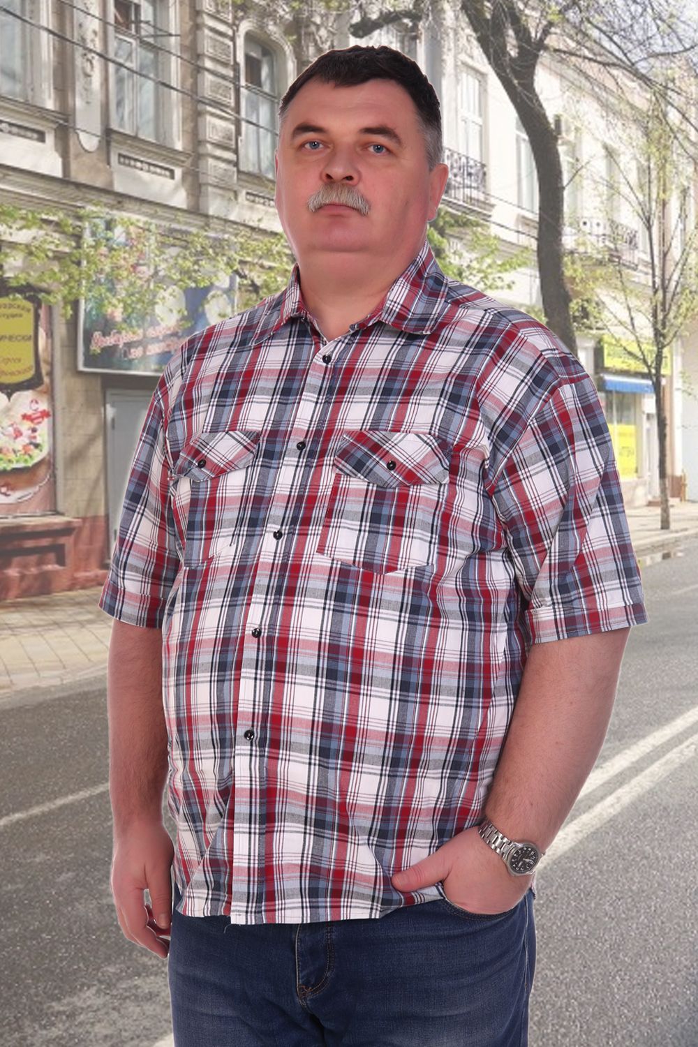 Мужская рубашка в клетку с коротким рукавом. Ткань шотландка 100% хлопок. Модель классического кроя дополнена двумя накладными карманами на груди плюс два клапана с пуговицей. Ворот проложен флизелином с отстрочкой. Данный товар по цвету не подбирается.