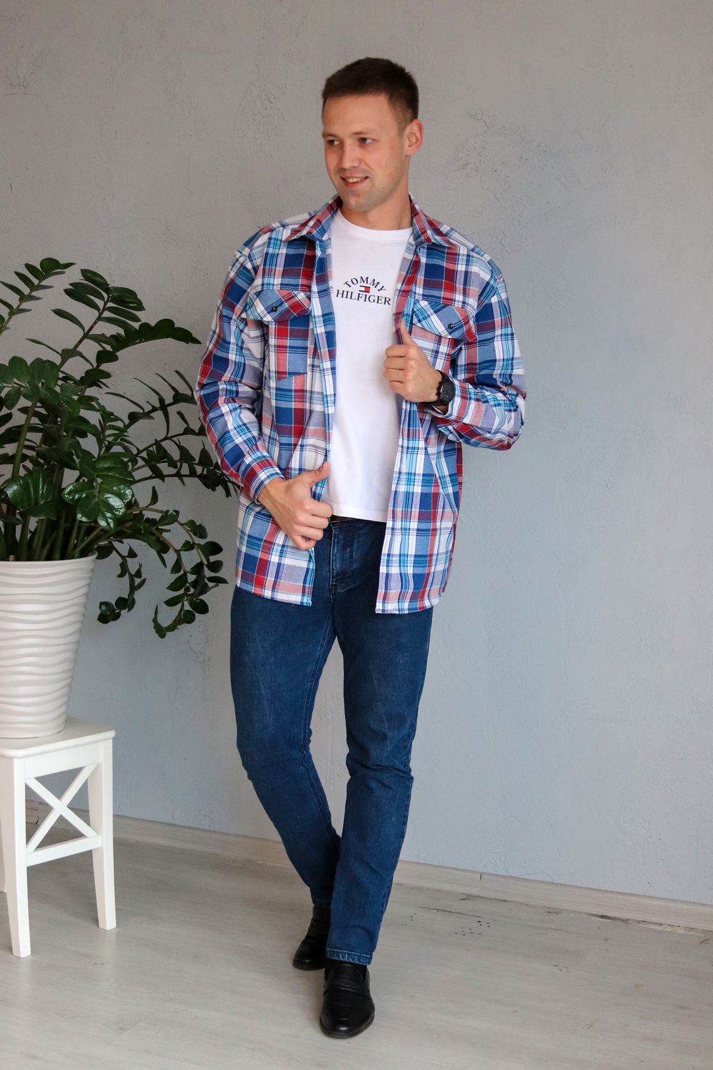 Мужская рубашка в клетку с длинным рукавом. Ткань шотландка 100% хлопок. Модель свободного кроя, дополнена двумя накладными карманами и клапанами с пуговицей. Планка на полочке цельнокроеная, застегивается на пуговицы. Плечо приспущено, рукав до запястья на манжете. Воротник на стойке, проложен флизелином с отстрочкой. Низ изделия застрачивается швом в подгибку при помощи специального приспособления. Внимание! Данный товар по цвету не подбирается.