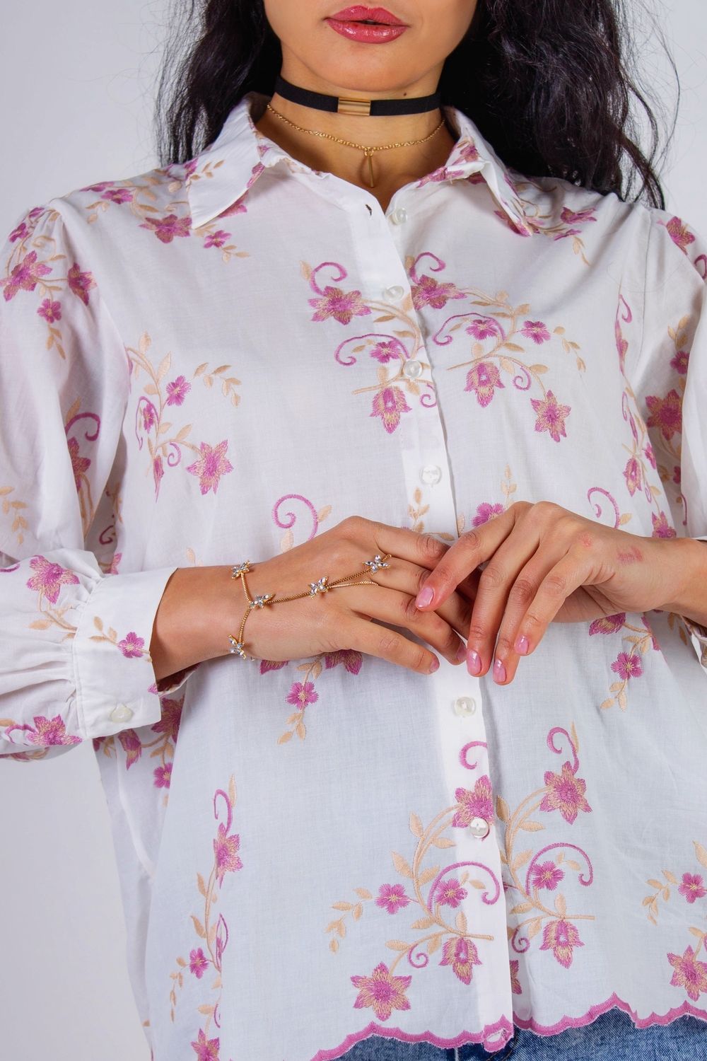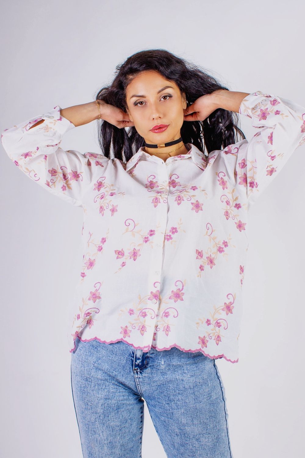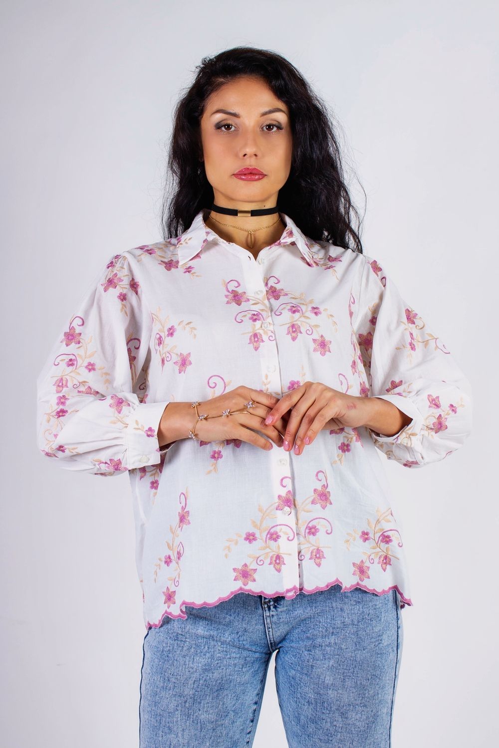 Потрясающая рубашка из тонкого хлопка с изысканной вышивкой цветов станет идеальным дополнением вашего гардероба. Эта модель создана для тех, кто ценит комфорт и стиль в каждой детали. Свободный крой обеспечивает максимальную свободу движений, а легкая ткань из натурального хлопка приятно облегает тело, не вызывая дискомфорта в течение всего дня.