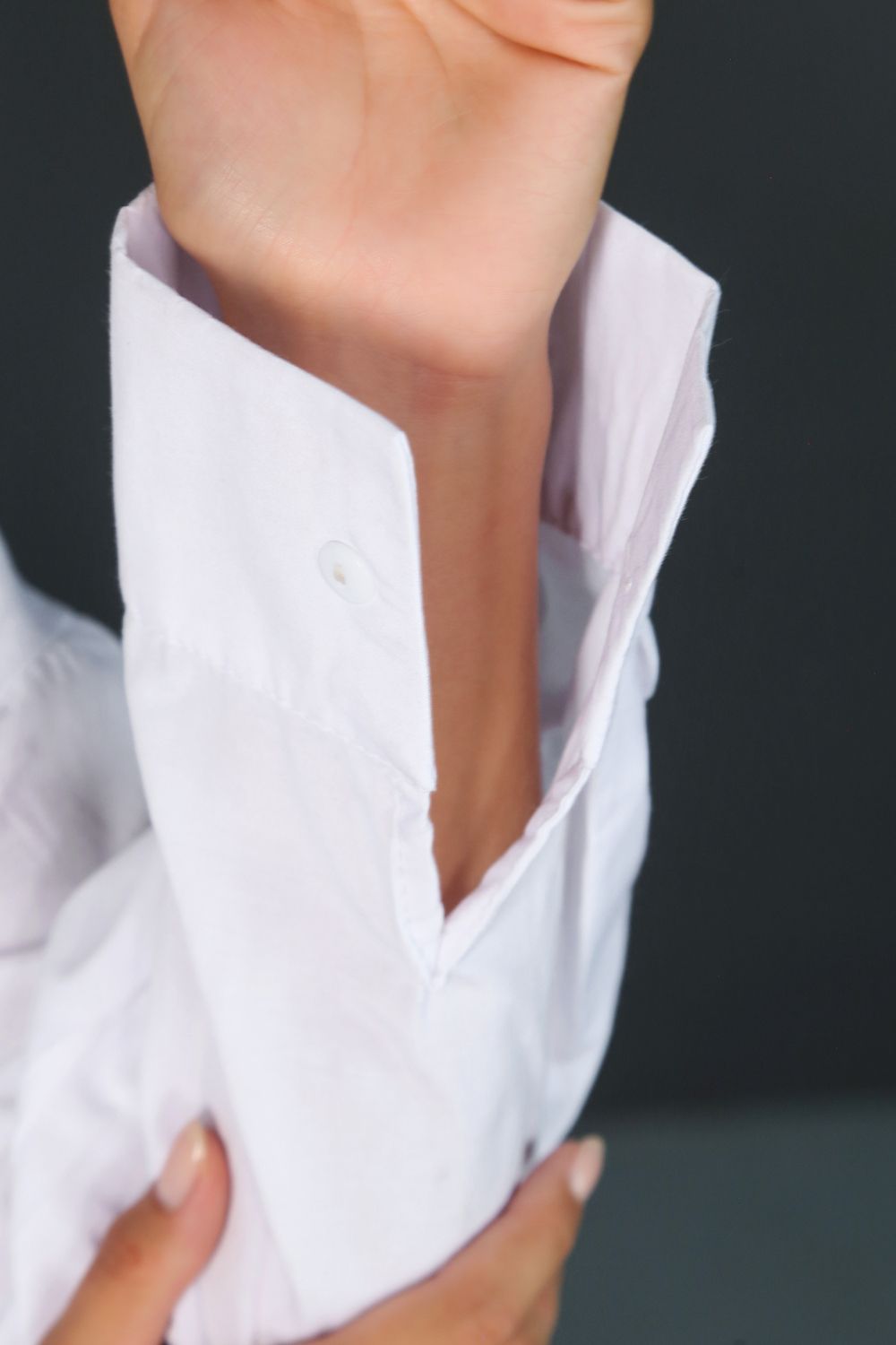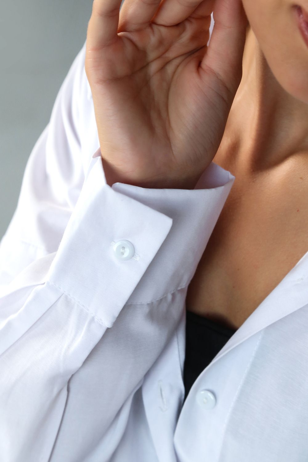 Рубашка выполнена из 100% полиэстера — ткань мягкая на ощупь, приятна к телу и сохраняет форму благодаря лёгкой эластичности. Не мнётся так сильно, как чистый хлопок, хорошо садится по фигуре и остаётся аккуратной в течение дня. Застёжка на пуговицы, классические манжеты и строгий ворот делают рубашку идеальной для повседневной и деловой стилизации. Этот вариант легко адаптировать под любой случай — от учёбы до отдыха. Универсальная длина и прямой крой подойдут как для миниатюрных, так и для высоких девушек.