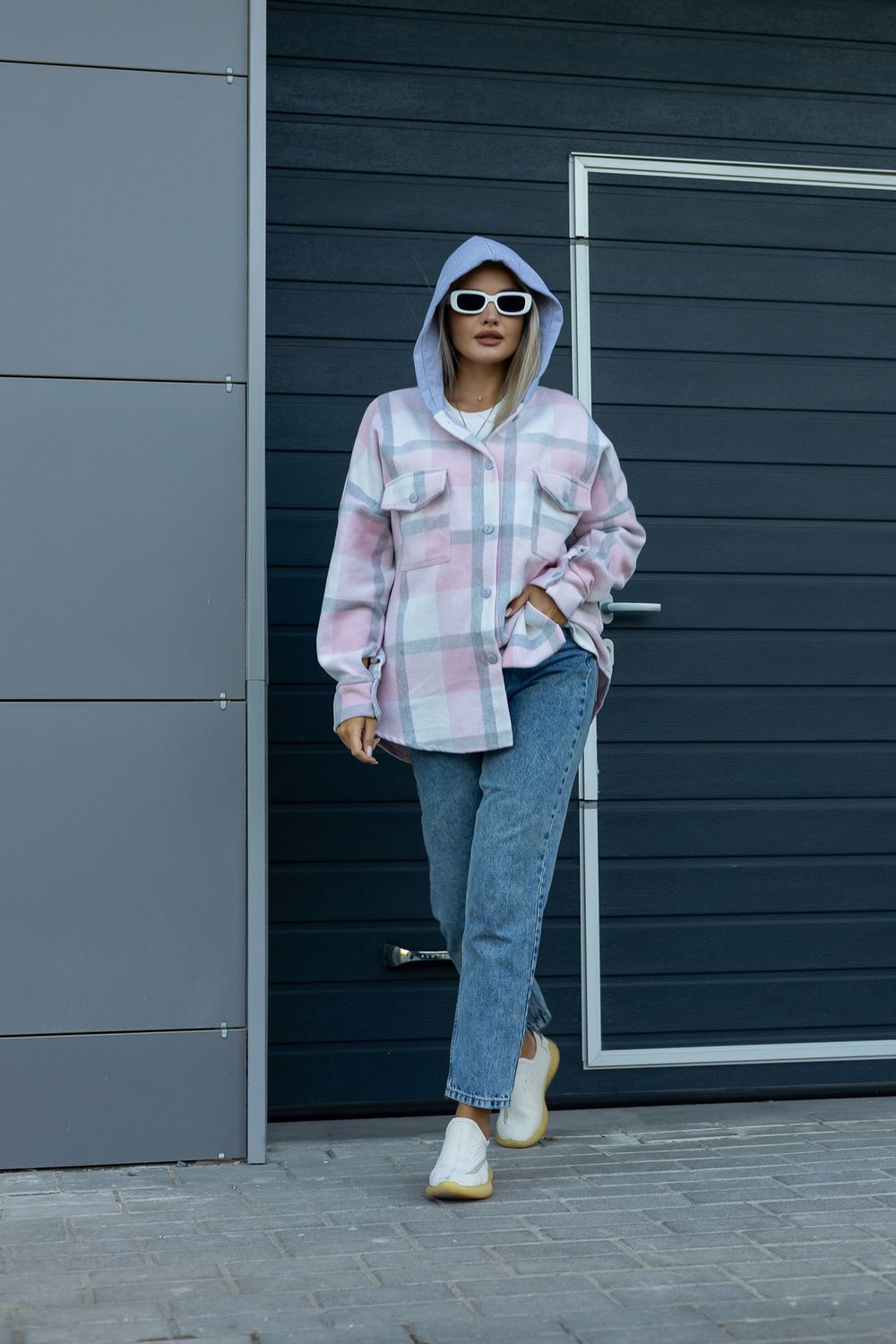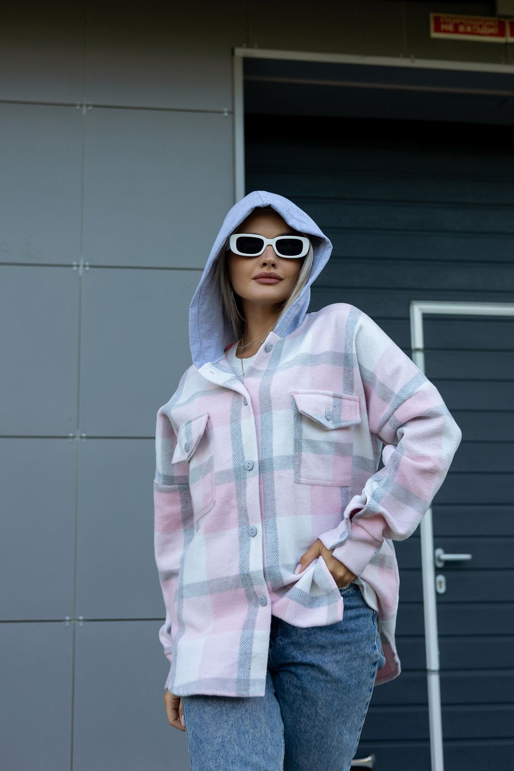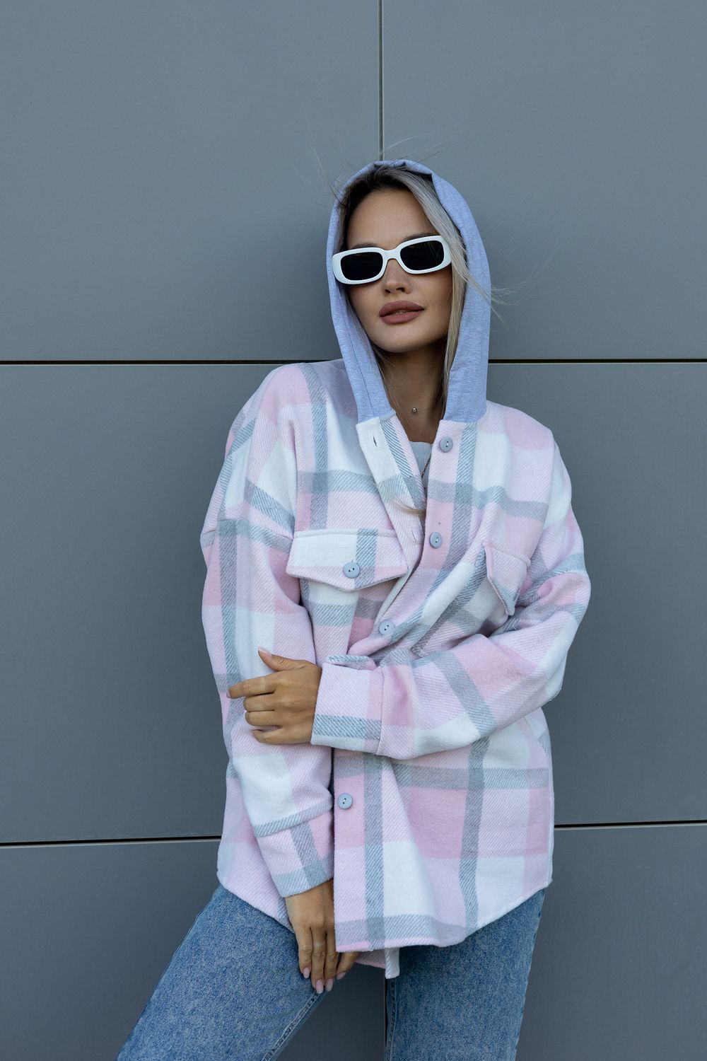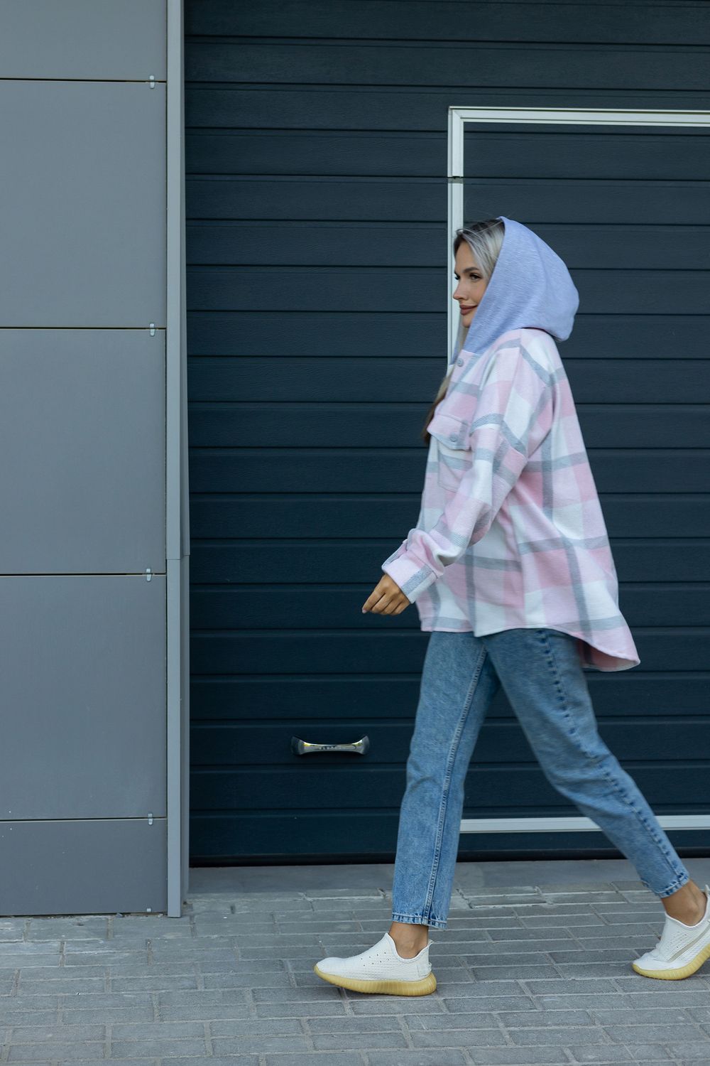 Рубашка женская в клетку с капюшоном РЖКК-01 - светло-розовый