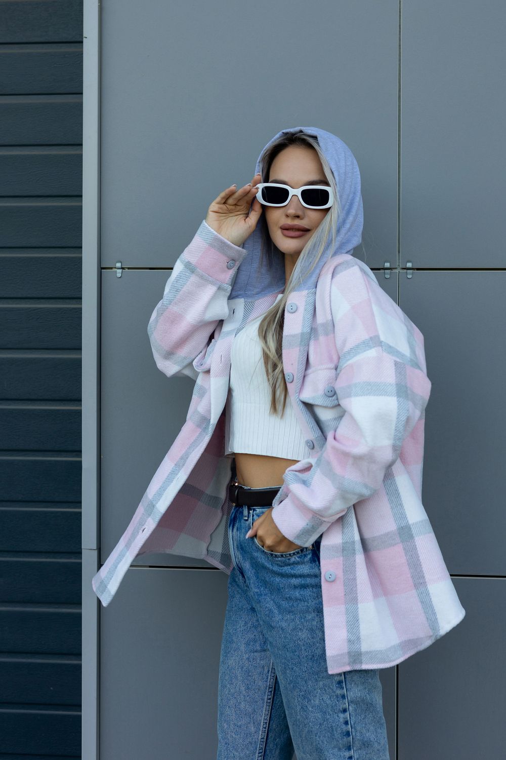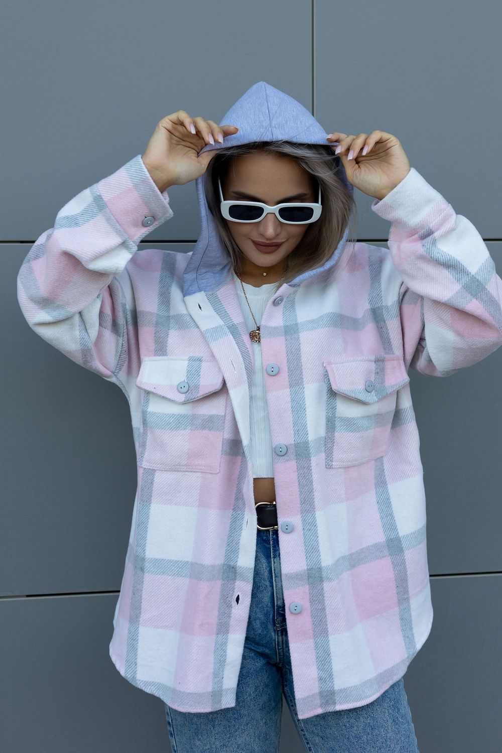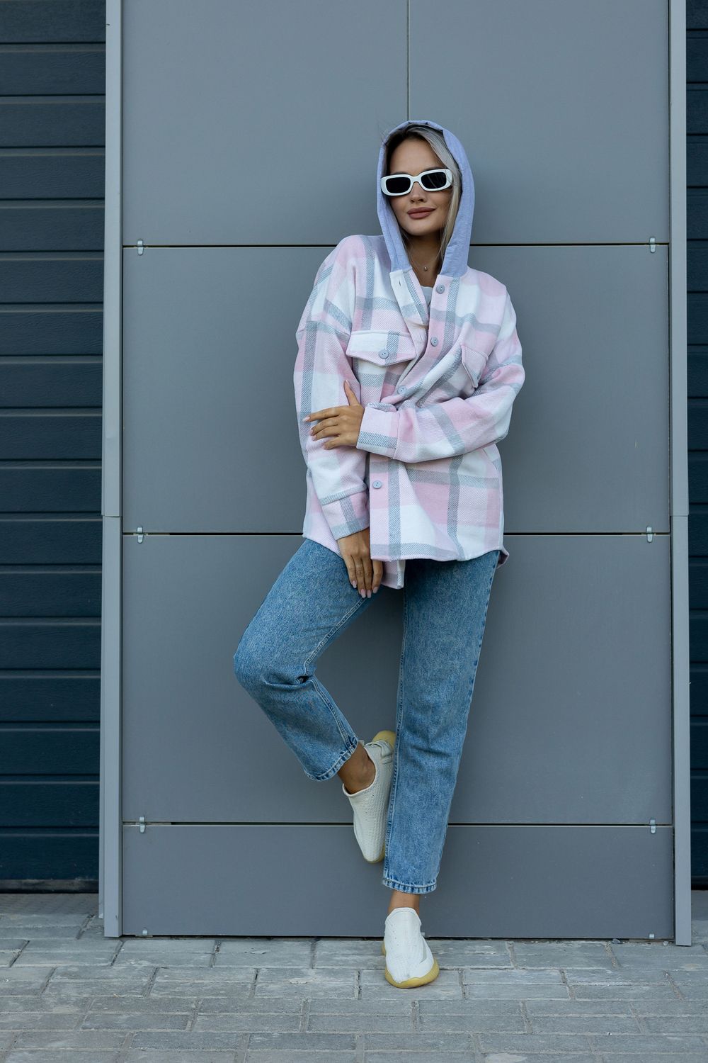 Рубашка женская в клетку с капюшоном РЖКК-01 - светло-розовый