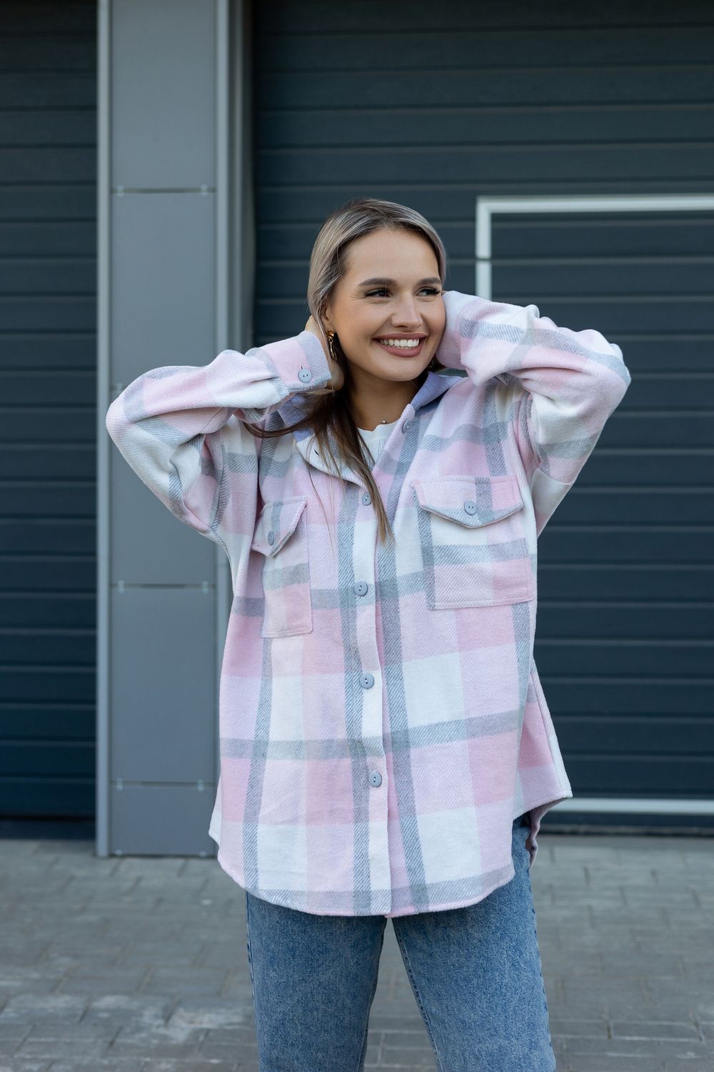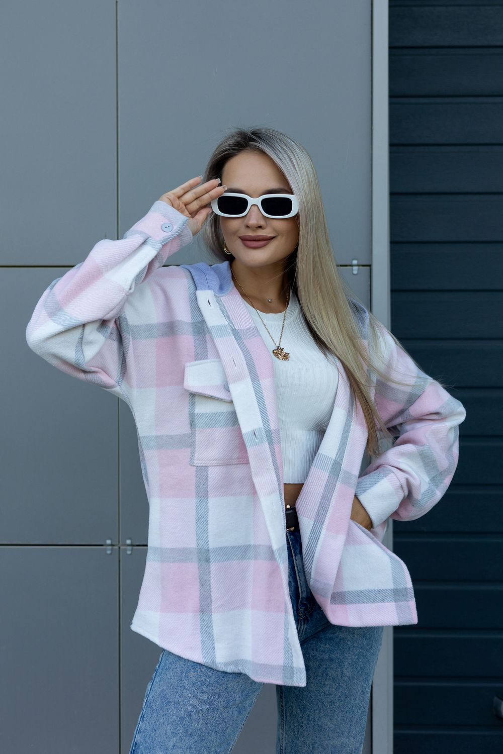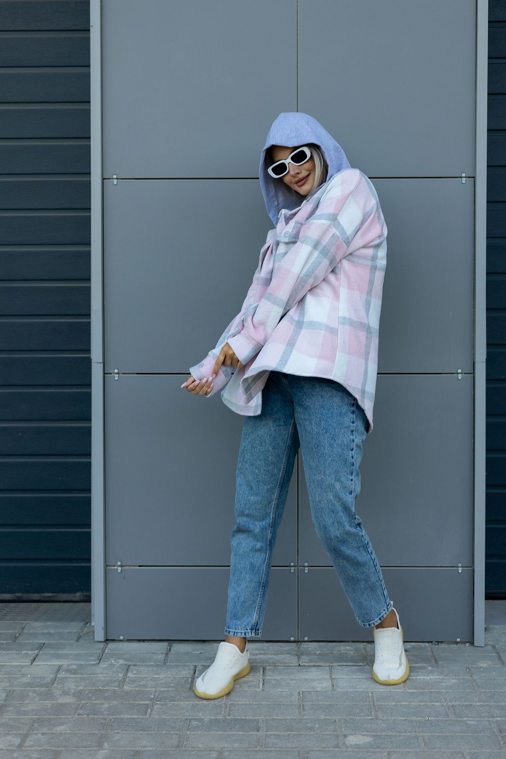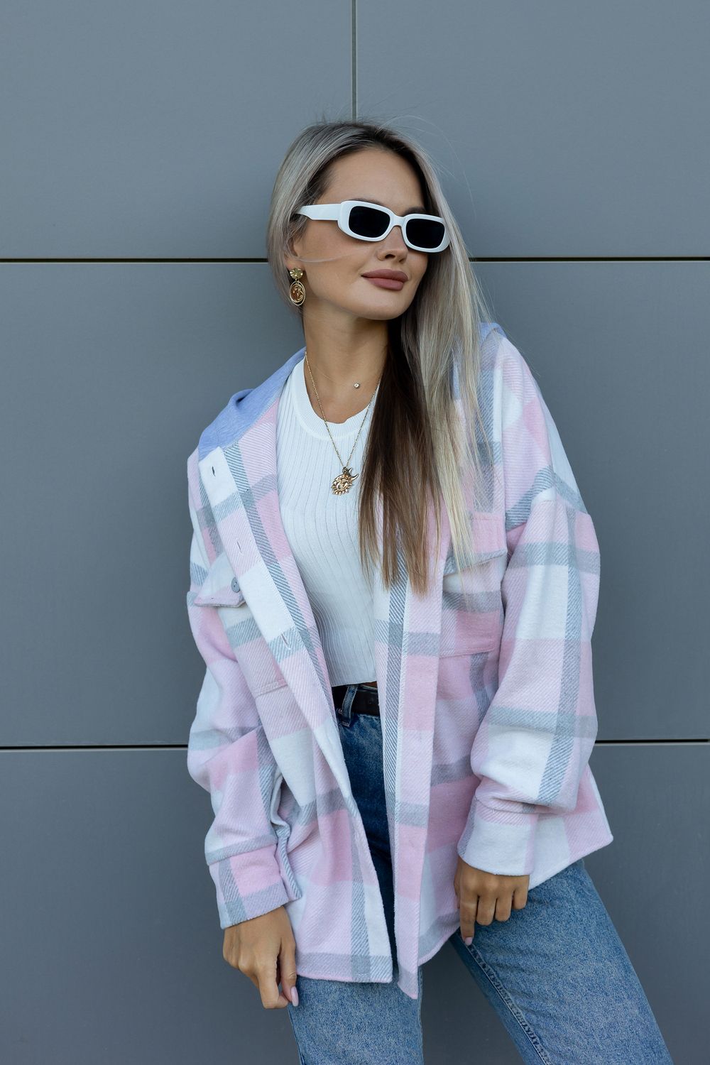 Рубашка женская в клетку с капюшоном РЖКК-01 - светло-розовый