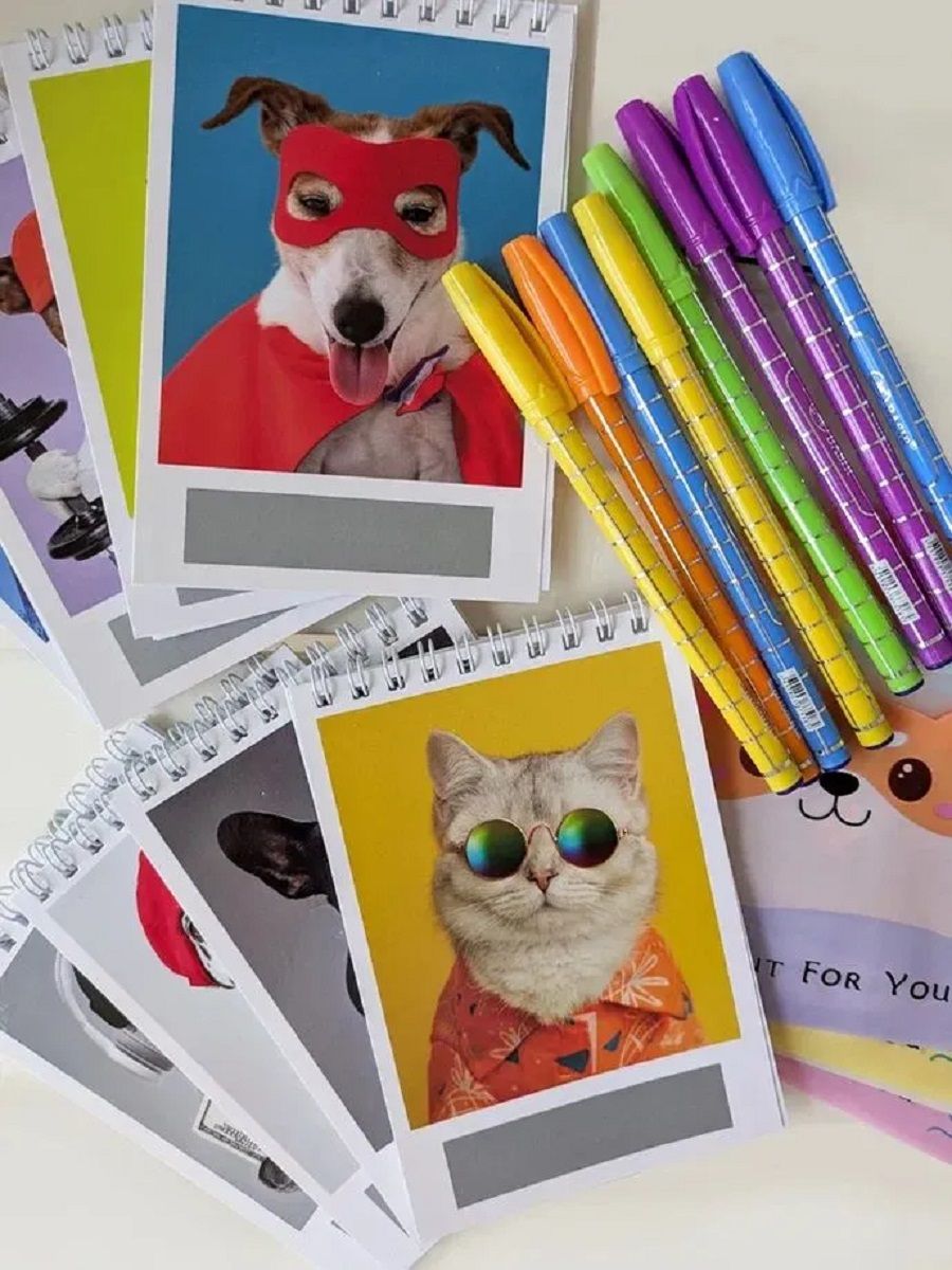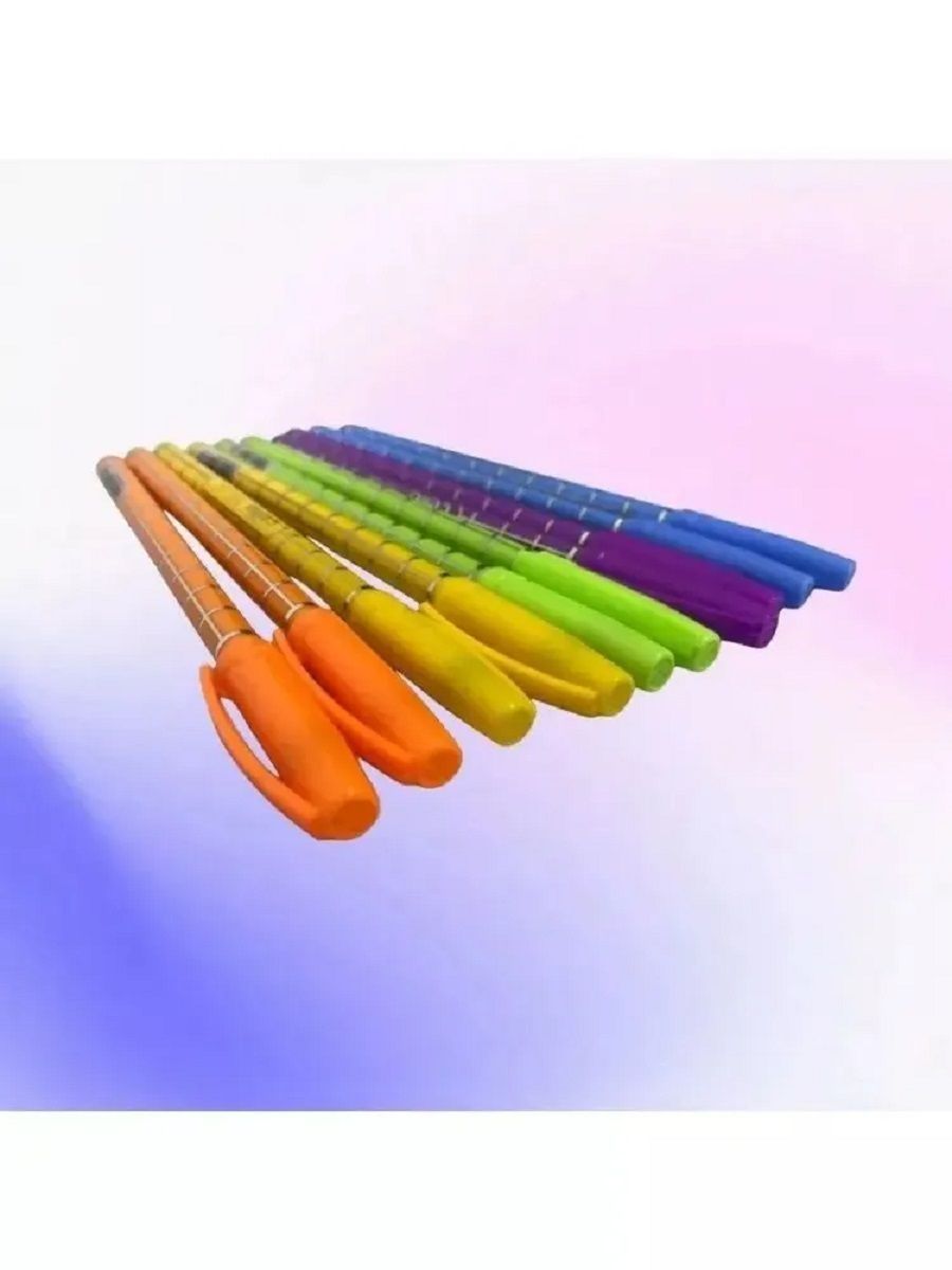 - Яркий дизайн: яркий корпус с разноцветными колпачками не позволит ручкам потеряться, и легко найдутся на любом столе.