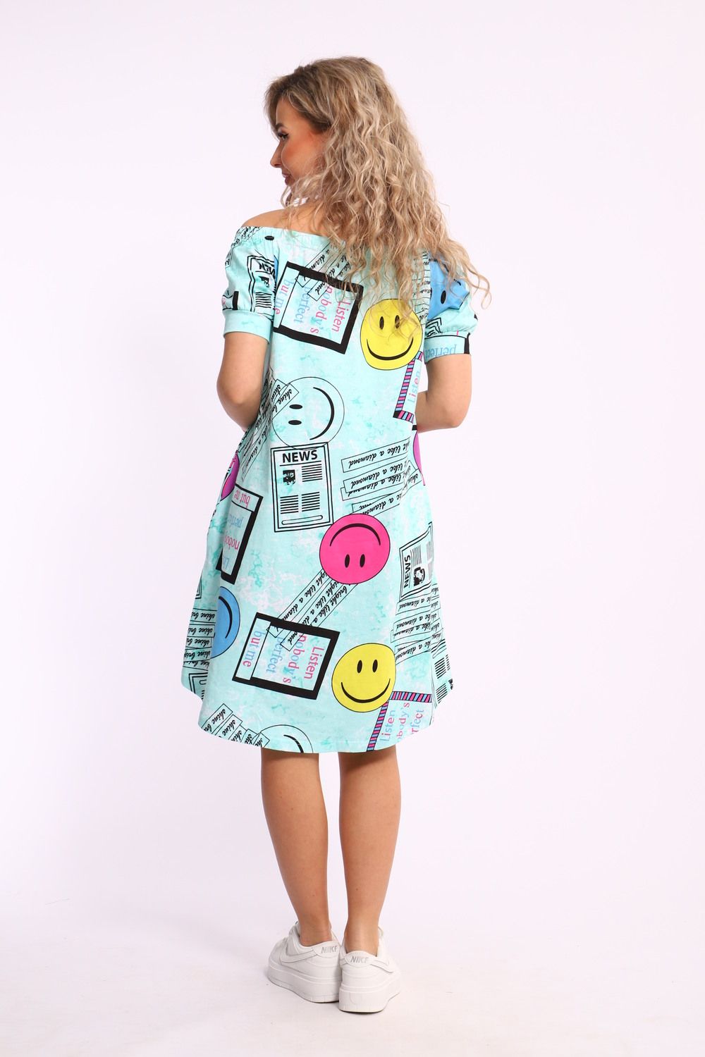 Сарафан женский с рукавами и открытыми плечами выполнен из хлопкового трикотажного полотна (кулирка). В этой модели имеются карманы в швах. Низ рукава со складками и манжетами. Верх собран на резинку 2,5 см. В этой лёгком воздушном сарафанчике можно гулять и отдыхать. Подходит для беременных.