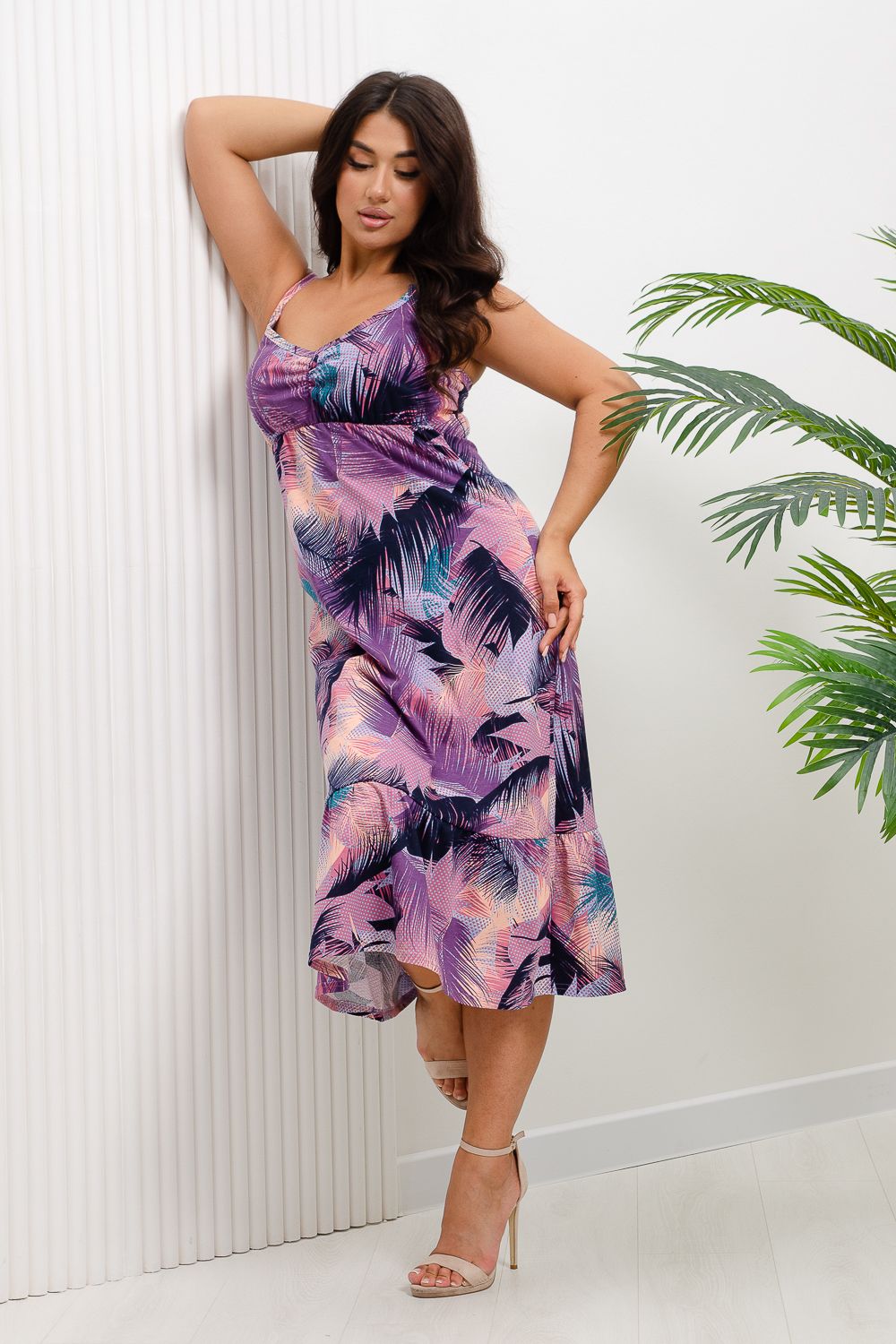 Лёгкий летний сарафан на бретельках полуприлегающего силуэта длиной до середины икры с пышным воланом по подолу. Изящный V-образный вырез лифа подчеркивает красоту груди. Данная модель выполнена из 100% хлопка. Даже в самые жаркие дни вы будете выглядеть в ней стильно и привлекательно.