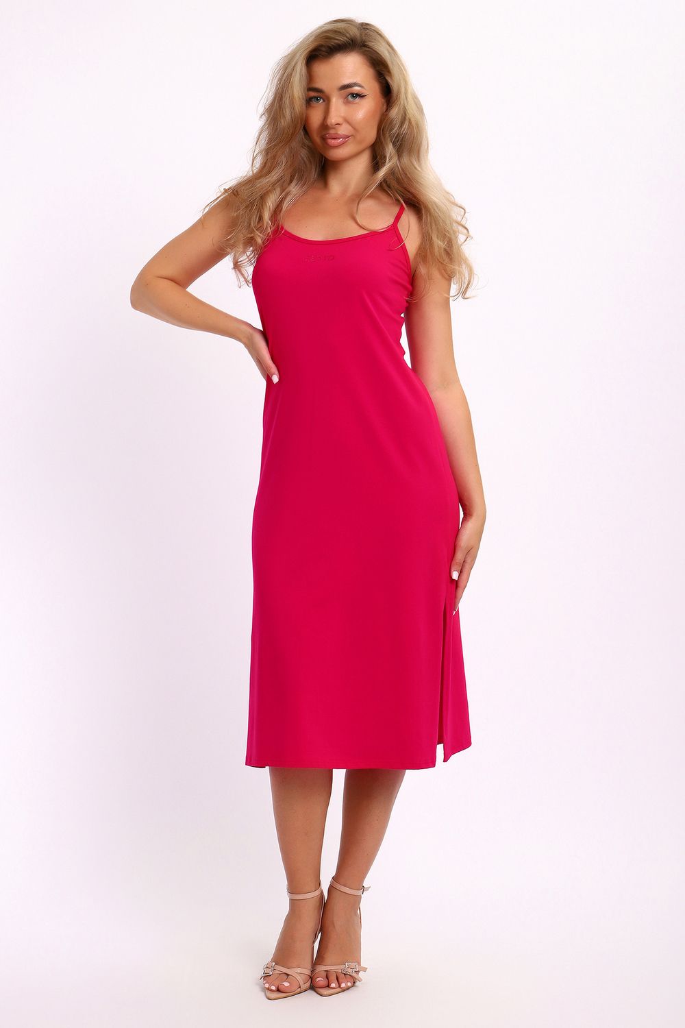 Летний сарафан облегающего силуэта на регулируемых бретелях. Комфортная длина до середины икры, разрезы по боковым швам, на спине рельефный шов подчеркивающий утонченность образа. Изделие выполнено из хлопкового волокна высокого качества с добавлением лайкры, хорошо растягивается, благодаря чему идеально садится по фигуре. Ткань отлично подходит для жарких летних дней, она гигроскопична, обладает отличными дышащими свойствами. В этом сарафане вы будете чувствовать себя вне всяких ограничений, ведь он совершенно не сковывает движения! Модные яркие расцветки, лаконичный фасон, открытая зона декольте - всё это создаёт нежный и приятный образ. Ненавязчивый текстовый принт на груди выглядит стильно. Тонкие бретельки, регулируемые по длине, подчеркивают изящность и женственность. В этом наряде вы будете прекрасно смотреться на отдыхе и в повседневной жизни, он незаменим в отпуске и удобен в жару в городе, одевайте его на пляж или для прогулок в парке, комбинируйте с блузами и пиджаками.