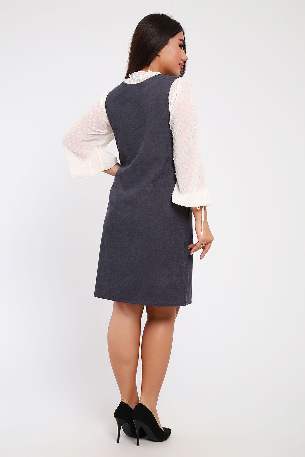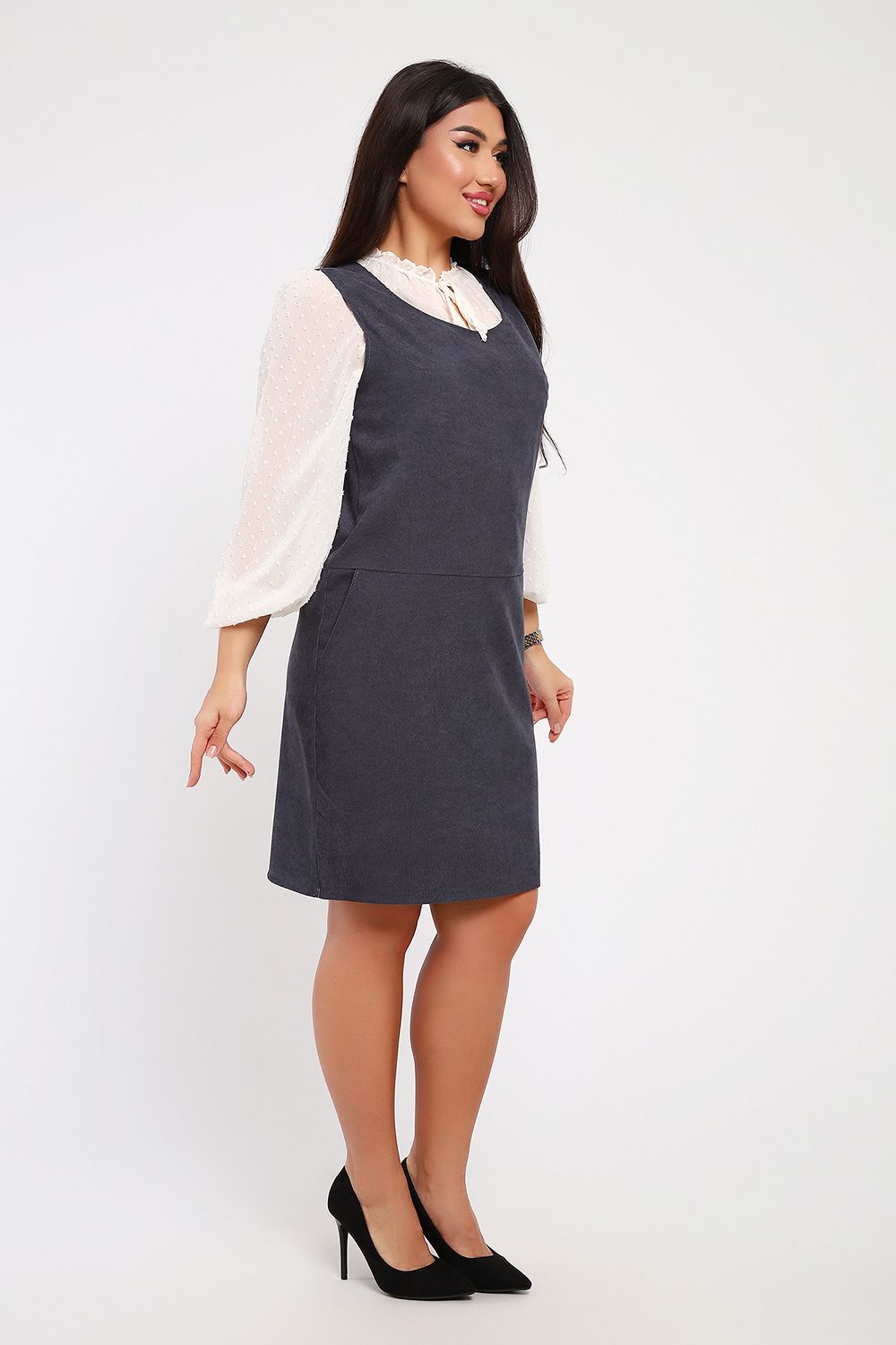Создайте свой образ с помощью универсального вельветового сарафана. Это может быть и деловой, и повседневный, и праздничный образ, в зависимости от того, какую блузку или рубашку вы к нему подберете. Сарафан выполнен из микровельвета, ткани, очень легкой и простой в уходе. Вельвет не мнется, отлично сохраняет форму и цвет, не электризуется, к нему ничего не липнет. Сарафан прямого кроя, округлая горловина обработана обтачкой, полочка отрезная по линии чуть ниже талии. Глубокая пройма позволит комбинировать сарафан с любой блузкой, водолазкой,лонгсливом. Длина изделия до середины колена при росте 164см. У модели на фото рост 170см. По бокам нижней части полочки расположены внутренние карманы. Данная модель универсальна и подойдет на любую фигуру, скроет недостатки и подчеркнет достоинства. В офисе, на работе, на прогулке в этом сарафане вы будете чувствовать себя уверенно и комфортно.