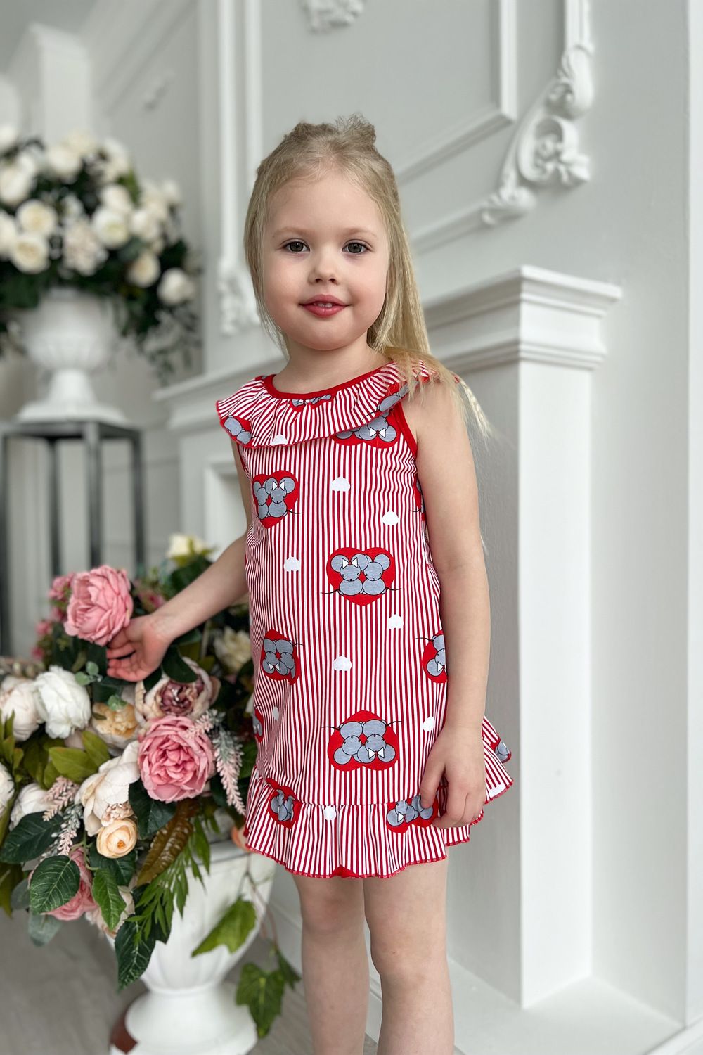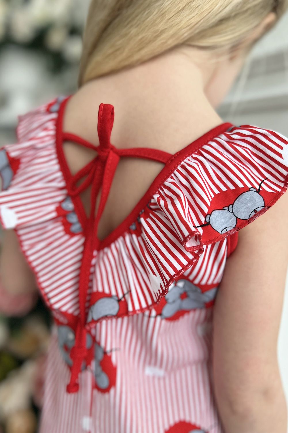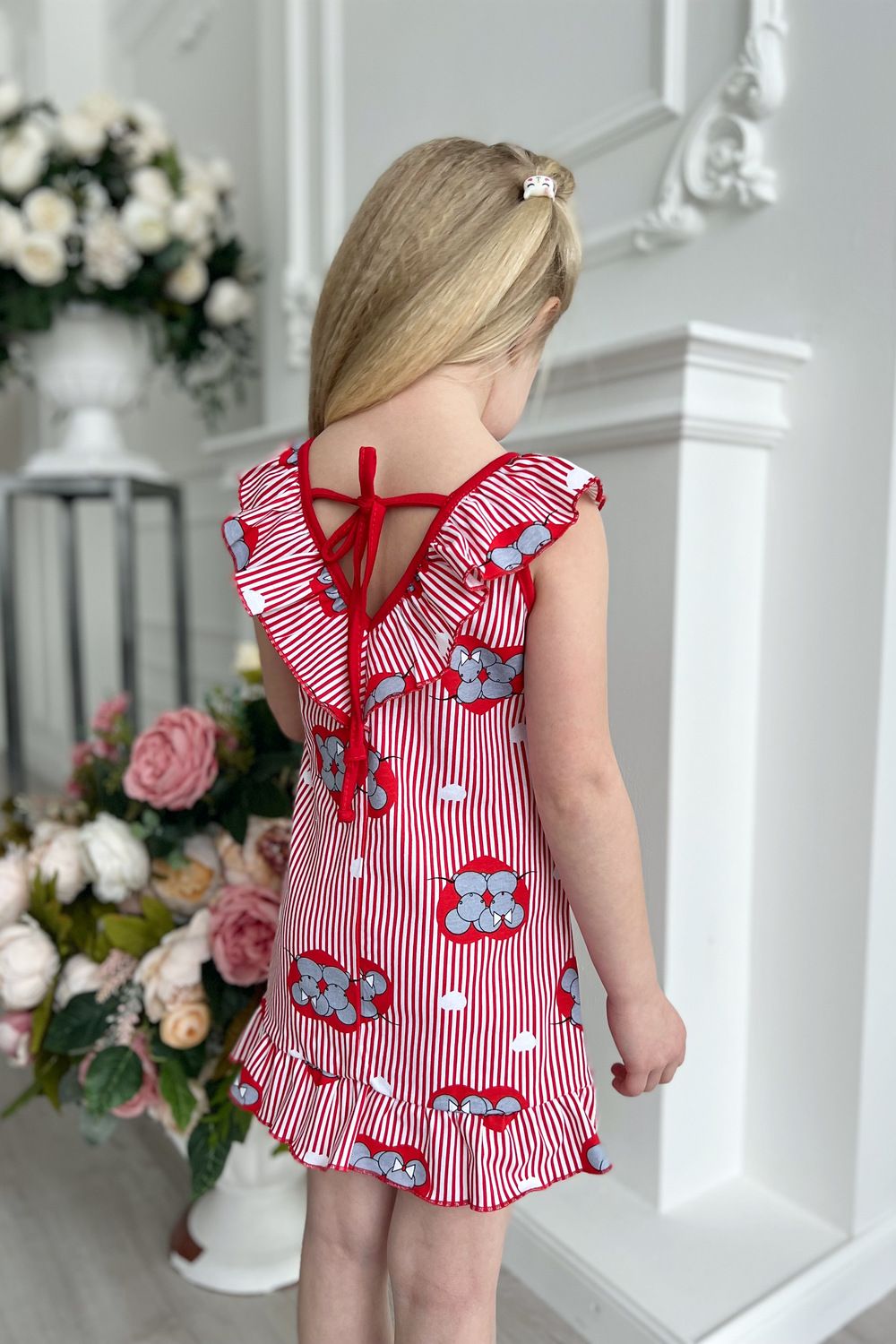 Сарафан для девочки, по горловине и низу изделия оборки, на спинке завязки.