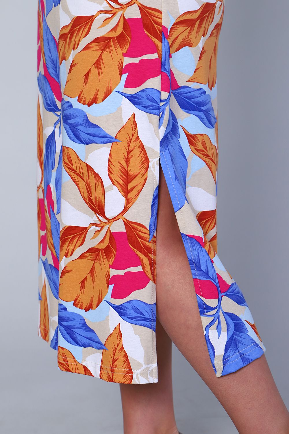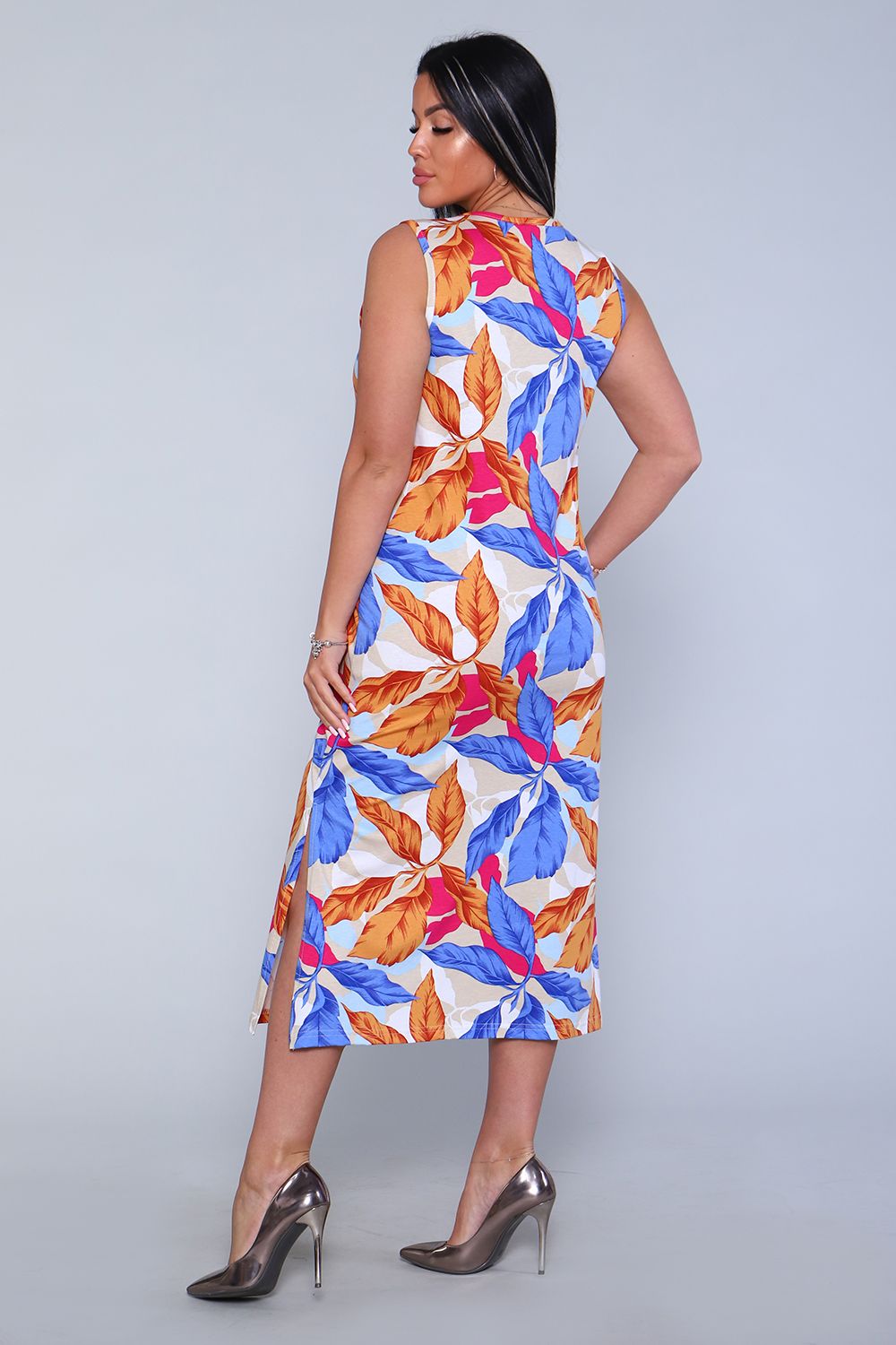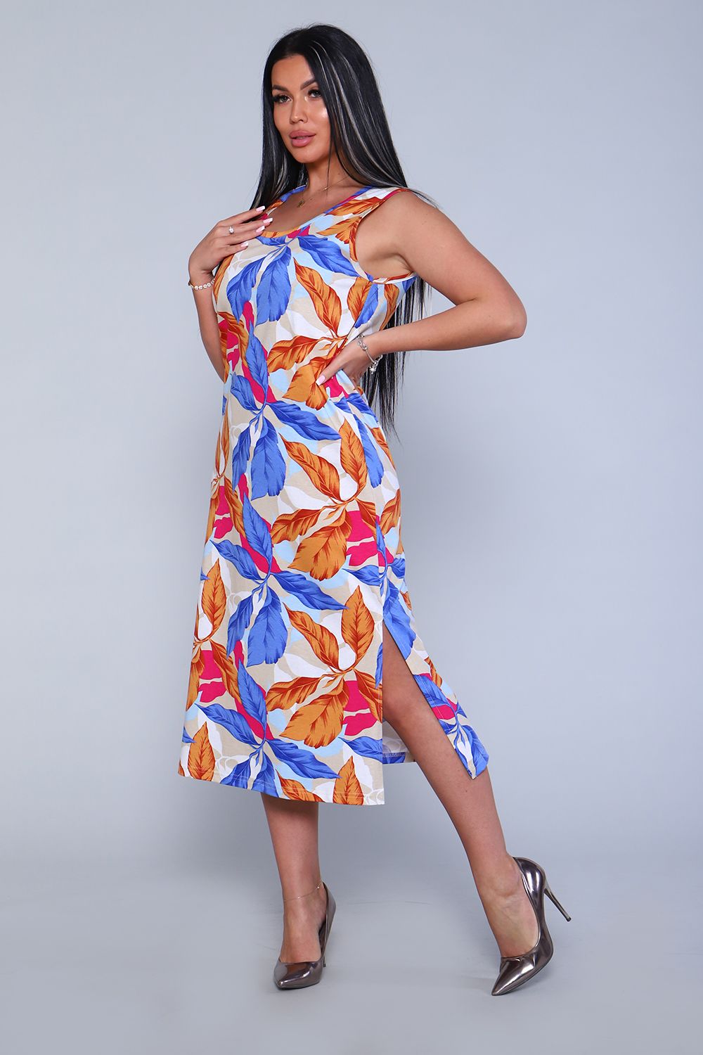 Женское платье - сарафан прямого силуэта из трикотажного полотна (100% хлопок). Горловина и пройма отделана окантовочной беей в цвет изделия. Внизу по боковым швам разрезы. Длина изделия ниже колена. Удобный сарафан, приятный к телу, не стесняет движения, подойдет беременным. Яркие стойкие цвета ткани. Большие размеры широкий размерный ряд 44-62. Для дома и дачи, для отдыха и прогулок, в отпуск, на море.