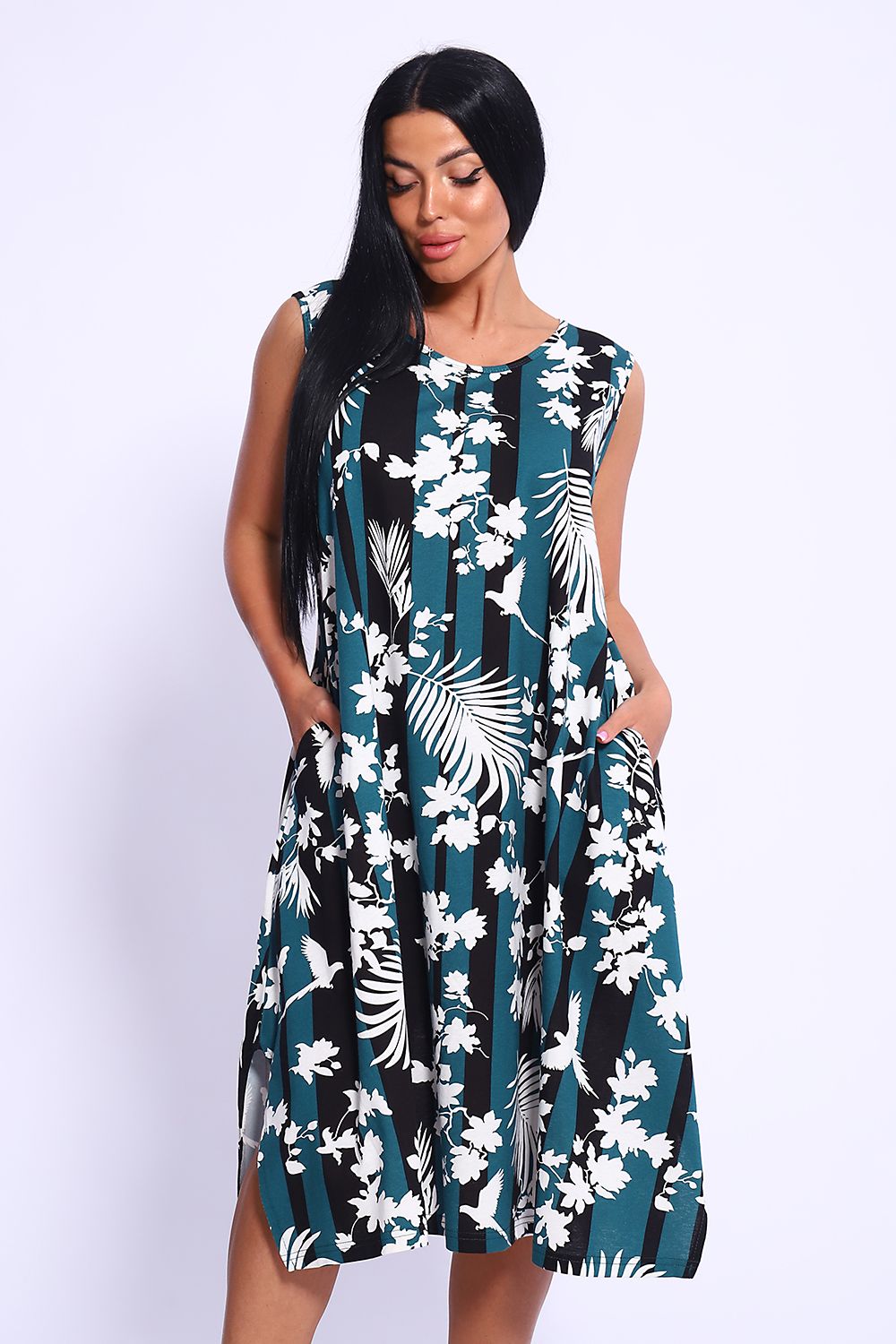 Повседневный длинный сарафан выполнен из трикотажного полотна, комфортный и мягкий на ощупь. Платье-сарафан на широких лямках подходит под разные типы фигур, трапециевидный А-силуэт и карманы в боковом шве будет удобен для полных и для беременных девушек. Подол сарафана свободного кроя . Сарафан идеален для повседневной носки, пляжного отдыха или вечеринки на природе.