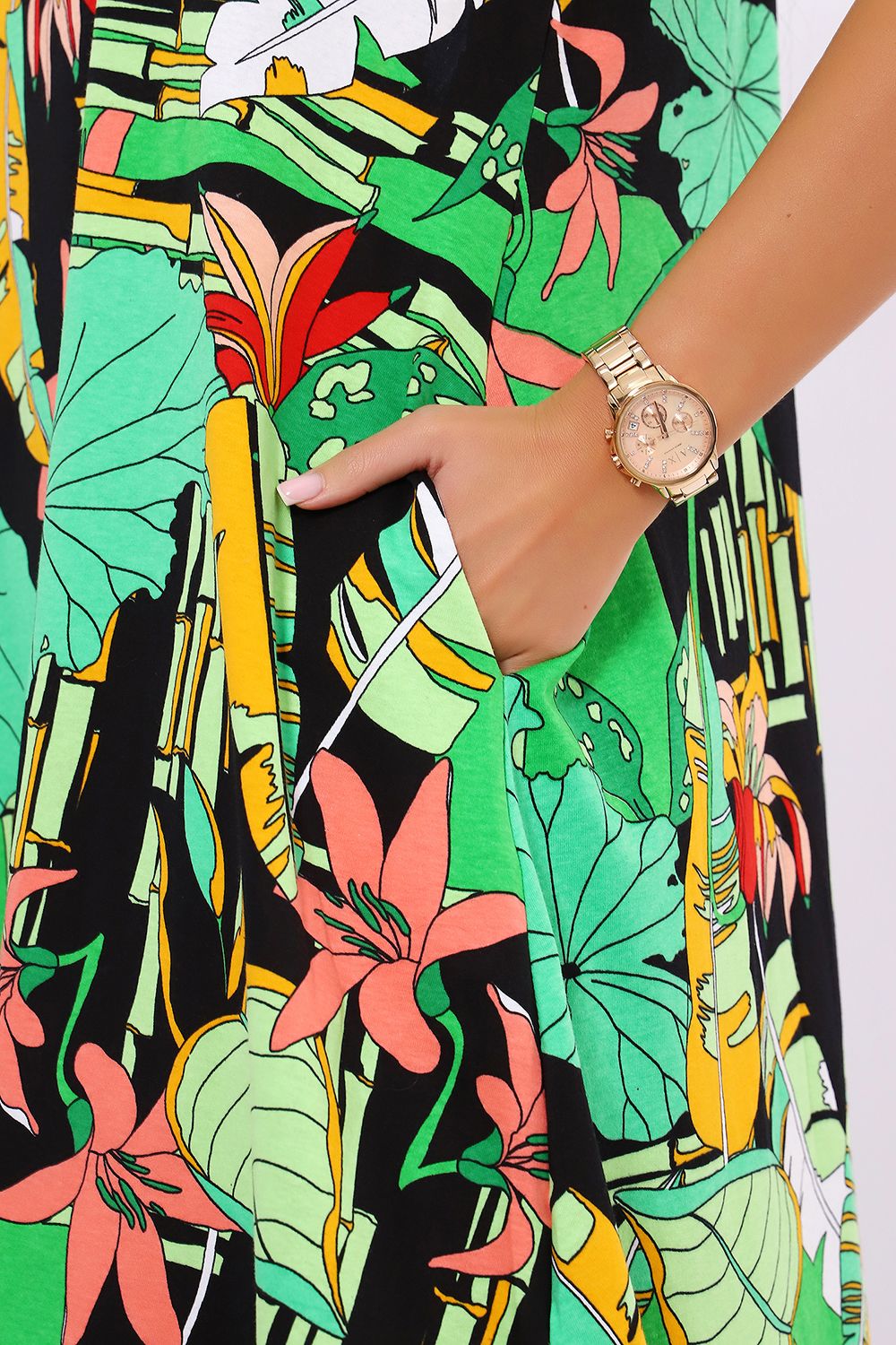 Повседневный длинный сарафан выполнен из трикотажного полотна, комфортный и мягкий на ощупь. Платье - сарафан на широких лямках подходит под разные типы фигур, трапециевидный А-силуэт и карманы в боковом шве будет удобен для полных и для беременных девушек. Подол сарафана свободного кроя. Сарафан идеален для повседневной носки, пляжного отдыха или вечеринки на природе.