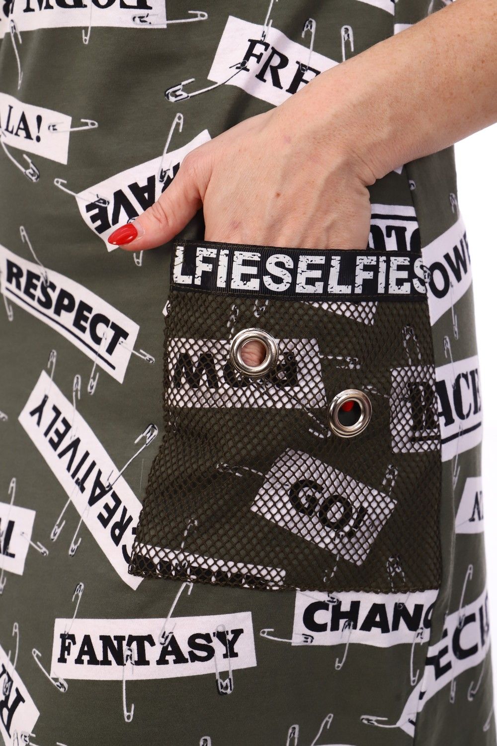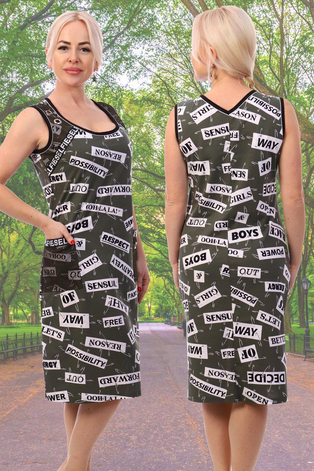 Сарафан женский полуприлегающего силуэта, с кокетками и накладными карманами, декорированными тканью-сеткой и крупными люверсами. По низу изделия разрезы в боковых швах.