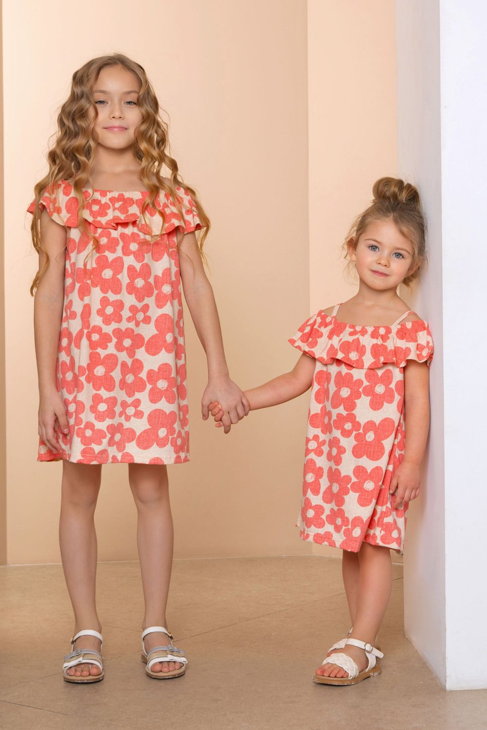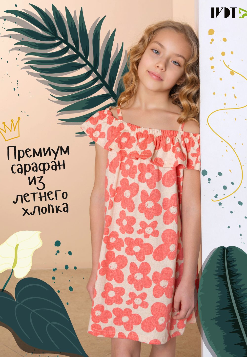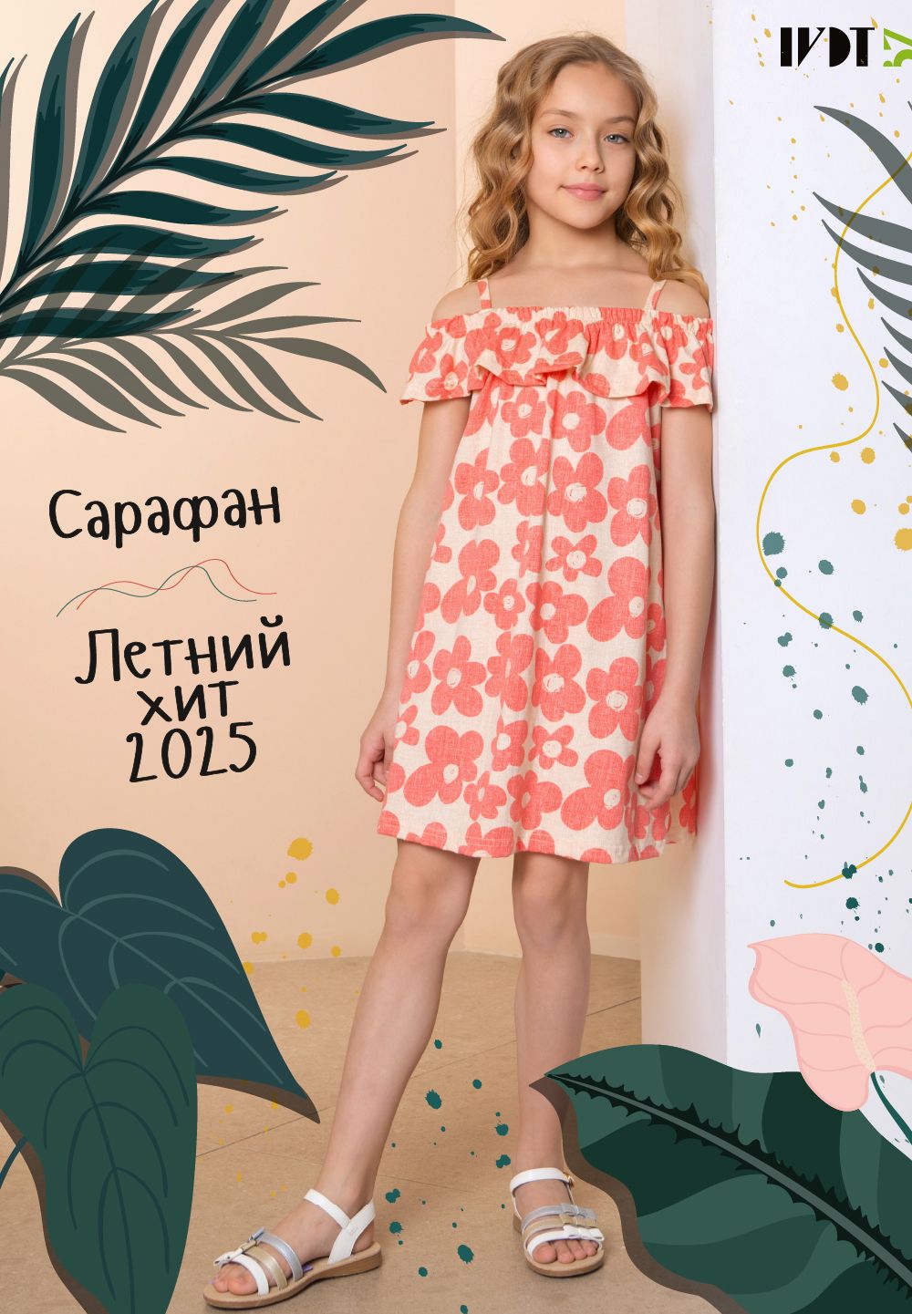 Детский стильный сарафан для девочек в яркой весенне-летней расцветке с насыщенными рисунками в розовых тонах. Современная модель, модный крой.