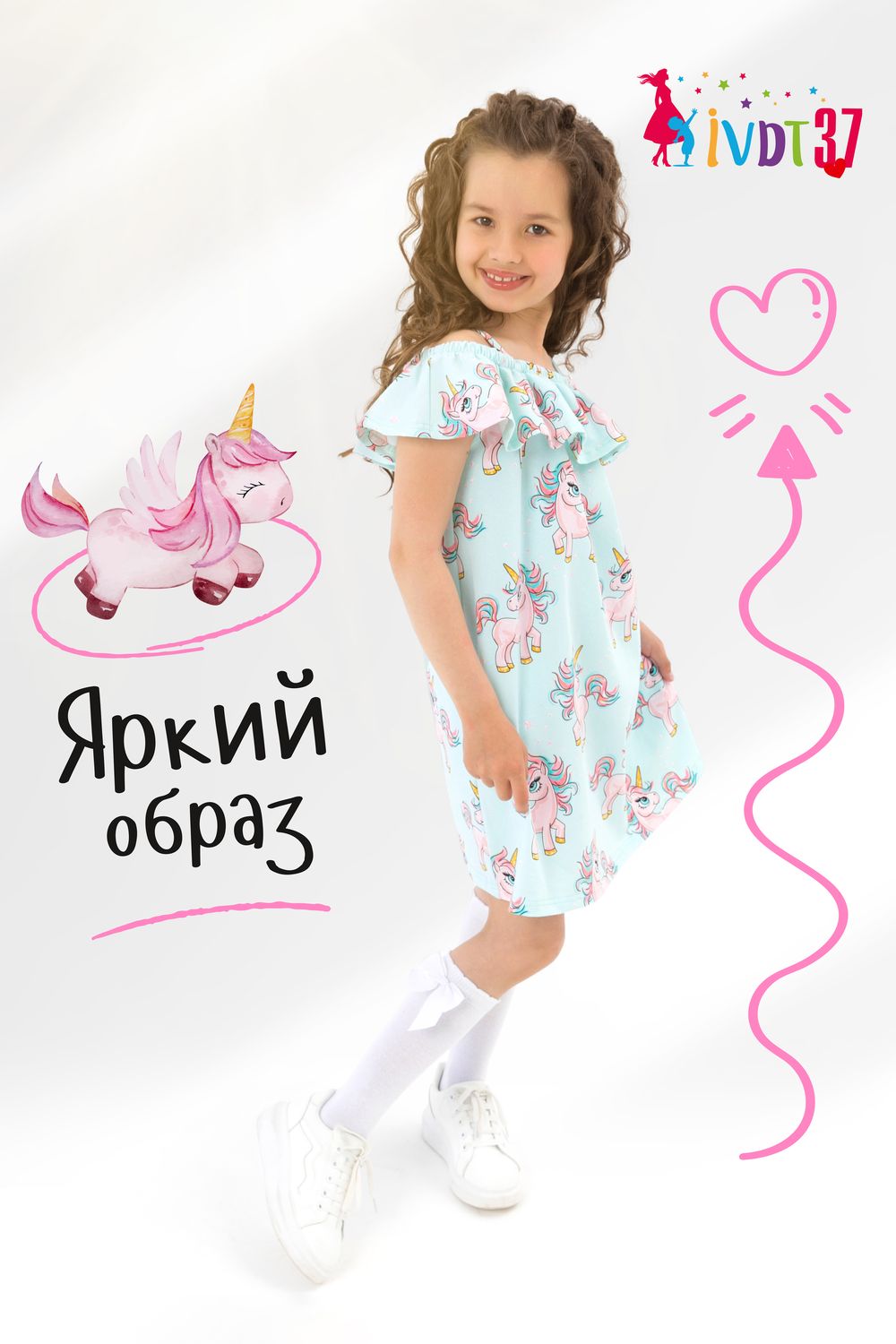 Детский стильный сарафан для девочек в яркой весенне-летней расцветке с насыщенными рисунками в светло-бирюзовых тонах. Современная модель, модный крой.