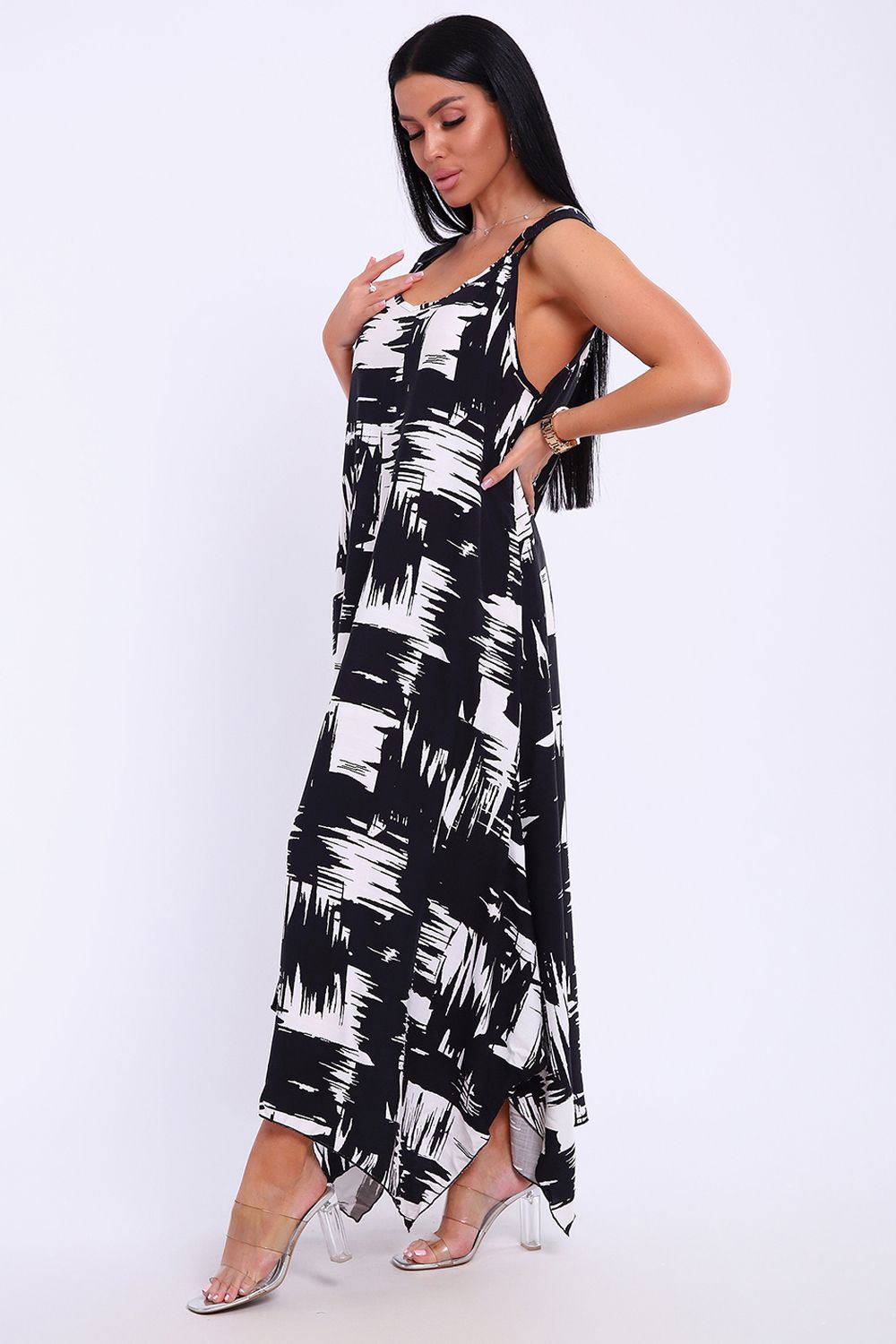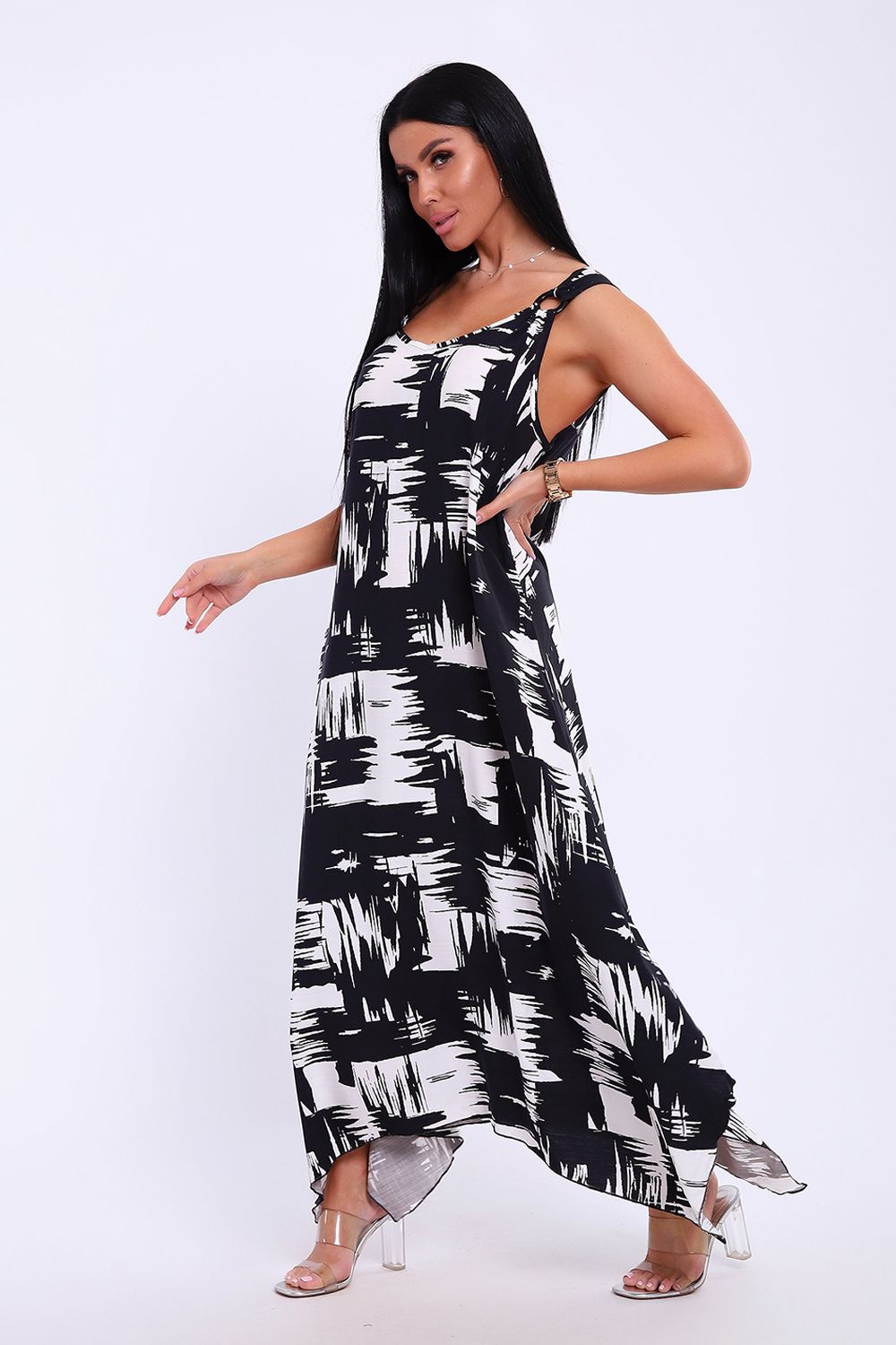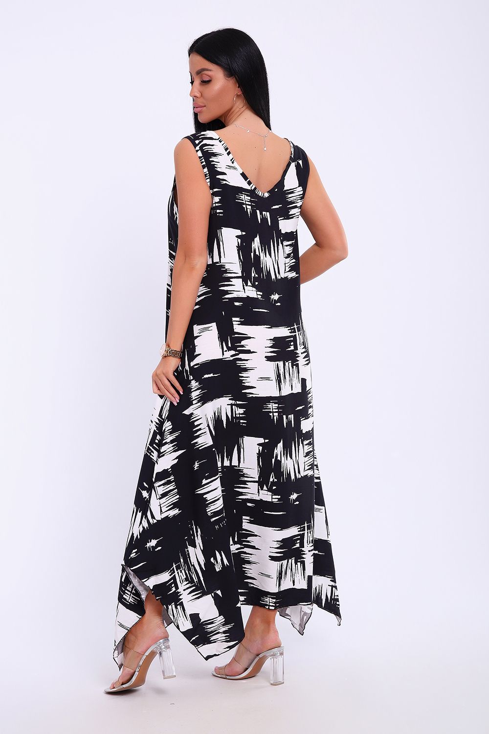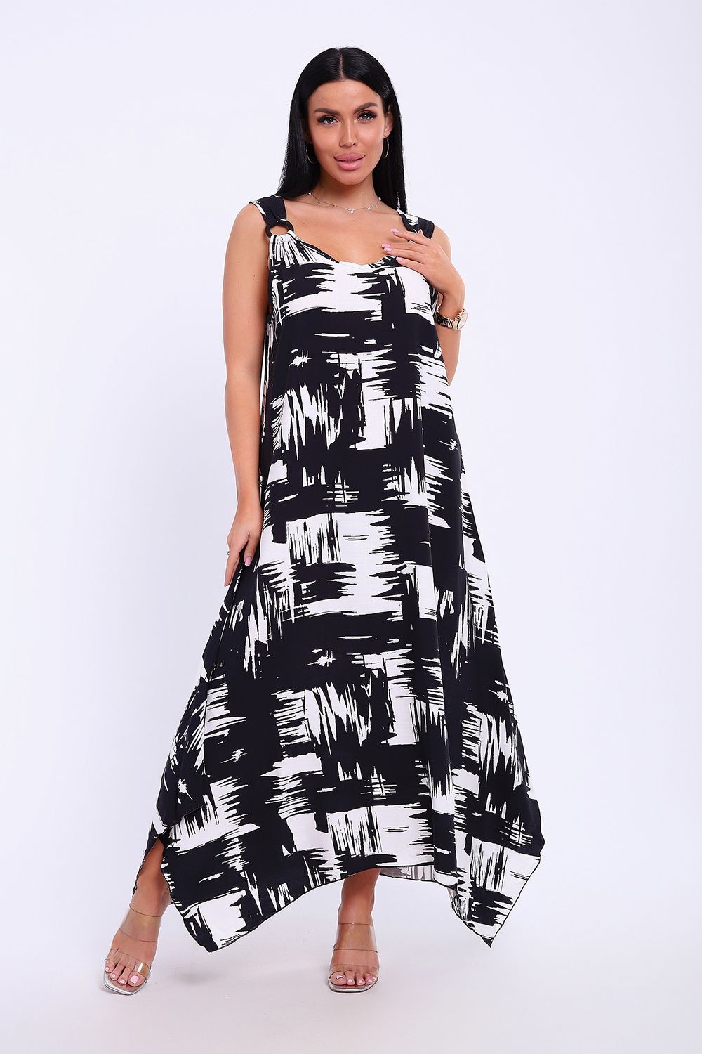 Сарафан летний больших размеров пляжный домашний 5739 - черно-белый