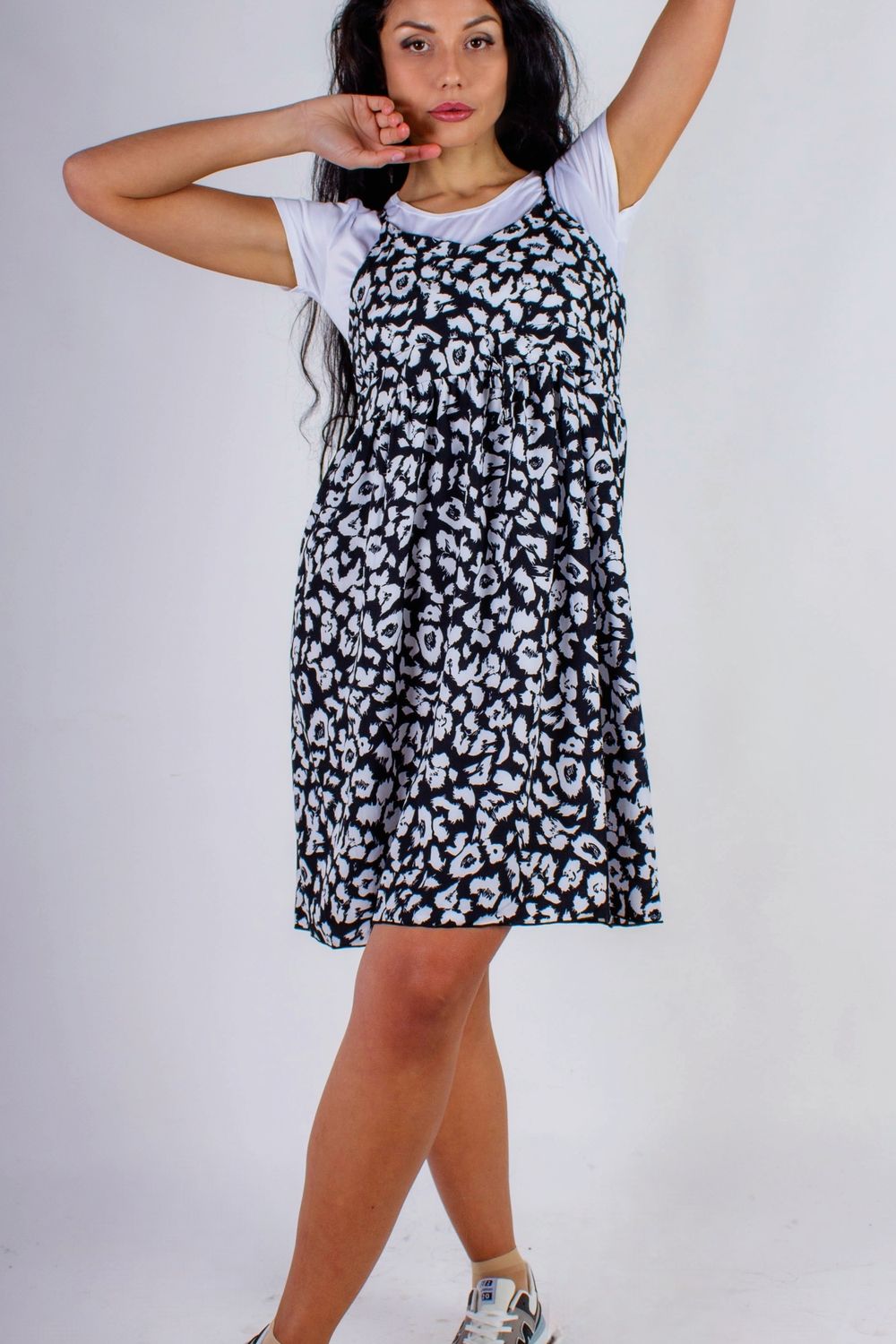 Сарафан с кокеткой SummerQ арт. 8689 - Черный+белые штрихи