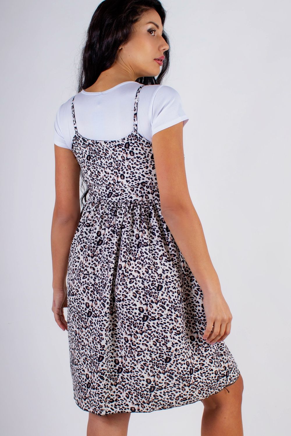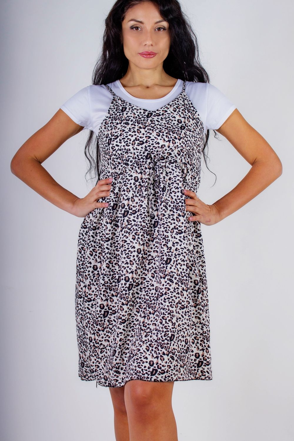Сарафан с кокеткой арт. 8687 - белый+ черно бежевый леопард