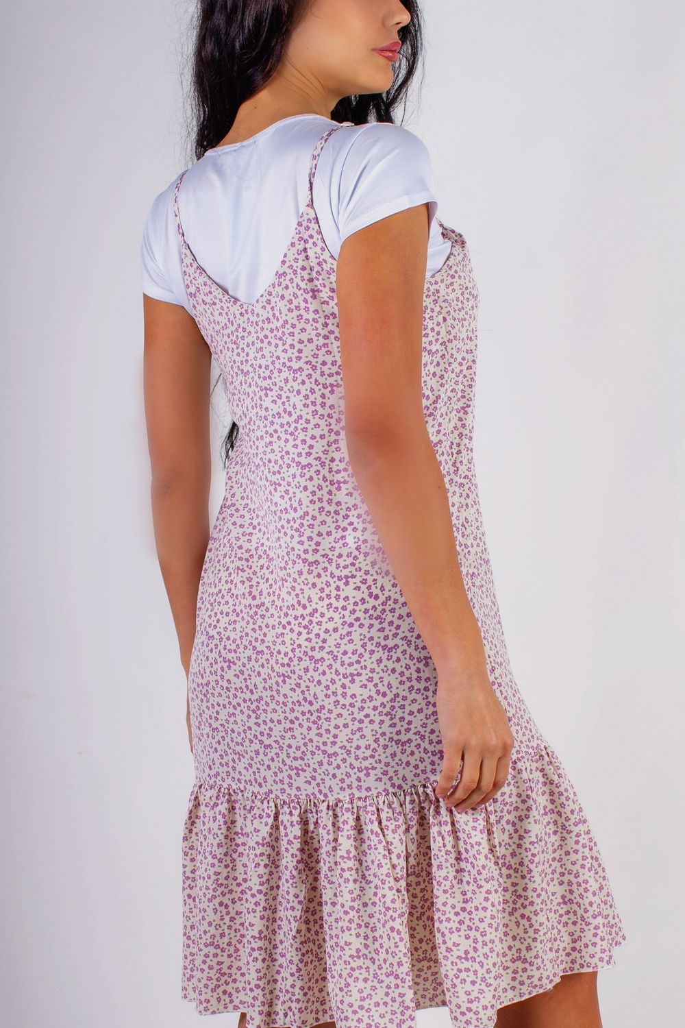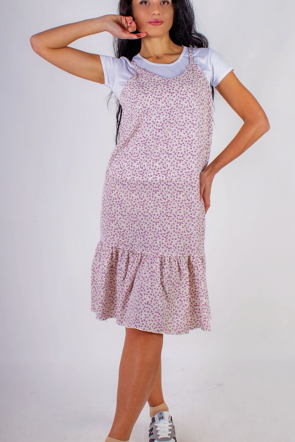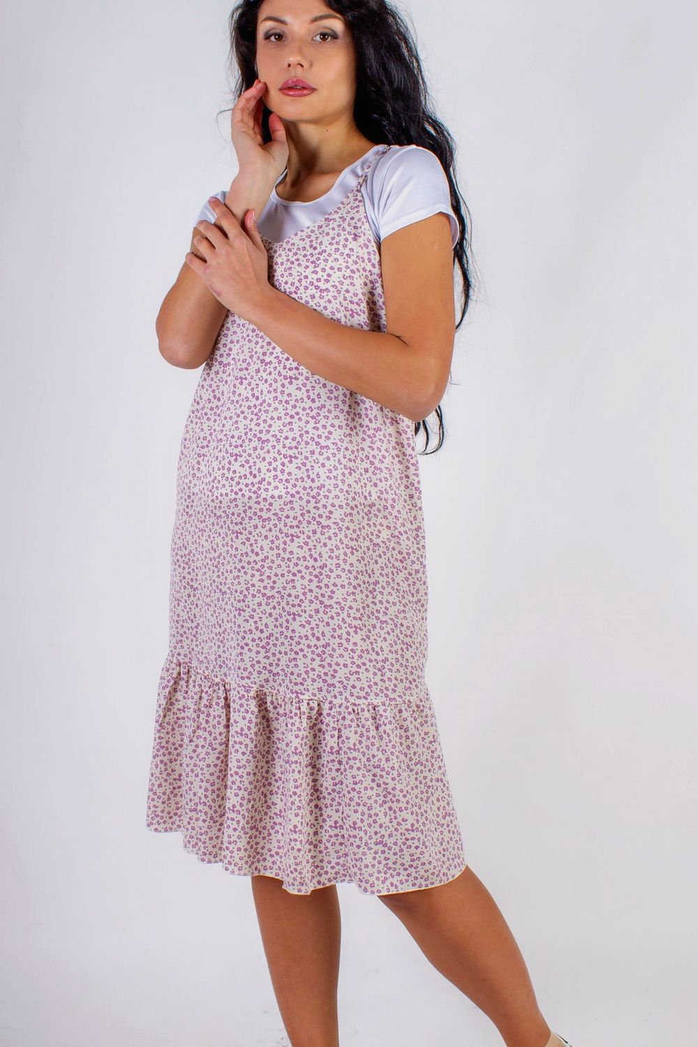 Сарафан с воланом Summer Breeze арт. 8688 - молочный+сиреневый цветочек