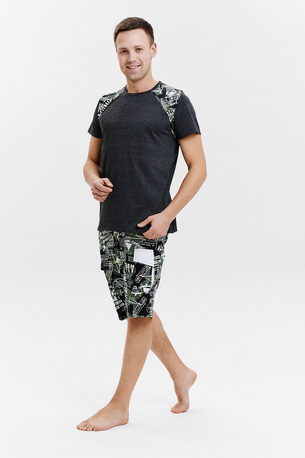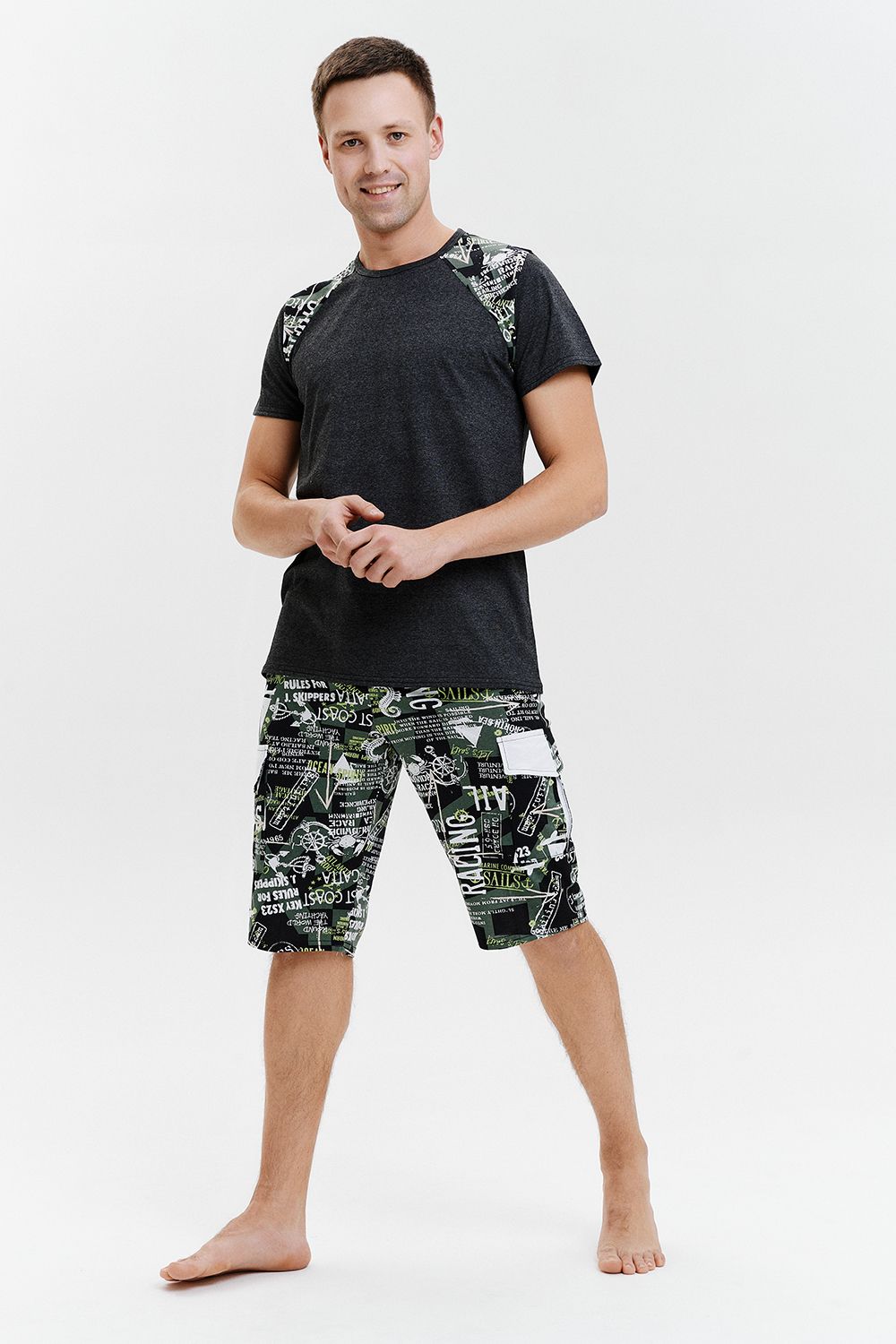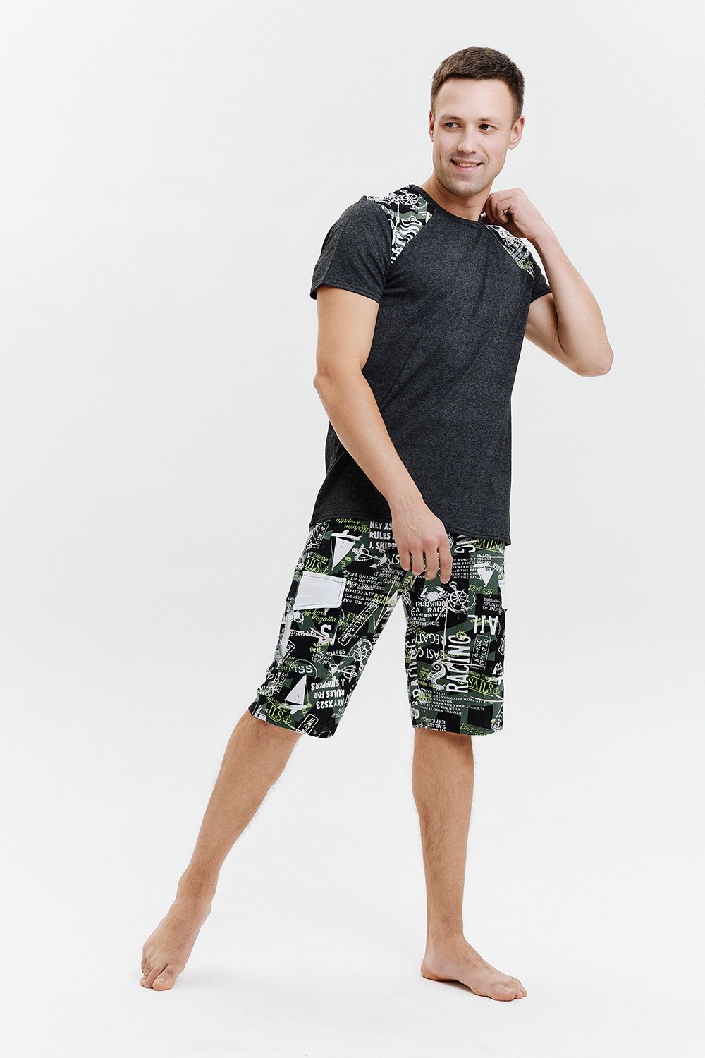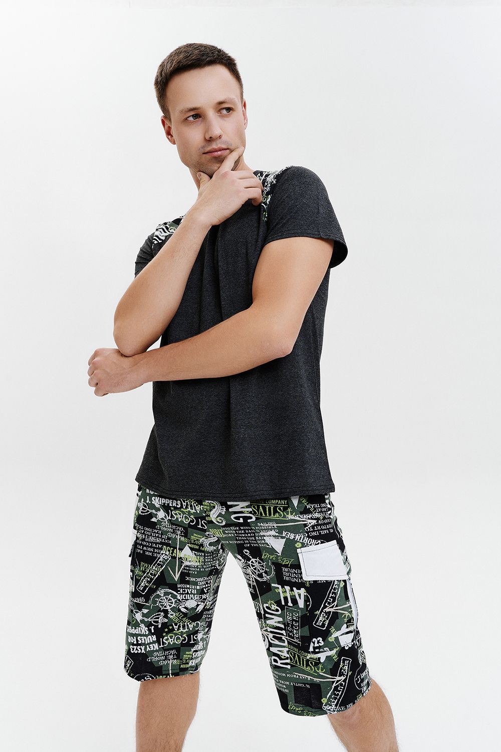 Мужской костюм. В комплекте футболка классического кроя с коротким рукавом. Яркие шорты с карманами, длина чуть ниже колена.