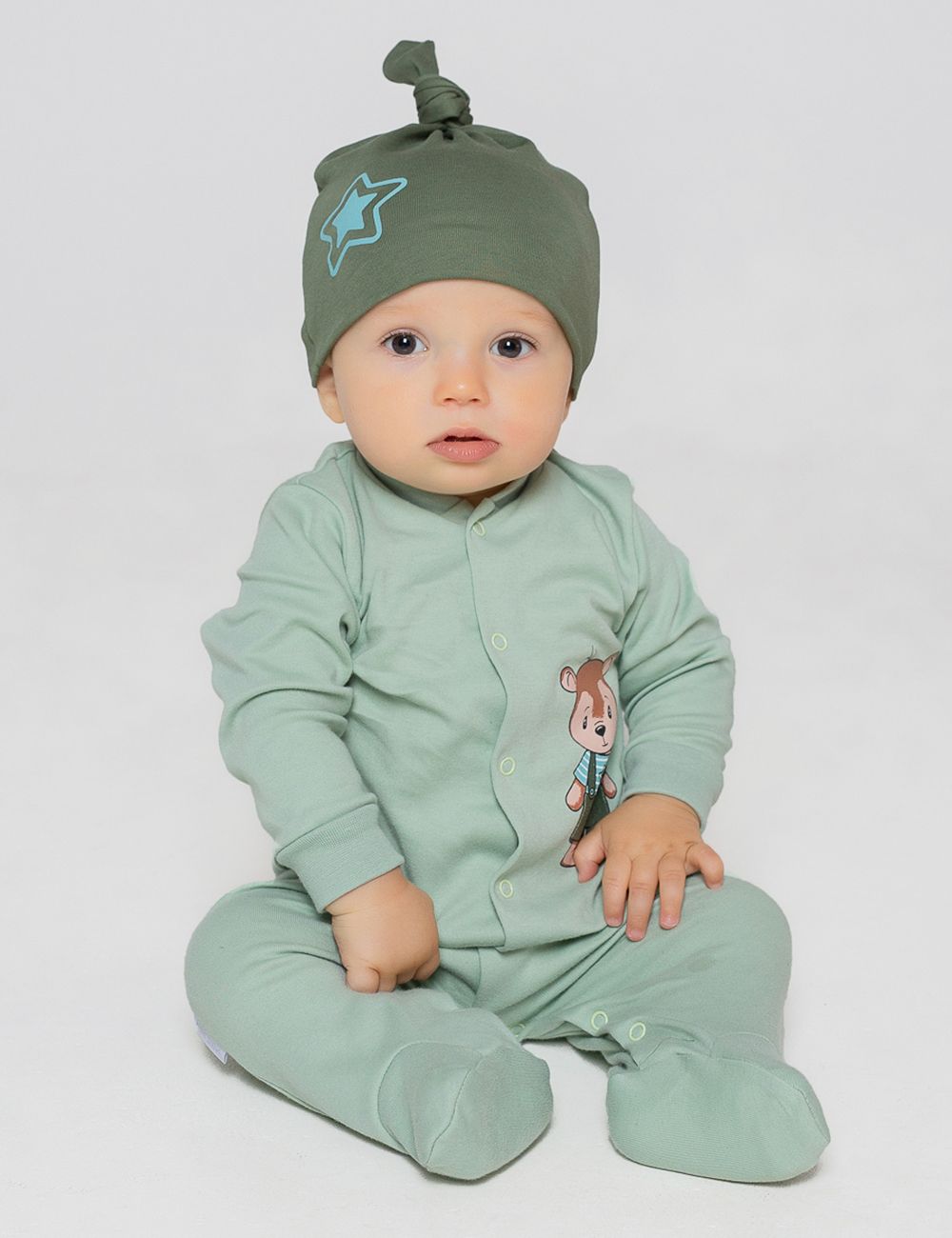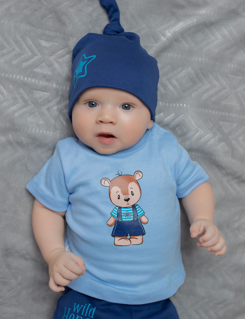 Забавная модель с узелком на макушке дополнена регулируемым отворотом. Стильный принт, нанесённый методом шелкографии на ткани. Идеально подойдет для ежедневного гардероба малышей, на выписку, в роддом, на прогулку.