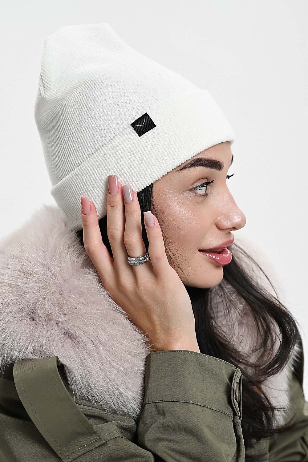 Шапка теплая в рубчик с нашивкой, двусторонняя. Длина изделия в развернутом виде - 31 см.