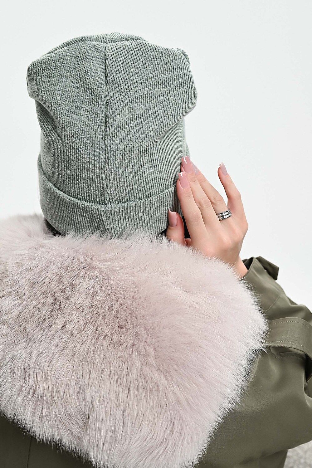 Шапка теплая в рубчик с нашивкой, двусторонняя. Длина изделия в развернутом виде - 31 см.