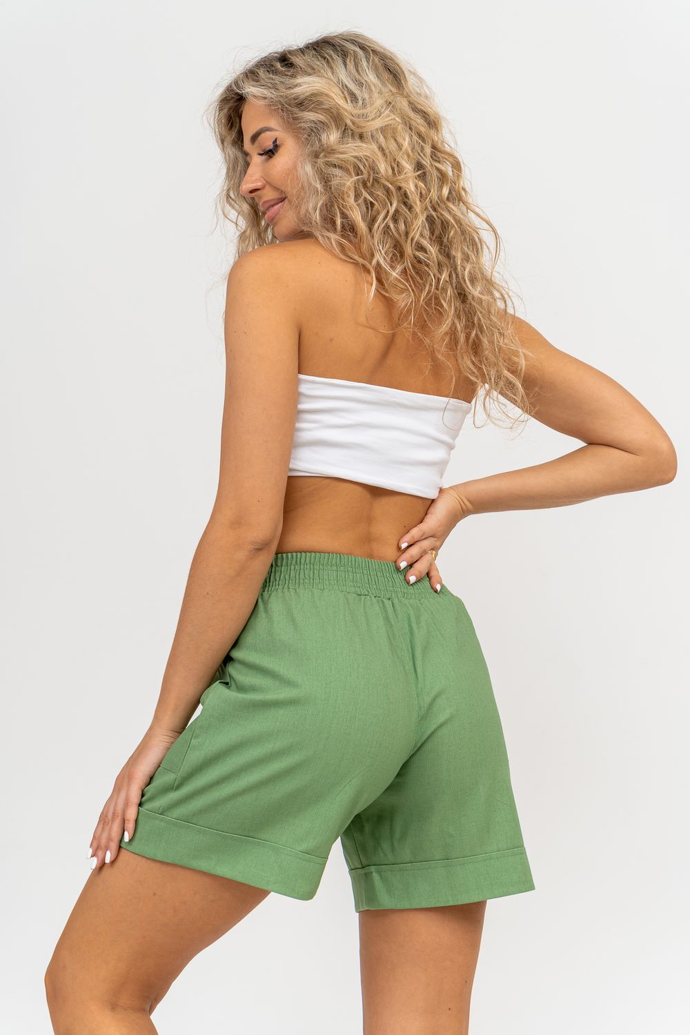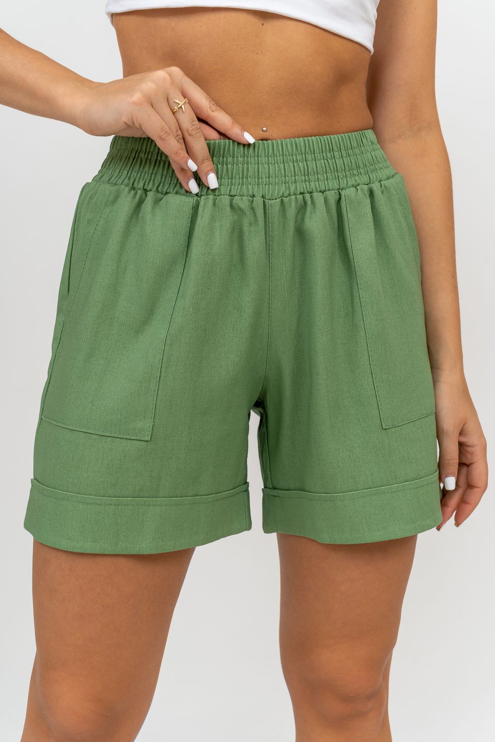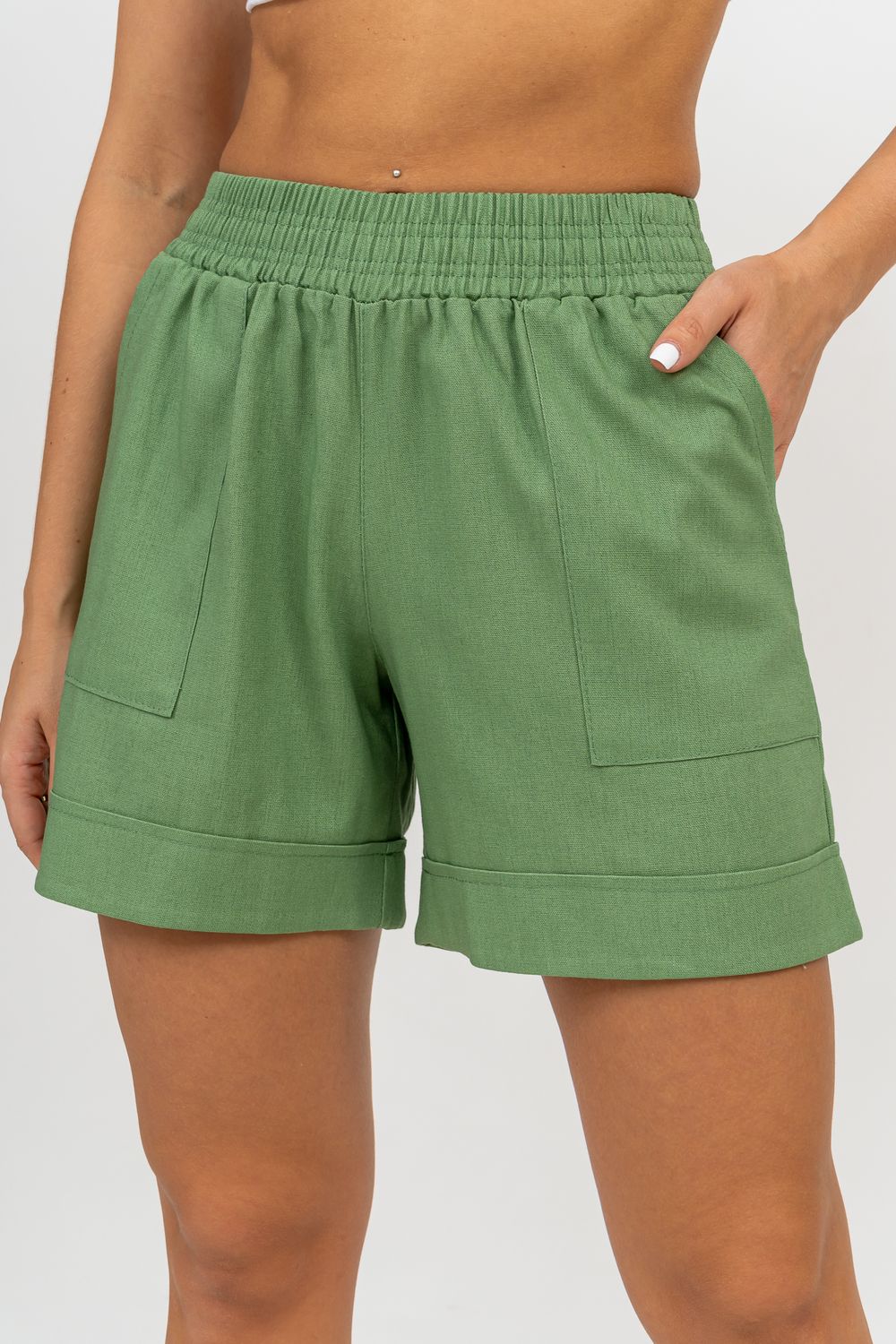 Стильные женские шорты из материала, в состав которого входит лён, — незаменимая базовая вещь в гардеробе каждой женщины, девушки, девочки подростка. Это экологичный материал, обладающий отличной гигроскопичностью и воздухопроницаемостью. Пояс шорт выполнен на специализированной поясной машине. Это качественная обработка, при которой ваш пояс держит форму, не деформируется со временем и не даёт резинке скрутиться. Спереди шорт настрочены два вместительных накладных кармана, а по низу — два отстроченных манжета. Шорты женские летние с карманами универсальны и практичны. Изделие такого плана вы можете использовать для похода на пляж, для отдыха, путешествий или прогулок. Для работы женские шорты можно легко сочетать с рубашкой или пиджаком. Создавайте различные образы с высоким каблуком на вечеринку или с обувью на сплошной подошве для прогулок по городу. Натуральная гипоаллергенная дышащая льняная ткань приятна и комфортна для тела, поэтому наши шортики идеальны для ежедневного ношения в качестве домашней одежды. За счёт свободного прямого кроя и эластичной резинки на талии шорты хорошо садятся и подчёркивают стройность вашего силуэта. А также наша стильная и современная модель будет идеально смотреться на высоких, средних и невысоких. Шорты женские льняные с карманами непременно найдут своё место в гардеробной комнате и станут Вашим любимым выбором!