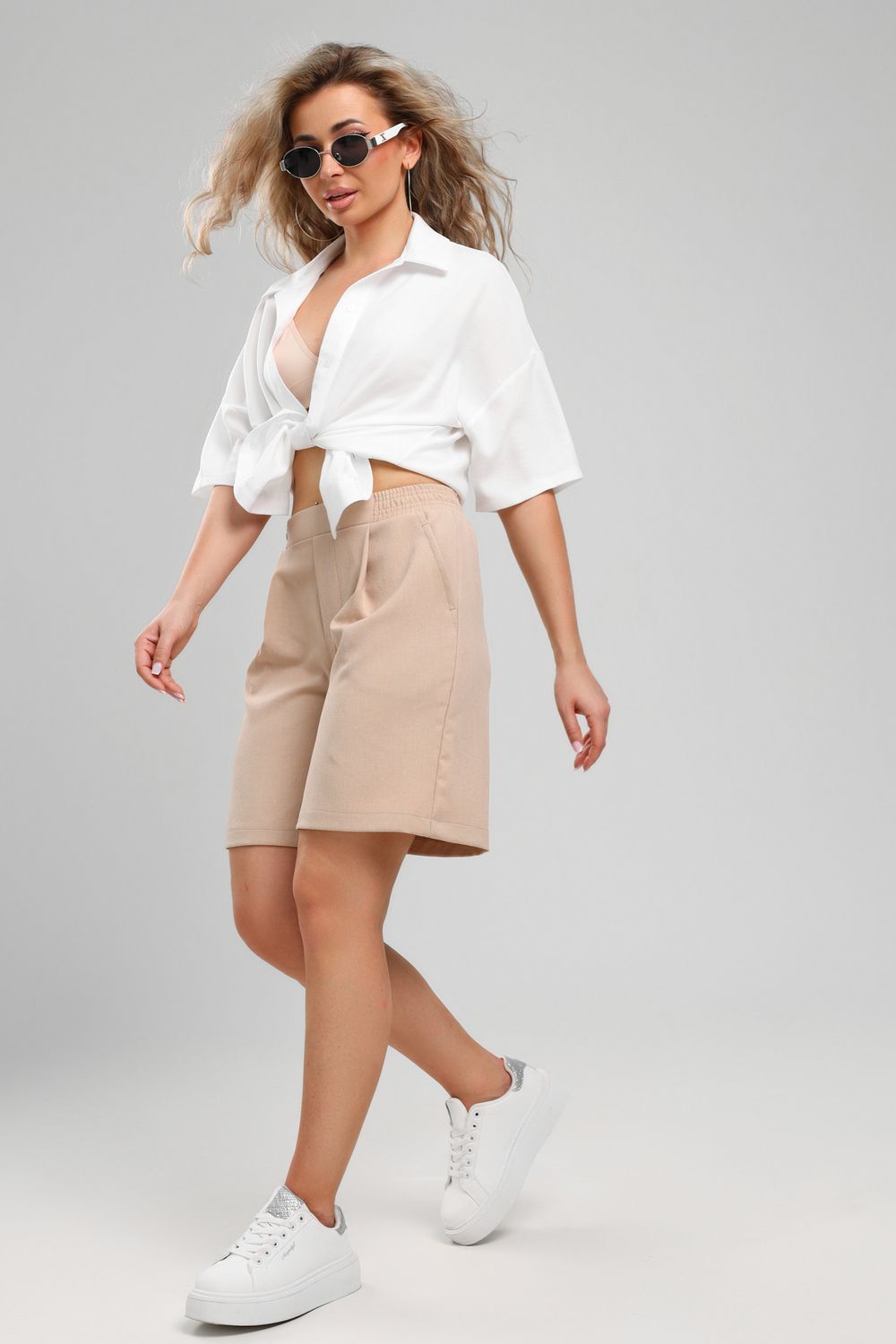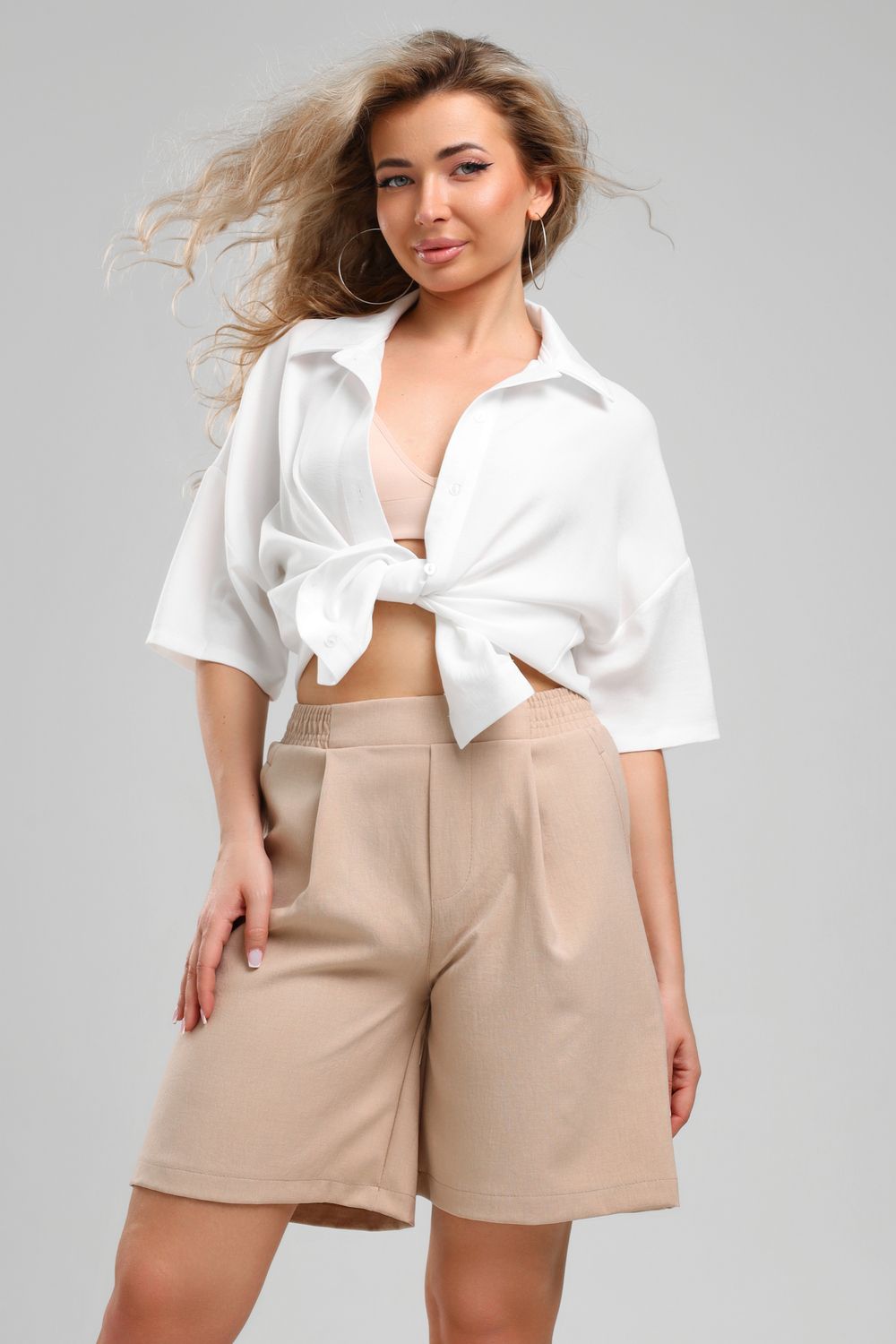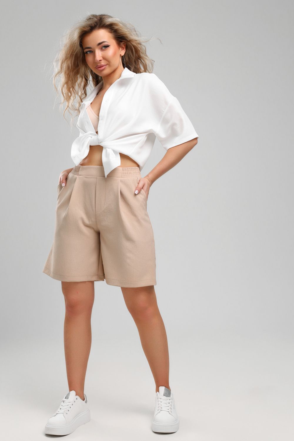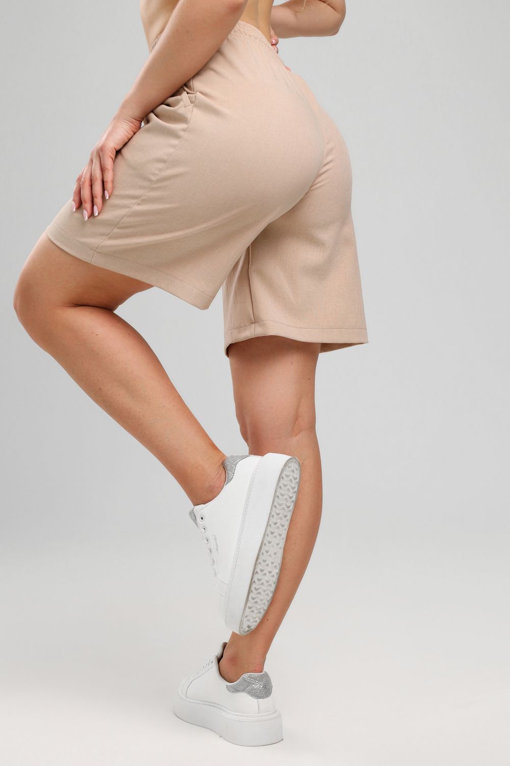 Льняные шорты – мастхэв базового женского гардероба. Модель выполнена из качественной ткани . Материал прочный, приятный на ощупь, хорошо струится и дышит. Изделие представлено в классических модных цветах. Широкий крой со складками и высокой талией создаёт красивый силуэт и обеспечивает удобную посадку, на любой тип фигуры. Пояс выполнен на специализированной поясной машине, что добавляет изделию качество на долгое время и эстетичность. На шортах имеются боковые карманы с усиленными закрепками на закрепочной машине. На модели представлен 46 размер - фигура соответствует параметрам размера. УХОД ЗА ИЗДЕЛИЕМ: бережная стирка при максимальной температуре 30ºС, не отбеливать, машинная сушка запрещена, глажение при 110ºС, профессиональная сухая чистка, стирать вывернутым наизнанку, глажение с использованием специальной сетки, стирать с изделиями похожих цветов . Шорты такого плана идеально впишутся в городской стиль, элегантность и комфорт, женственные силуэты и мягкие линии, расслабленные, нарочито небрежные образы, стильные и комфортные. Широкие шорты со складками – модная одежда для женщин на любой случай жизни. Подойдут для стильных повседневных луков, офисных аутфитов, нарядных вечерних образов и прогулок.