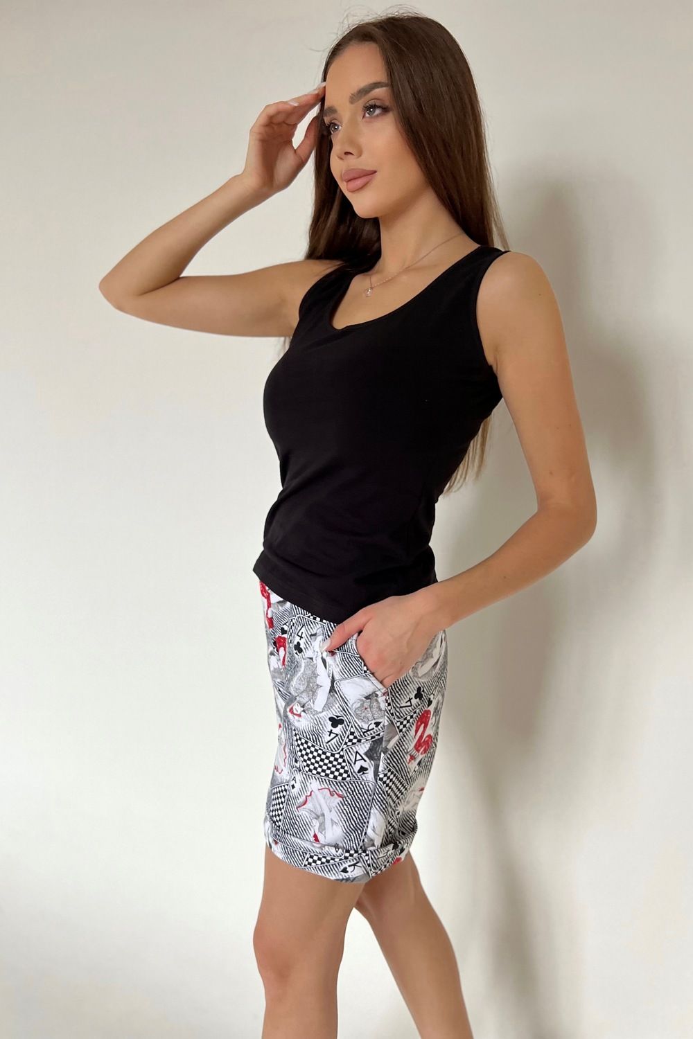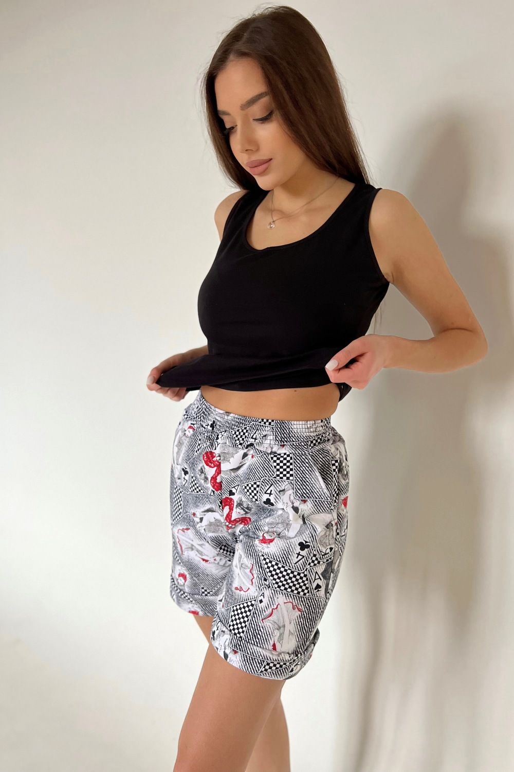 Шорты женские с карманами в боковых швах, по низу отвороты.