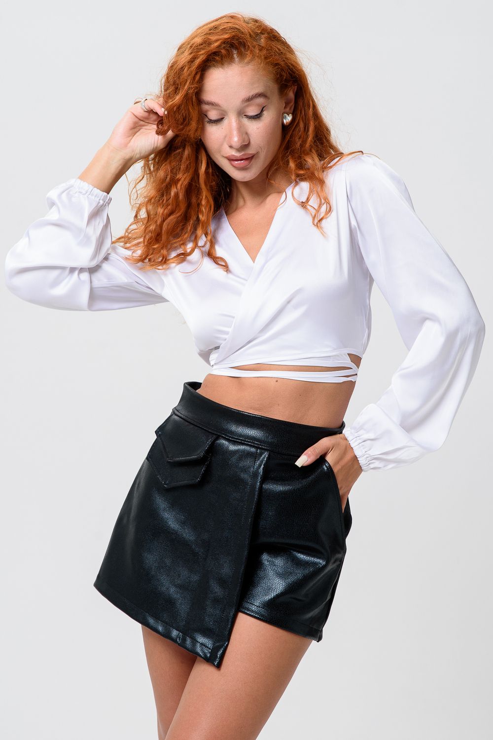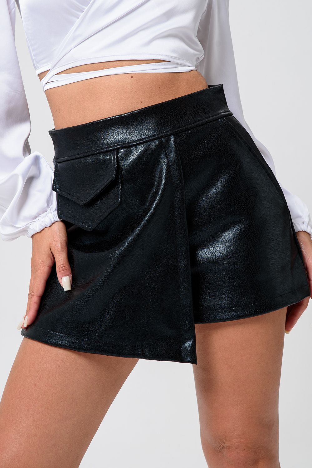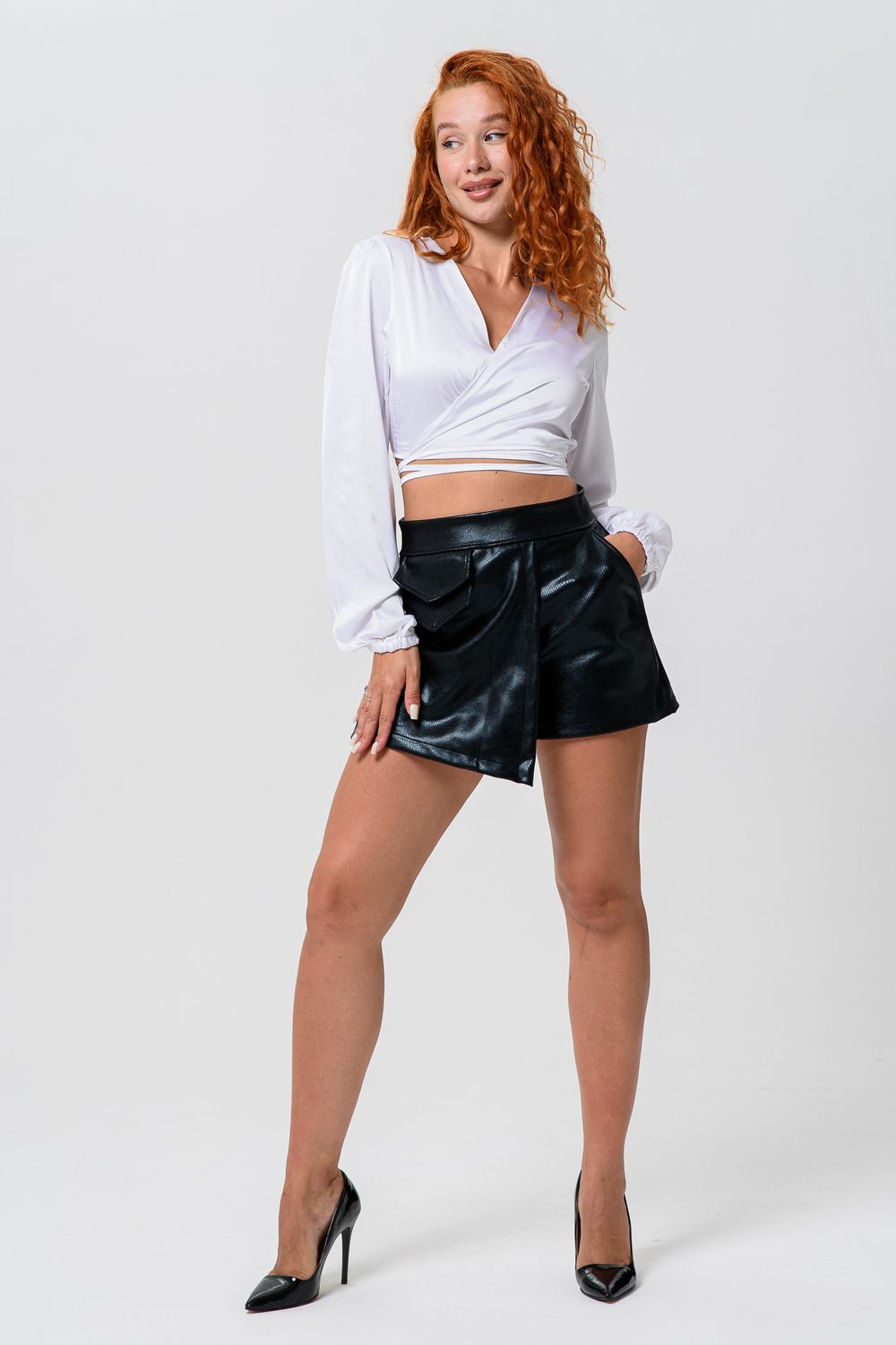 Юбка-шорты выполнены из экокожи - идеальный вариант женской одежды на весну, лето,осень и зиму. Эта базовая классика одежды на каждый день. Прямой крой с поясом создает плотную посадку на бедрах и талии. Застёжка на молнии сзади придаёт особой оригинальности модели.