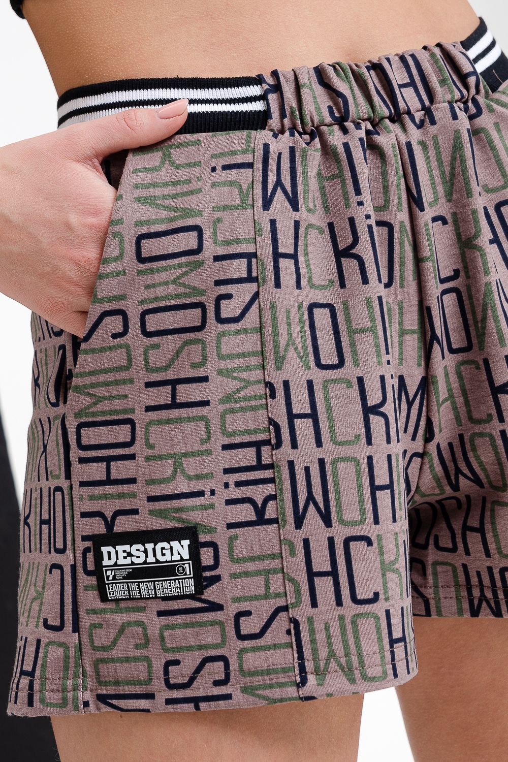 Шорты прямые, на поясе, с боковыми карманами. Боковые вставки пояса выполнены из кашкорсе с лампасами.