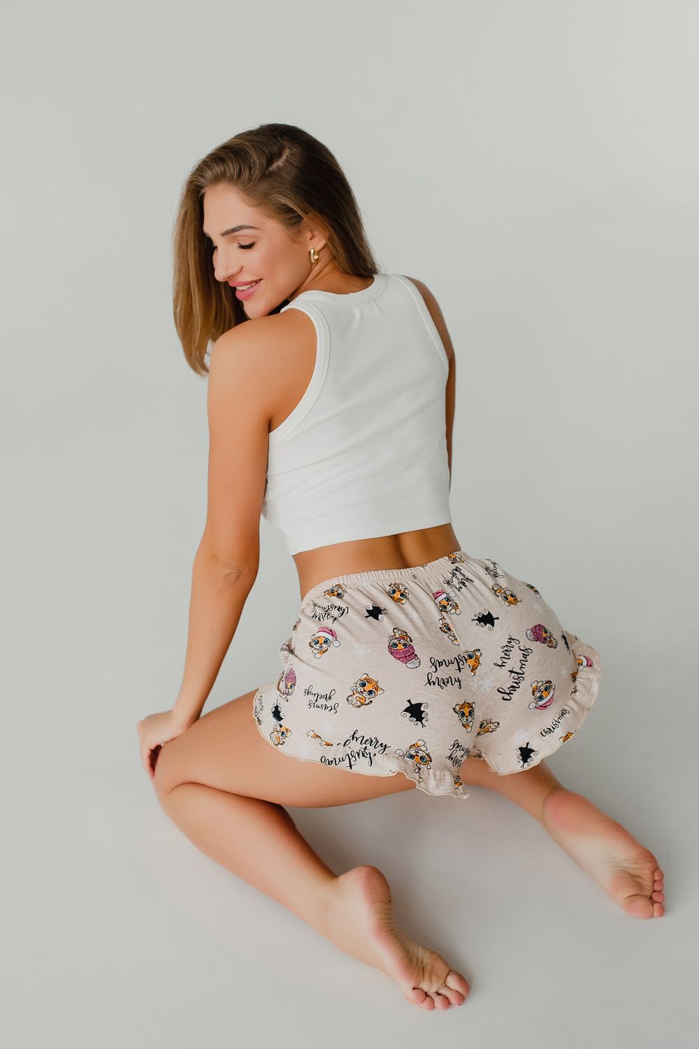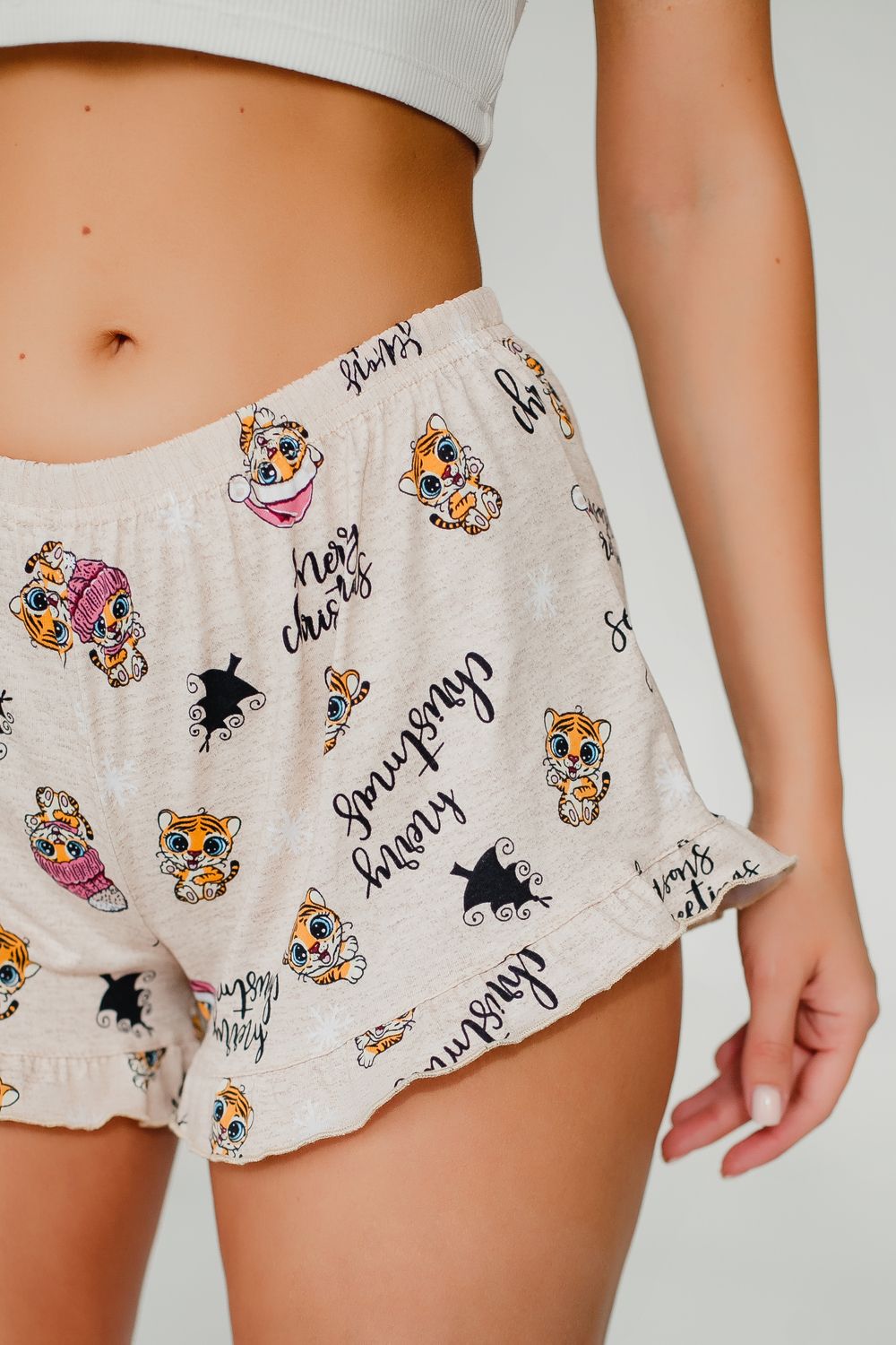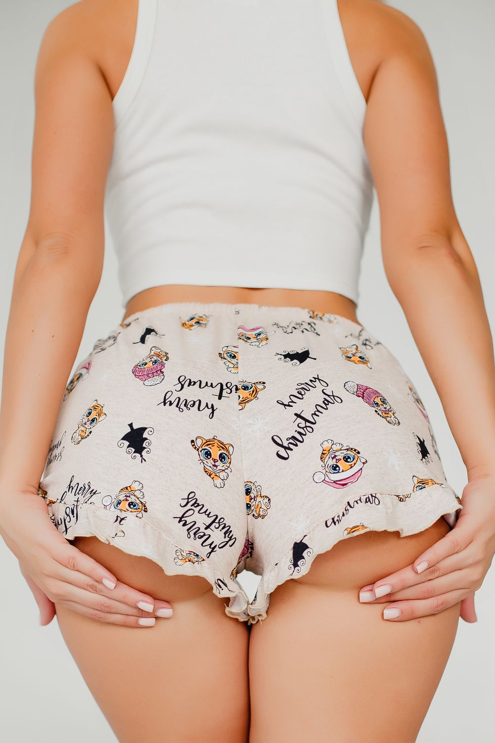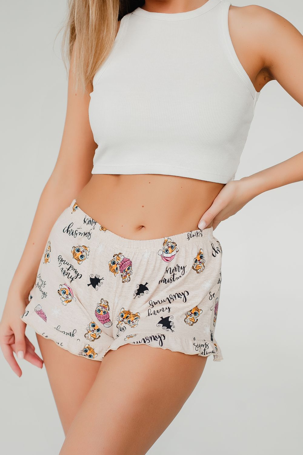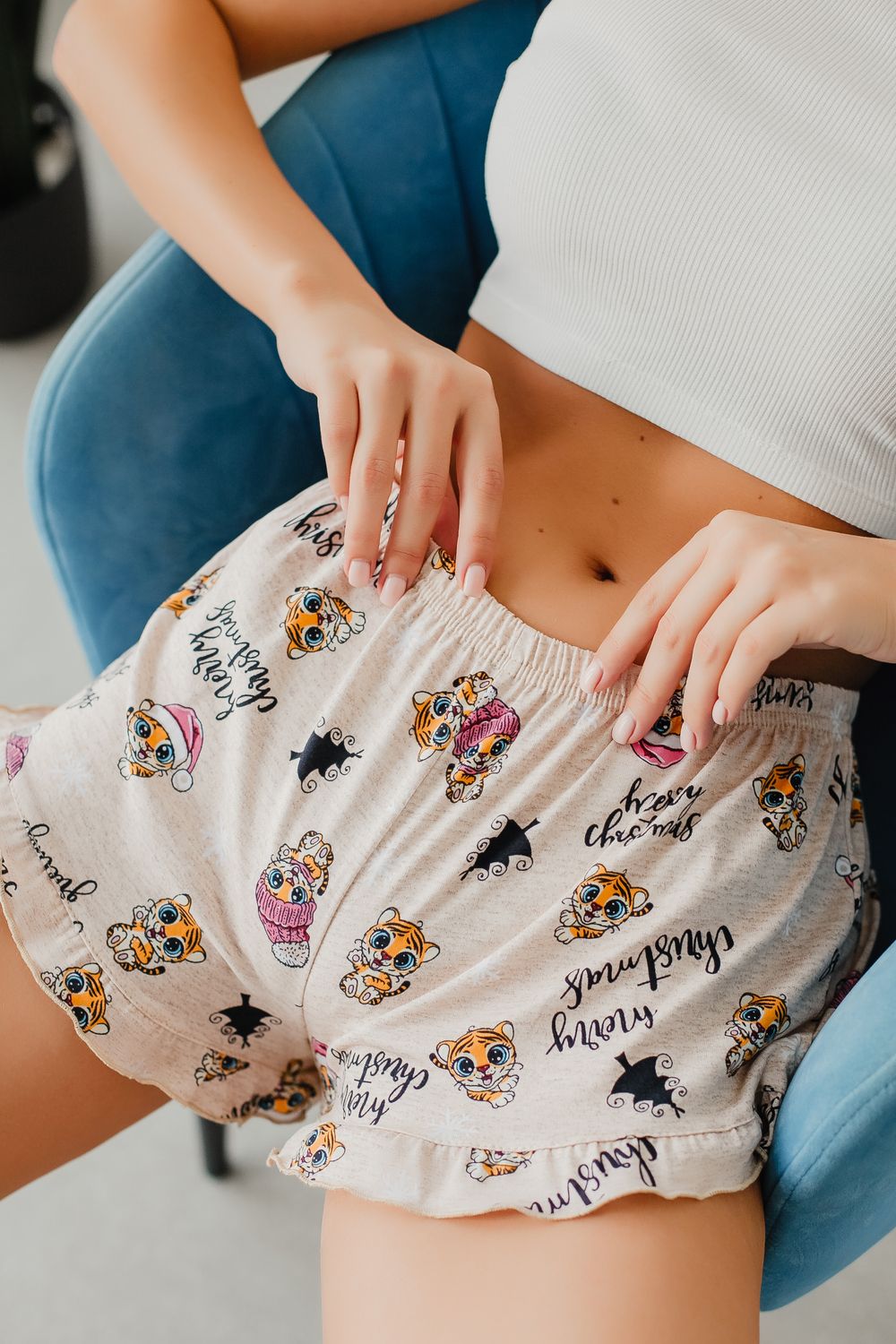 Шорты женские домашние с рюшей котята кремовый - кремовый