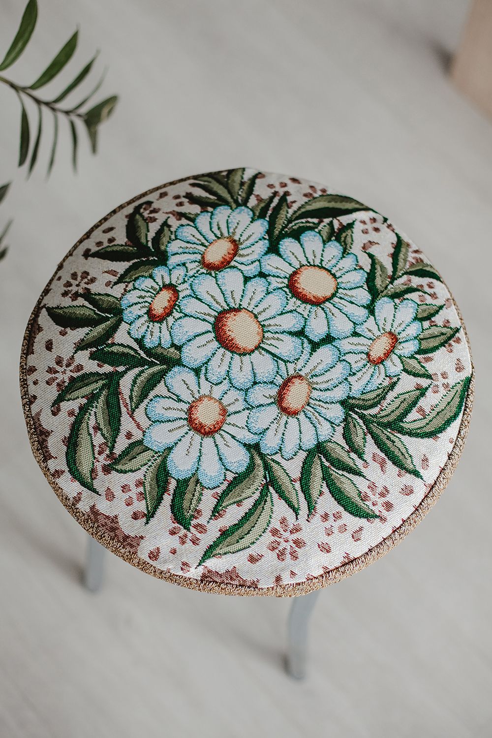 Сидушка на табурет круглая 32 - белая ромашка