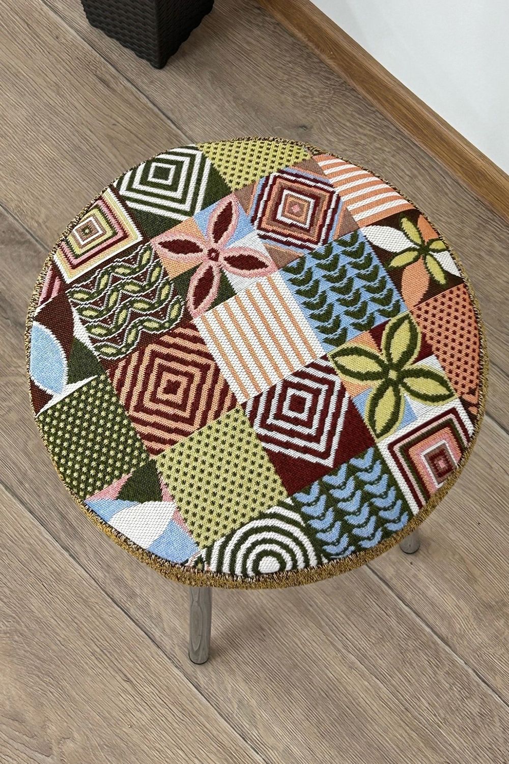 Сидушка на табурет круглая 32 - зеленый/квадрат