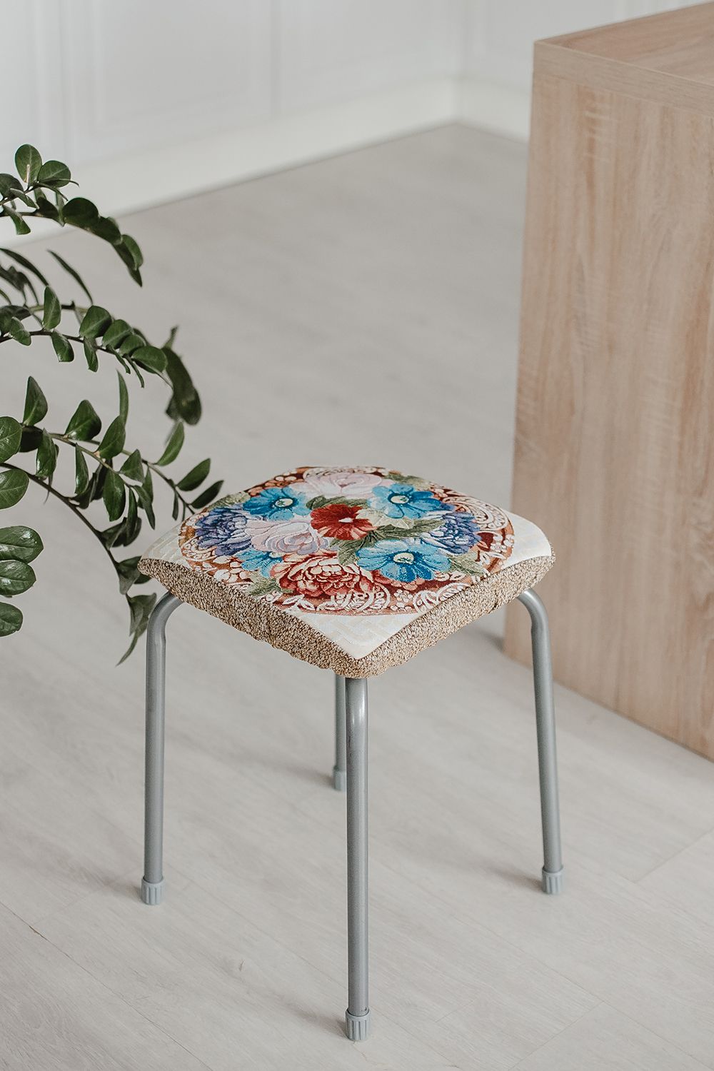Сидушка на табурет квадратная 32х32 - голубой цветок