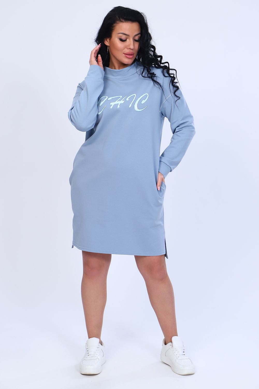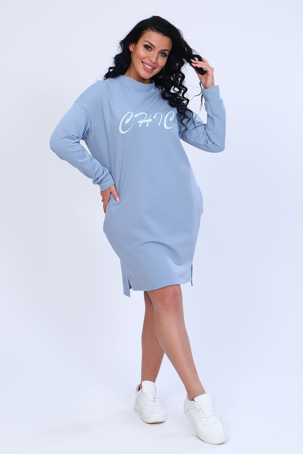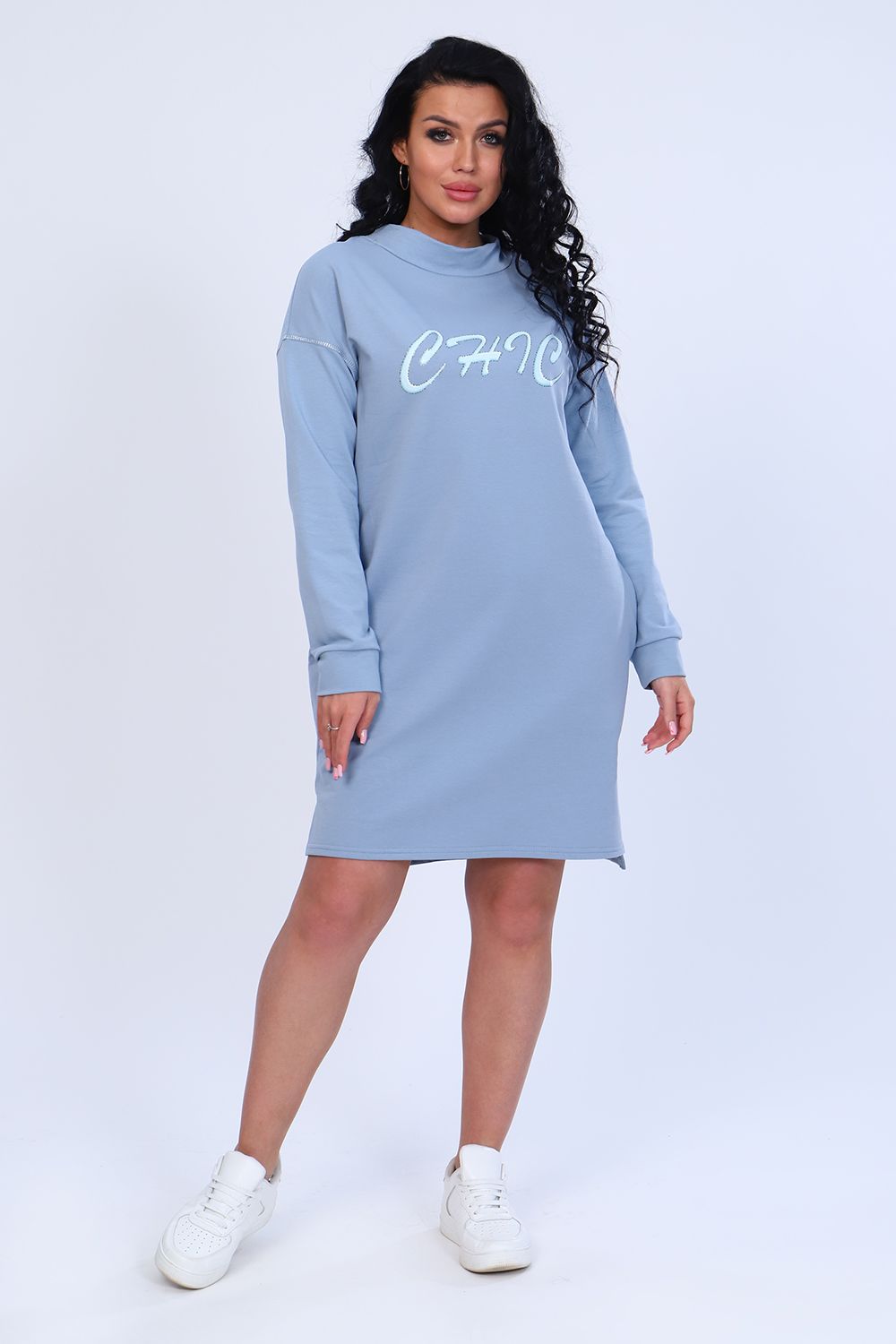Платье с оригинальным принтом из мягкого футера с лайкрой 2-х нитка. Модель свободного силуэта, горловина круглая, воротник-стойка, спущенная пройма, длинный рукав на манжете, в боковых швах удобные карманы, внизу по бокам разрезы, спинка чуть длиннее переда. По плечевому шву и по пройме рукава декоративная строчка из люрекса, гармонично сочетается с принтом на груди. Стильное, уютное платье отличный офисный вариант для современной, деловой модницы.