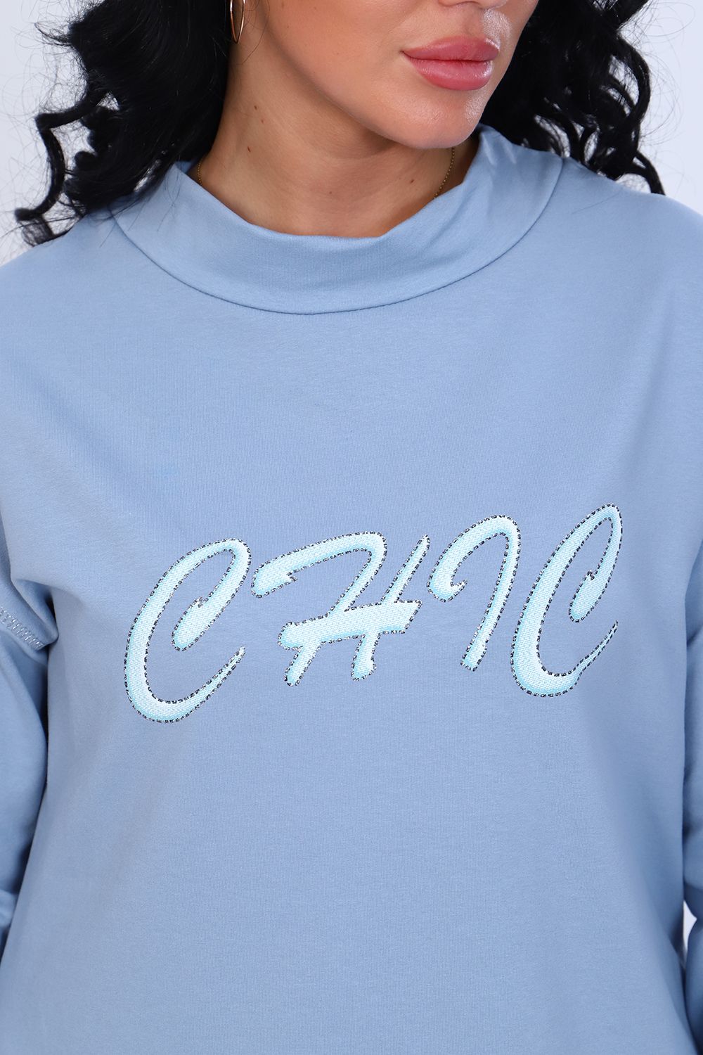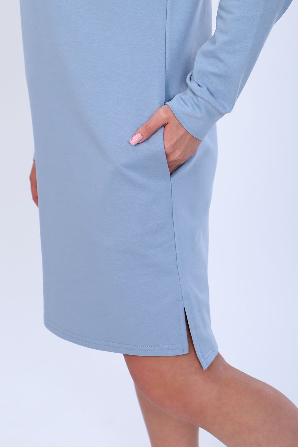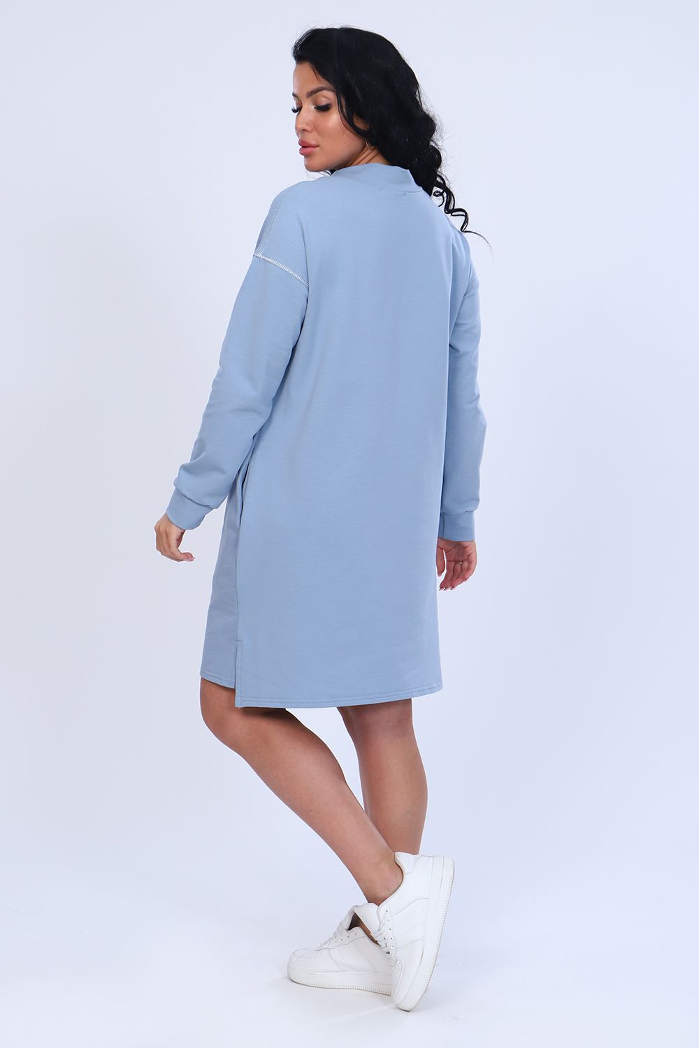 Платье с оригинальным принтом из мягкого футера с лайкрой 2-х нитка. Модель свободного силуэта, горловина круглая, воротник-стойка, спущенная пройма, длинный рукав на манжете, в боковых швах удобные карманы, внизу по бокам разрезы, спинка чуть длиннее переда. По плечевому шву и по пройме рукава декоративная строчка из люрекса, гармонично сочетается с принтом на груди. Стильное, уютное платье отличный офисный вариант для современной, деловой модницы.