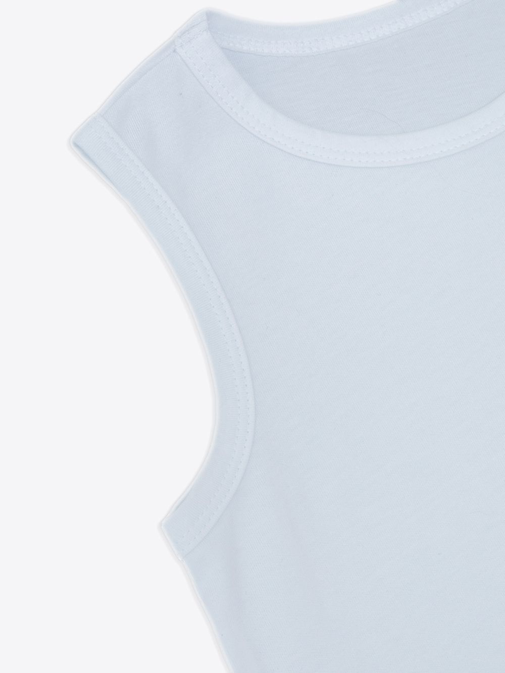 Майка полуприлегающего силуэта из хлопковой трикотажной кулирки. Длина до середины бедер. Горловина круглая, окантована мягкой бейкой. Нижний срез обработан плоским швом. Комфортная классика для вашего мальчика!
