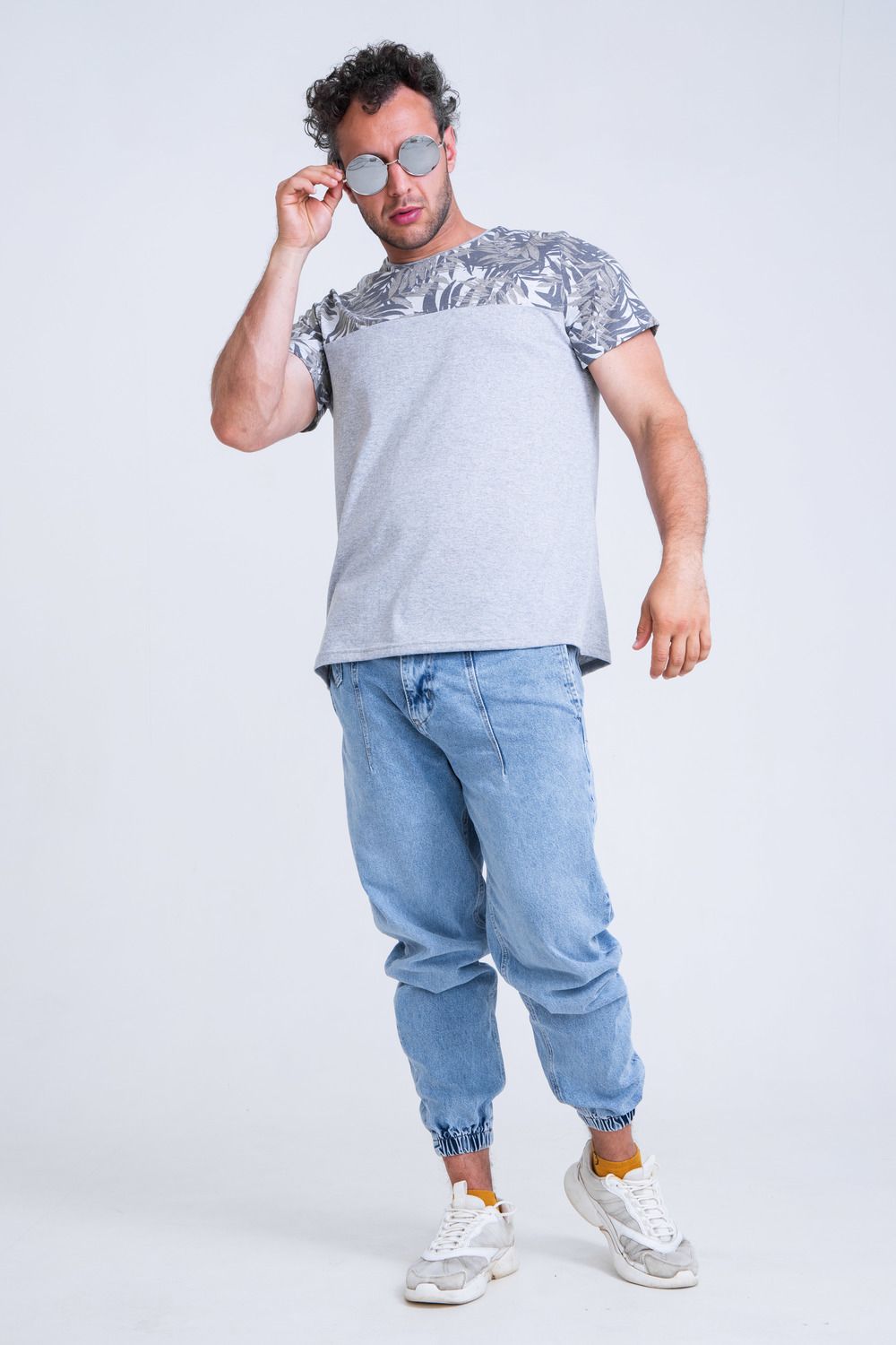 Мужская футболка с круглым вырезом горловины. Выполнена в двух расцветах. Спинка горловины усилена бейкой из основного полотна. Вырез горловины закрыт декоративной обтачкой.