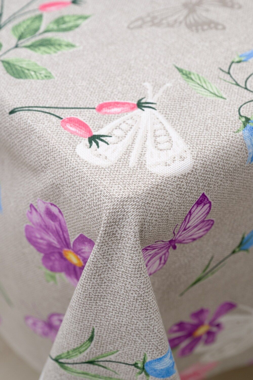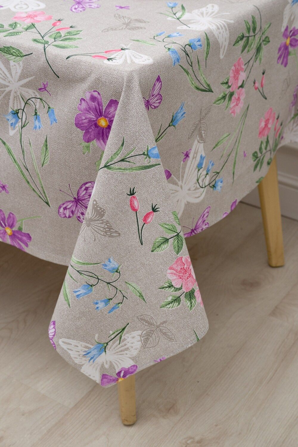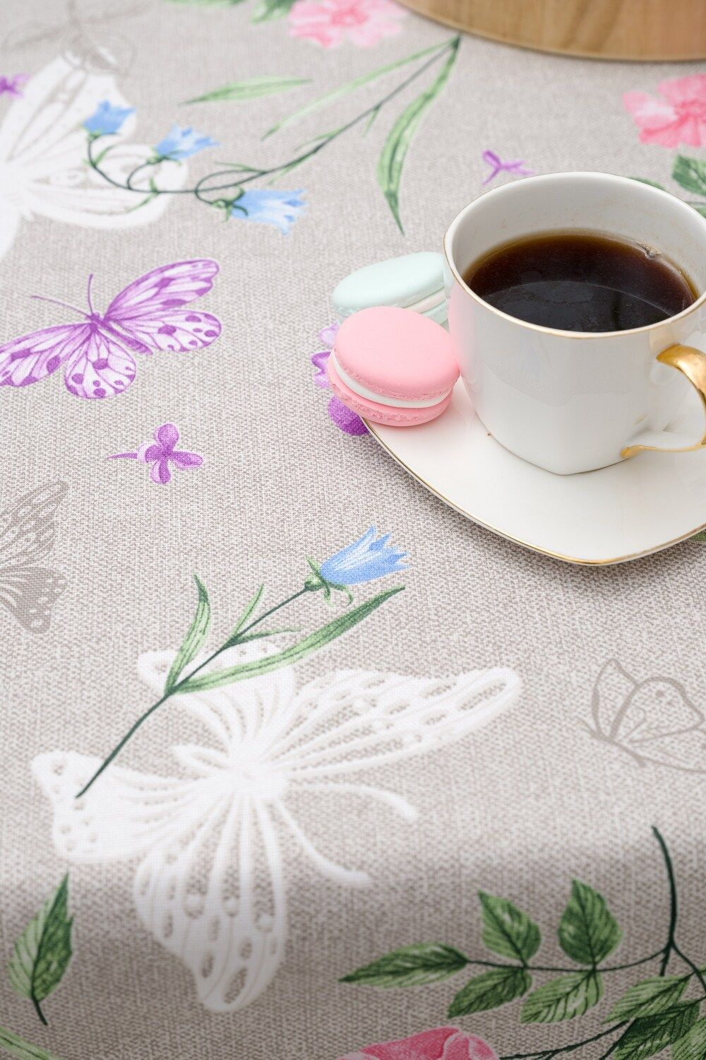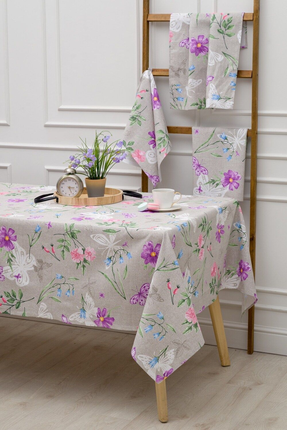 Прекрасная скатерть из рогожки с рисунком цветов и бабочек прекрасно дополнит интерьер вашей кухни. Материал рогожка высокого качества обеспечивает долговечность и удобство в использовании. Размеры 120*150, 180*150, 220*150 позволяют выбрать подходящий вариант для вашего стола. Теплый цвет серо-коричневый придаст уют и комфорт вашему пространству. Эта скатерть идеально подойдет для повседневного использования или для особых случаев. Ее стильный дизайн с цветами и бабочками придется по вкусу каждому ценителю красоты и уюта. Благодаря высокому качеству материалов, она легко стирается и сохраняет свой первоначальный вид на протяжении долгого времени.